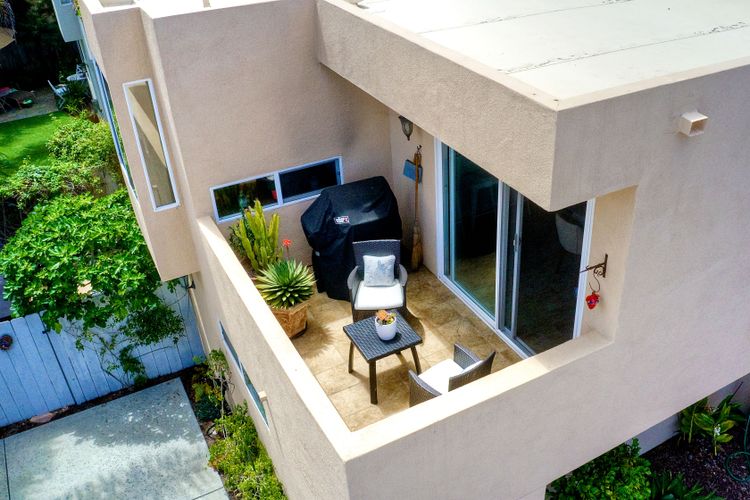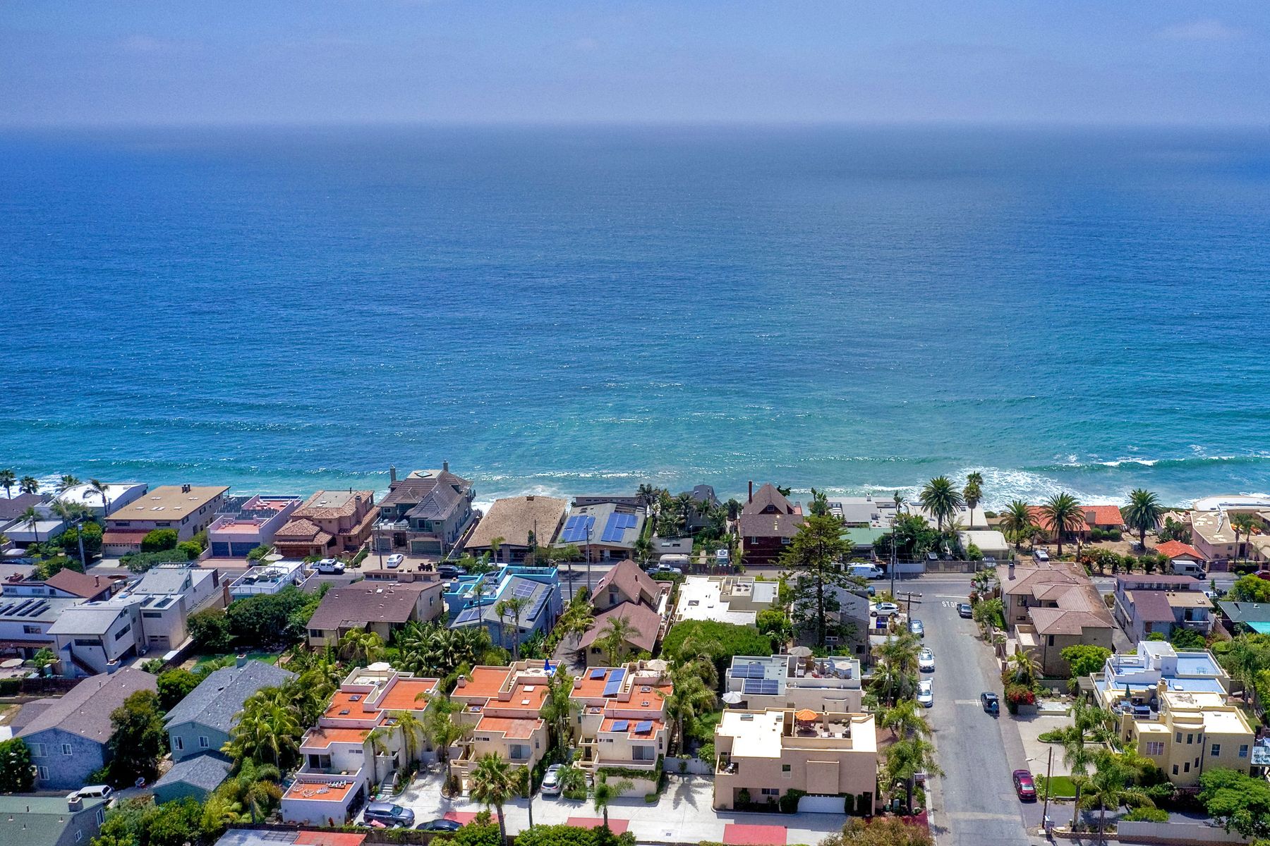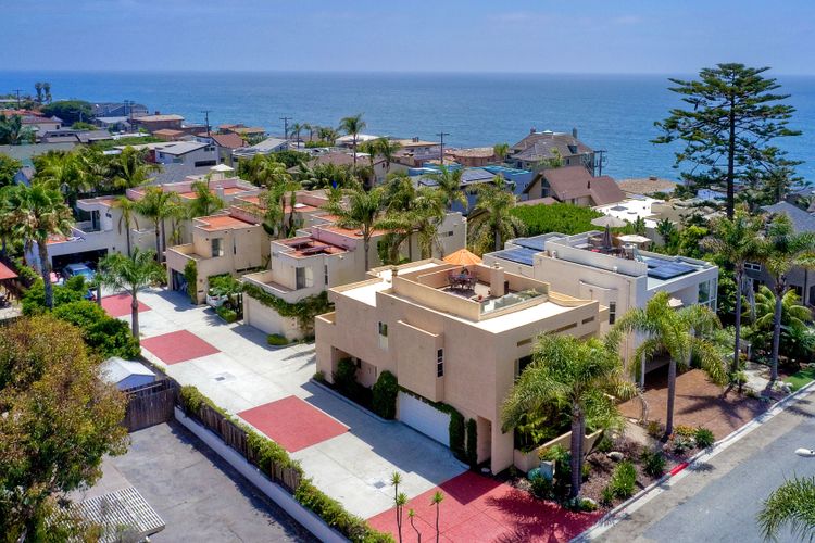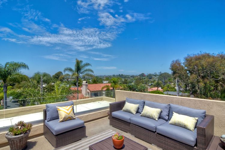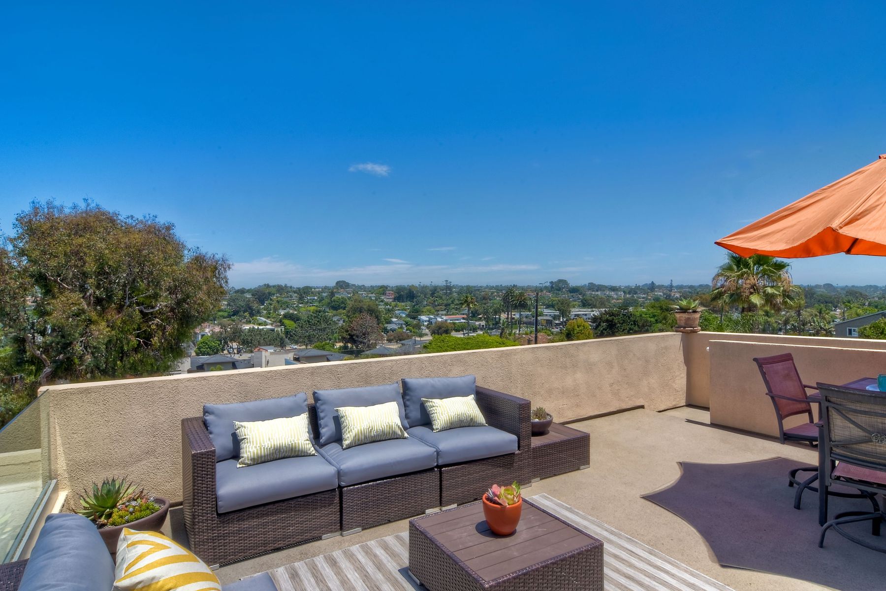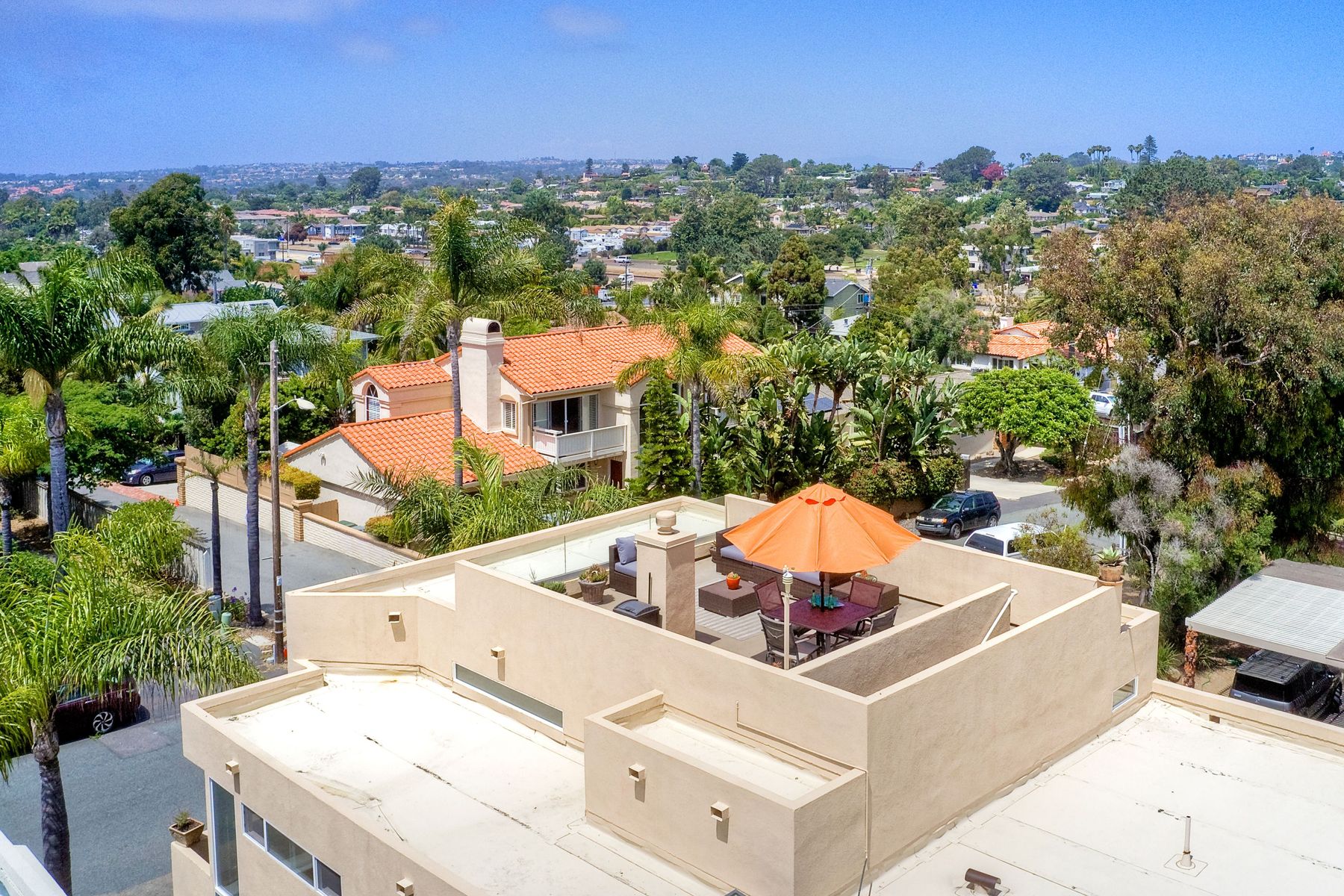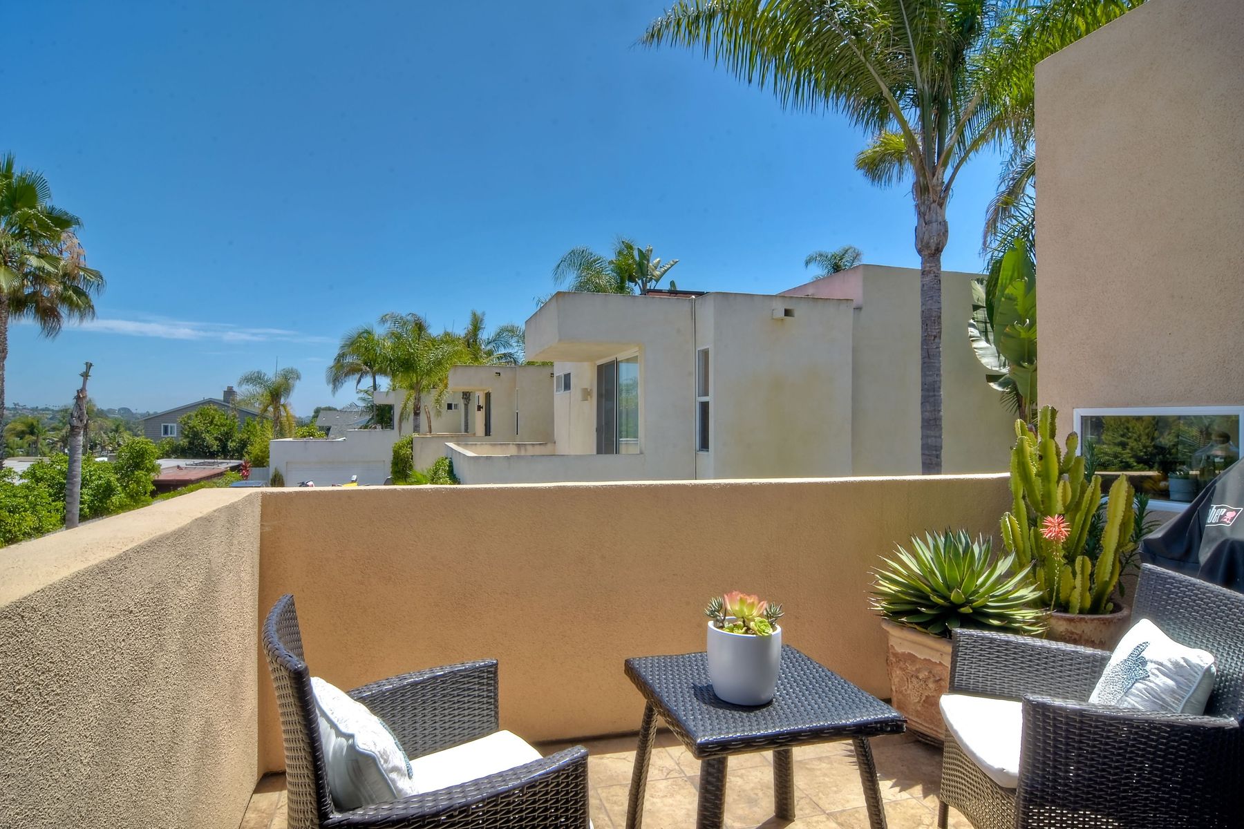 DINE ON YOUR OWN PRIVATE 360 DEGREE OCEAN VIEW ROOF DECK. ENJOY BEACH LIVING WEST OF 101 IN LEUCADIA WITH WALKING DISTANCE TO GRANDVIEW AND BEACONS BEACHES, DINING, ENTERTAINMENT, AND MORE. REVERSE FLOOR PLAN WITH JACK & JILL BEDROOMS DOWNSTAIRS, UPSTAIRS DINING AND LIVING AREA, MASTER BEDROOM ALONG WITH THREE DECKS (TWO W/OCEAN VIEWS) AND STAIRCASE TO ROOF TOP DECK. GATED COURTYARD ENTRANCE. PRIVATE PATIO YARD WITH HOT TUB. UPGRADES INCLUDING WOOD LOOK TILE FLOORS, NEWER ROOF, & TANKLESS WATER HEATER [Supplement]: Many upgrades which includes newer roof, new tankless water heater, heated towel holders in master bedroom, new flooring, and newly painted. Low HOA fee's, extra one car parking space adjacent to home. Only five homes in Ocean View Colony and none ever sold since new in 2000, all original owners.