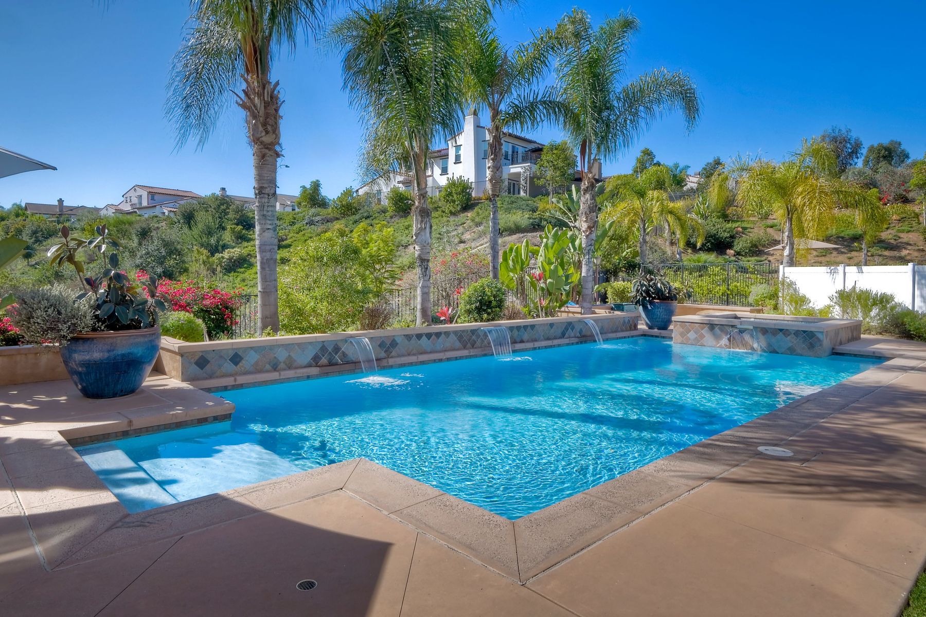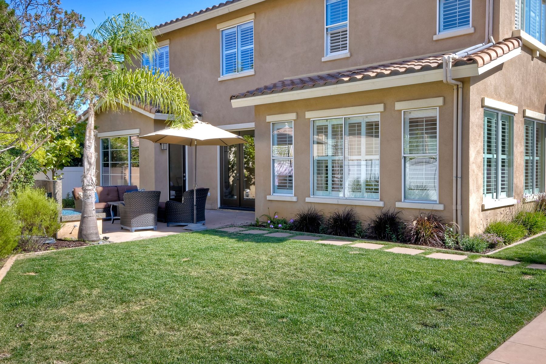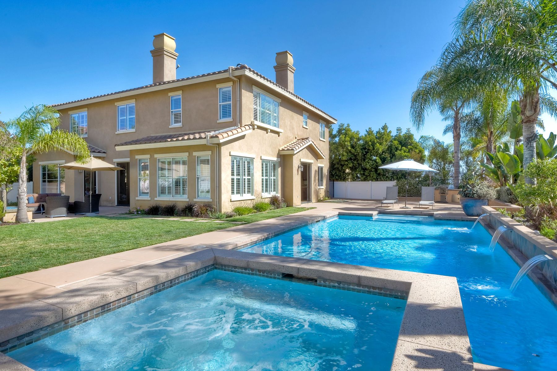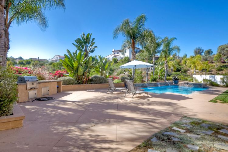 Tuscany inspired canyon view home located in La Suvera in the Aviara area of South Carlsbad. Close to beach! Located on a cul-de-sac, this 5 bedroom, 4 bath home offers distressed hardwood and natural slate flooring, granite counters, stainless steel appliances, new carpet, fresh paint and much more. Wood burning raised hearth fireplaces are located in the family room and master bedroom. Enjoy the private backyard oasis with custom pool and spa, built-in BBQ, and outdoor fireplace. NO Mello Roos/Low HOA Walk to Aviara Park, highly rates schools, walking trails near by, shopping close. Just two miles to beautiful Carlsbad beaches! Large fully fenced private back yard is great for entertaining or relaxing with friends and family. Plantation shutters throughout. Oversized kitchen boasts massive island and custom slab granite. Stainless Steel appliances include, two 30 inch wall ovens, bosch dishwasher, six burner gas cooktop, built in microwave, and built in refrigerator. Many more fine features throughout!