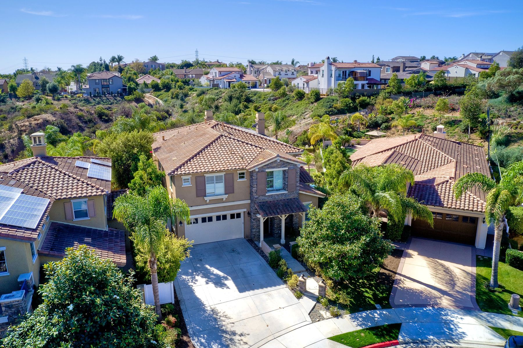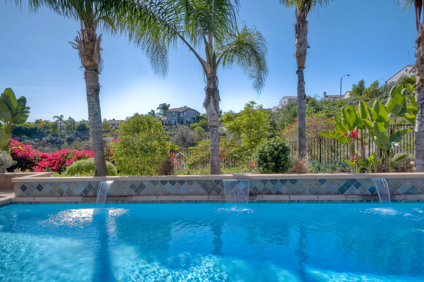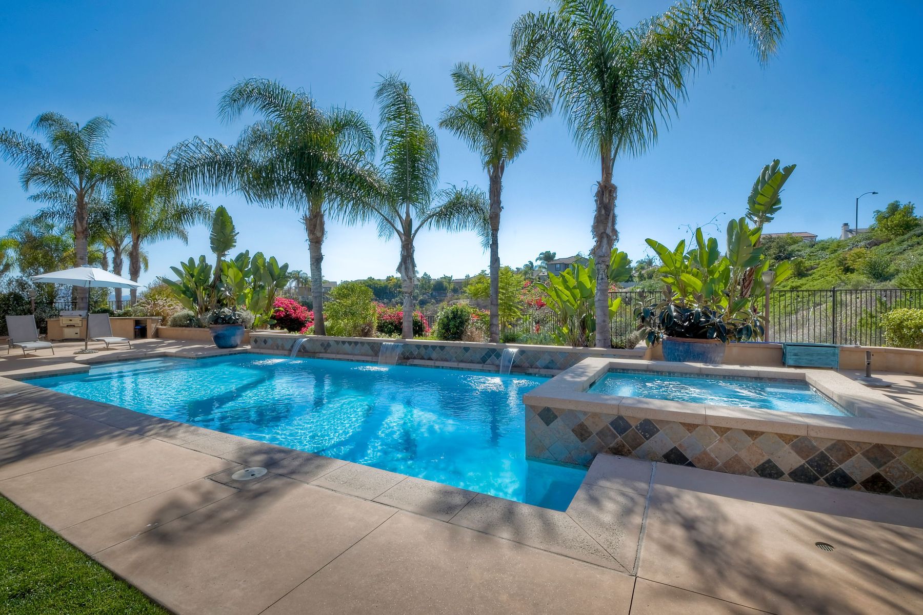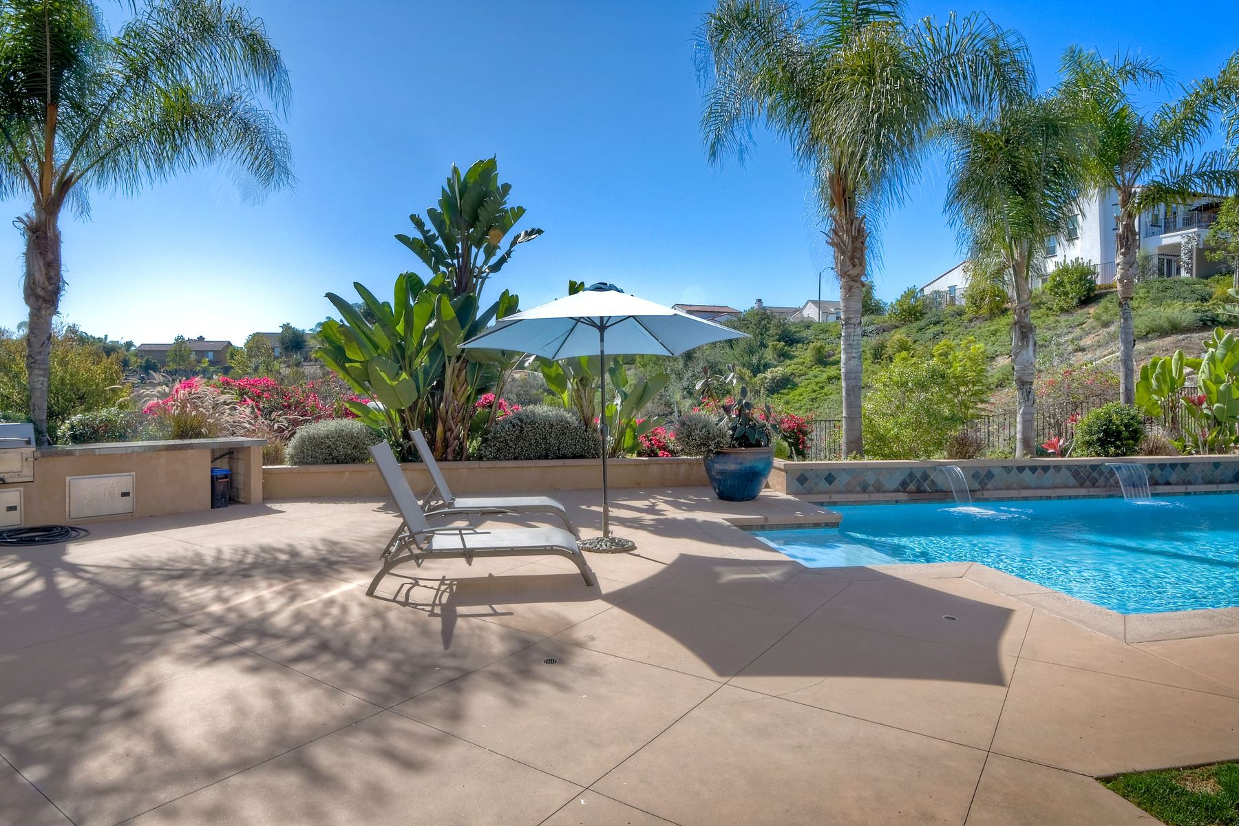 Tuscany inspired canyon view home located in La Suvera in the Aviara area of South Carlsbad. Close to beach! Located on a cul-de-sac, this 5 bedroom, 4 bath home offers distressed hardwood and natural slate flooring, granite counters, stainless steel appliances, new carpet, fresh paint and much more. Wood burning raised hearth fireplaces are located in the family room and master bedroom. Enjoy the private backyard oasis with custom pool and spa, built-in BBQ, and outdoor fireplace. NO Mello Roos/Low HOA Walk to Aviara Park, highly rates schools, walking trails near by, shopping close. Just two miles to beautiful Carlsbad beaches! Large fully fenced private back yard is great for entertaining or relaxing with friends and family. Plantation shutters throughout. Oversized kitchen boasts massive island and custom slab granite. Stainless Steel appliances include, two 30 inch wall ovens, bosch dishwasher, six burner gas cooktop, built in microwave, and built in refrigerator. Many more fine features throughout!