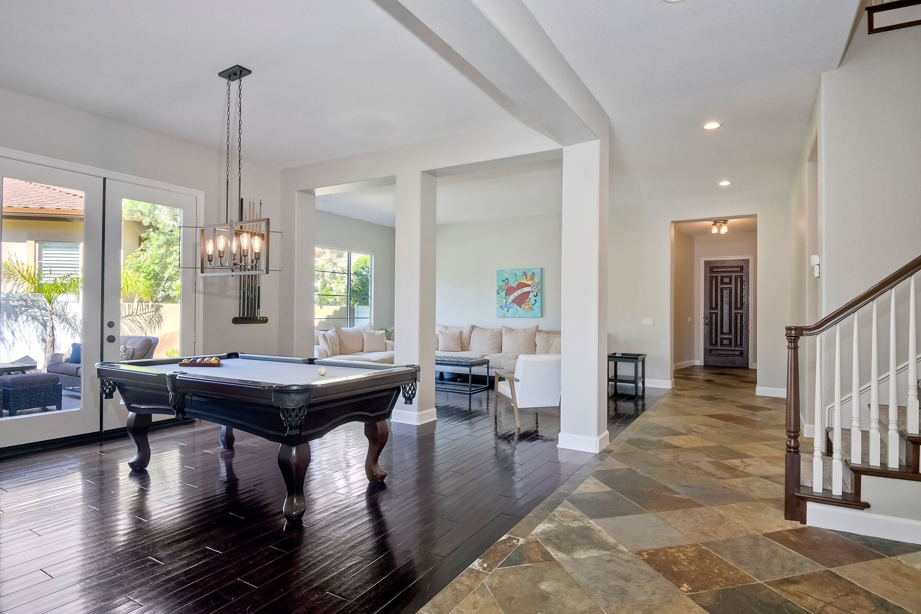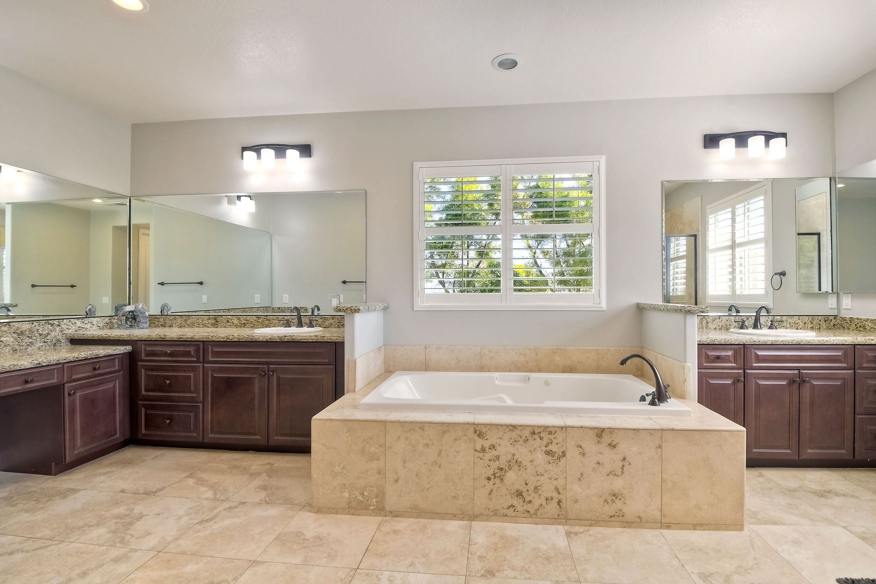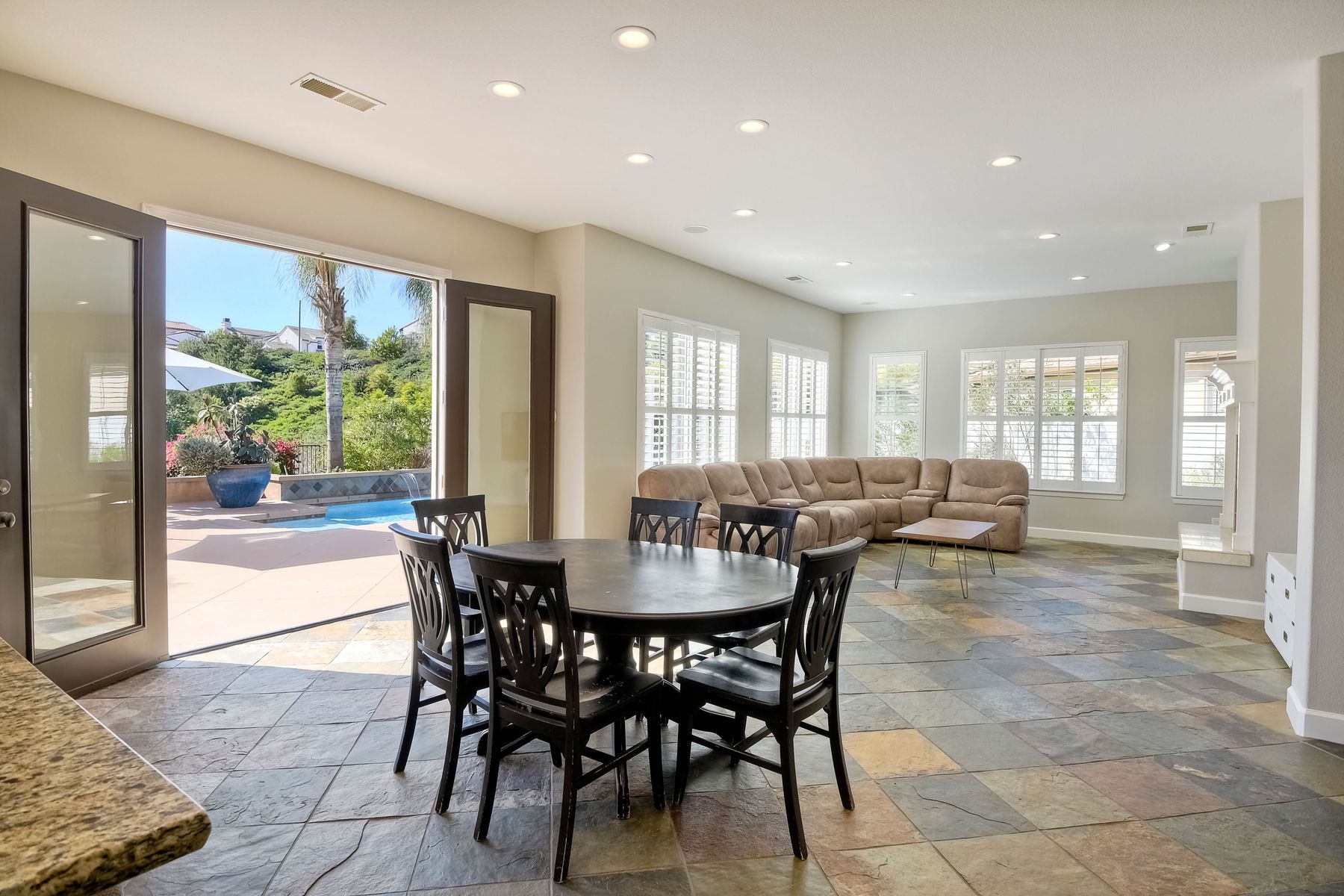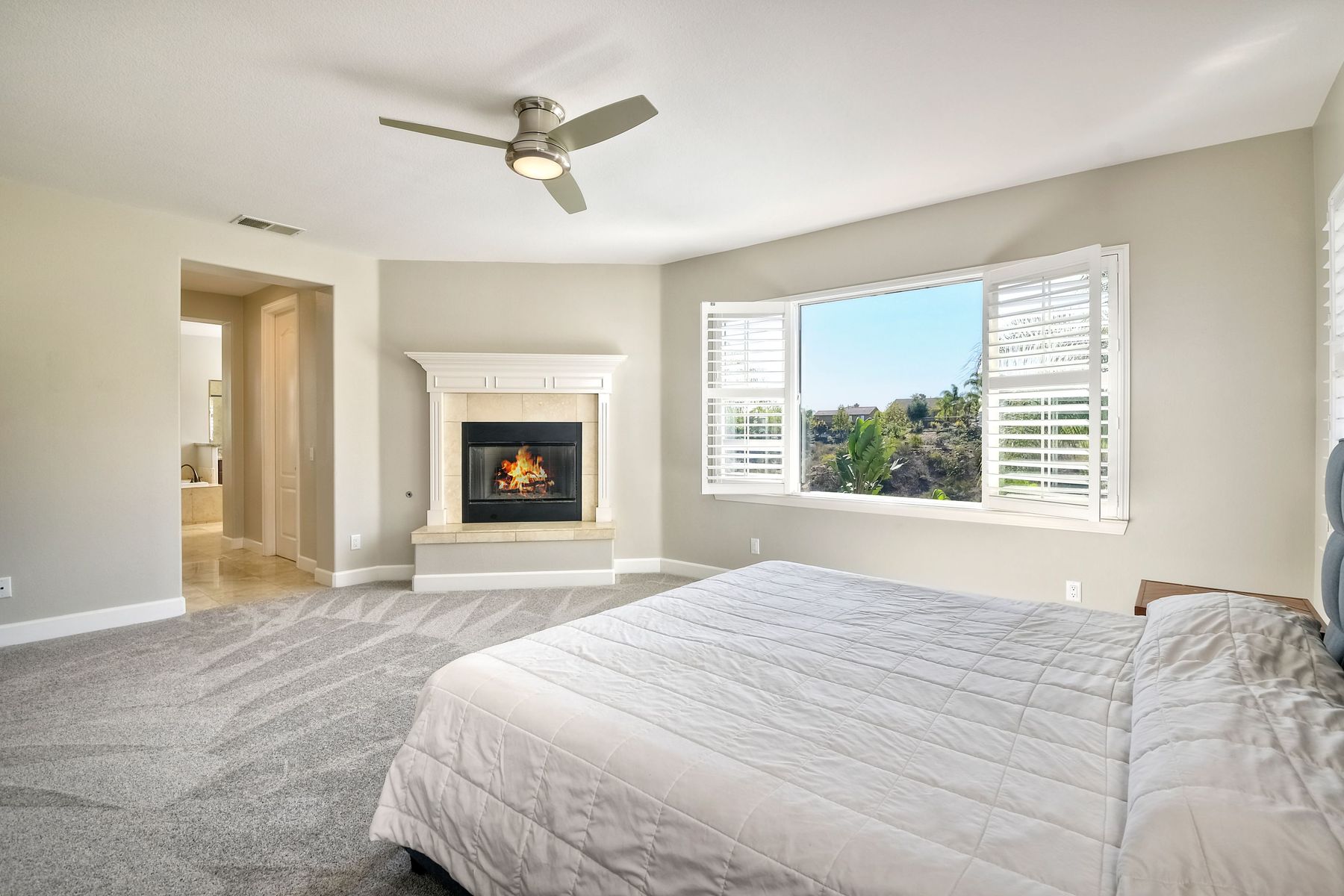 Tuscany inspired canyon view home located in La Suvera in the Aviara area of South Carlsbad. Close to beach! Located on a cul-de-sac, this 5 bedroom, 4 bath home offers distressed hardwood and natural slate flooring, granite counters, stainless steel appliances, new carpet, fresh paint and much more. Wood burning raised hearth fireplaces are located in the family room and master bedroom. Enjoy the private backyard oasis with custom pool and spa, built-in BBQ, and outdoor fireplace. NO Mello Roos/Low HOA Walk to Aviara Park, highly rates schools, walking trails near by, shopping close. Just two miles to beautiful Carlsbad beaches! Large fully fenced private back yard is great for entertaining or relaxing with friends and family. Plantation shutters throughout. Oversized kitchen boasts massive island and custom slab granite. Stainless Steel appliances include, two 30 inch wall ovens, bosch dishwasher, six burner gas cooktop, built in microwave, and built in refrigerator. Many more fine features throughout!