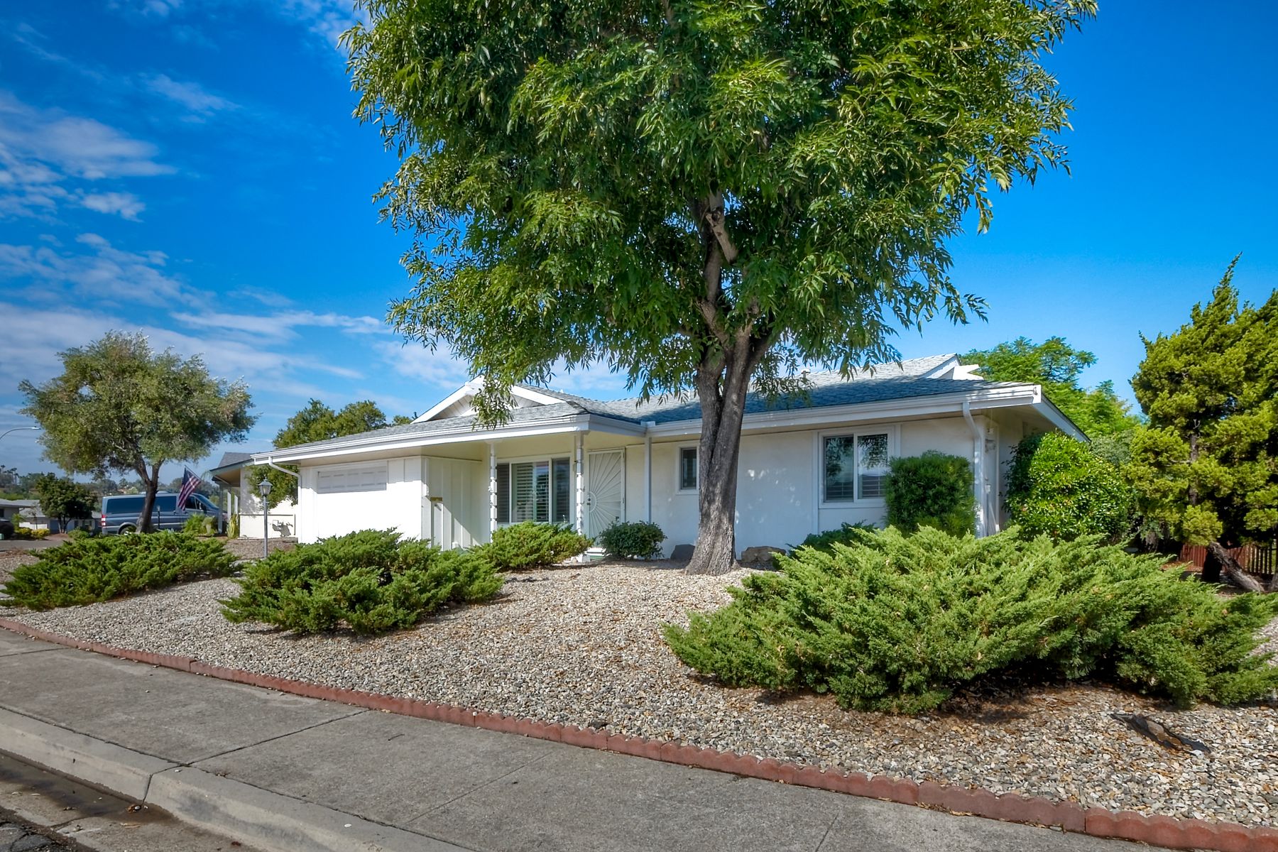 Rancho Bernardo home in desired 55+ Seven Oaks Community! Rare 2BR/1BA, 1000 SF single-story with wonderful potential to personalize and make your own. This home features newer central A/C & furnace, dual-pane windows with shutters, and updated water heater for comfort and peace of mind. Enjoy the bright kitchen with adjoining dining area, an updated bathroom with modern shower and flooring, and generous closet space. Relax outdoors in the private, low-maintenance yard with mature landscaping, covered patio, and lovely views front and back. Additional highlights include a 1-car attached garage with plenty of storage. Residents of Seven Oaks enjoy an active lifestyle with a clubhouse, pool, fitness center, library, card room, billiards, pickleball, and social clubs. Conveniently located within walking distance to shopping, dining, and everyday essentials.