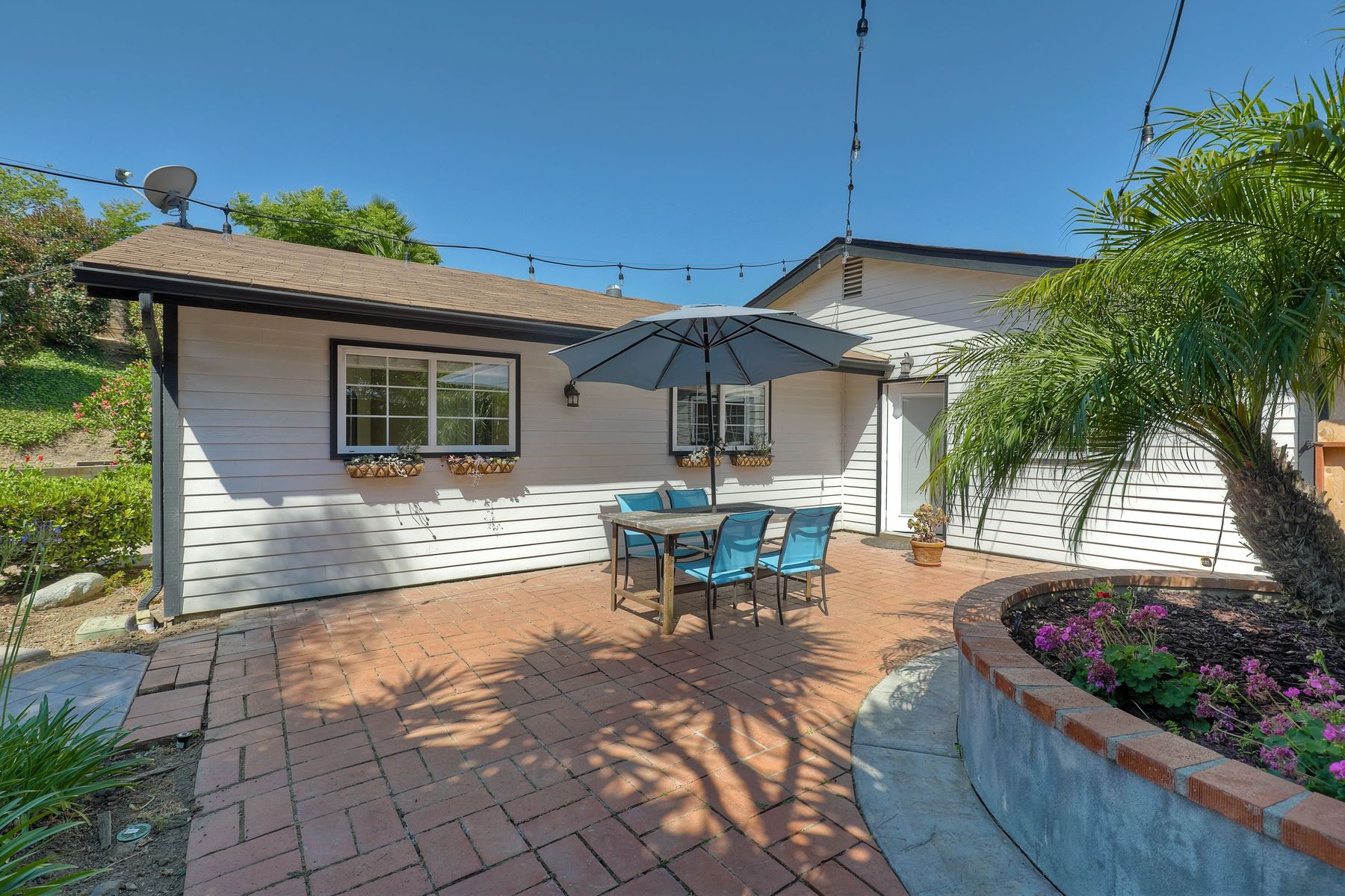 Welcome to this lovely 3 bedroom, 2 bath Westwood home on a quiet cul-de-sac. Walk through the arched entry into the inviting living room with an updated fireplace, built ins, large windows, crown moldings and wood looking tile which flows into the dining room/kitchen area. The kitchen has stainless steel appliances, recessed lighting, granite countertops including a peninsula with seating and a beautiful view to the brick patio through a large window and glass door. Fully owned Solar!! See Supplement.. Fully owned solar!!!! The pantry off the kitchen helps to create this functional and enjoyable workspace. The master suite includes a mirrored closet, additional walk in closet with cabinetry and walk in shower in the master bath. The bedroom has a sliding glass door to the outdoor pergola/patio area for easy access. The spacious third bedroom has an extra sitting area and attached unpermitted sun room. Another bedroom and shared full bath complete this functional floor plan. In addition to the brick patio off the kitchen, the backyard wraps around to a large covered gazebo surrounded by a lovely yard - a wonderful gathering place for family and friends! Amazing location in the Poway Unified School District. Walking distance to Westwood Elementary and the Westwood Club which includes a large pool, spa, racquetball, tennis, playground and more! No Mello Roos or monthly fees, just one annual club fee for the Westwood Club. Close to restaurants, shopping, Palomar College, Sharp and UCSD Health Centers and easy freeway access.