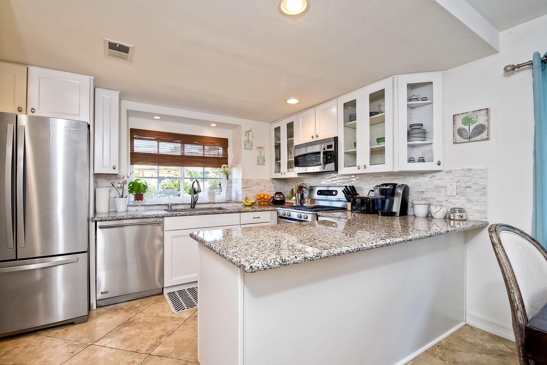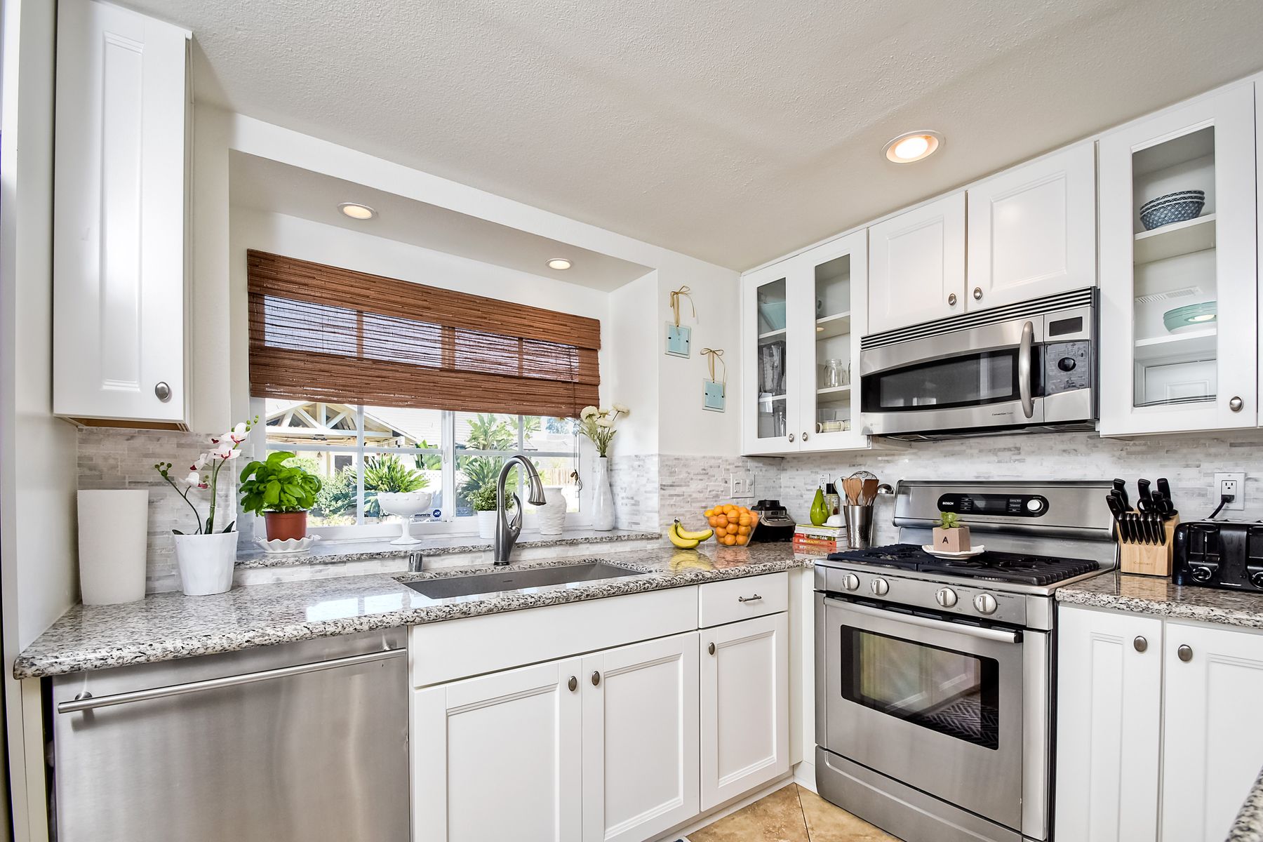 Welcome to the single level home you have been waiting for...generously proportioned living room with high ceilings and a relaxing fireplace. Remodeled kitchen with new cabinets, sleek granite counters, stainless appliances, stone back splash, and pantry will check all your boxes. Charming Master bedroom with high ceilings and walk in closet. Hard surface flooring throughout. Brand new roof...a another great addition. All this in the fabulous community of South Oceanside. Beach and Village close.