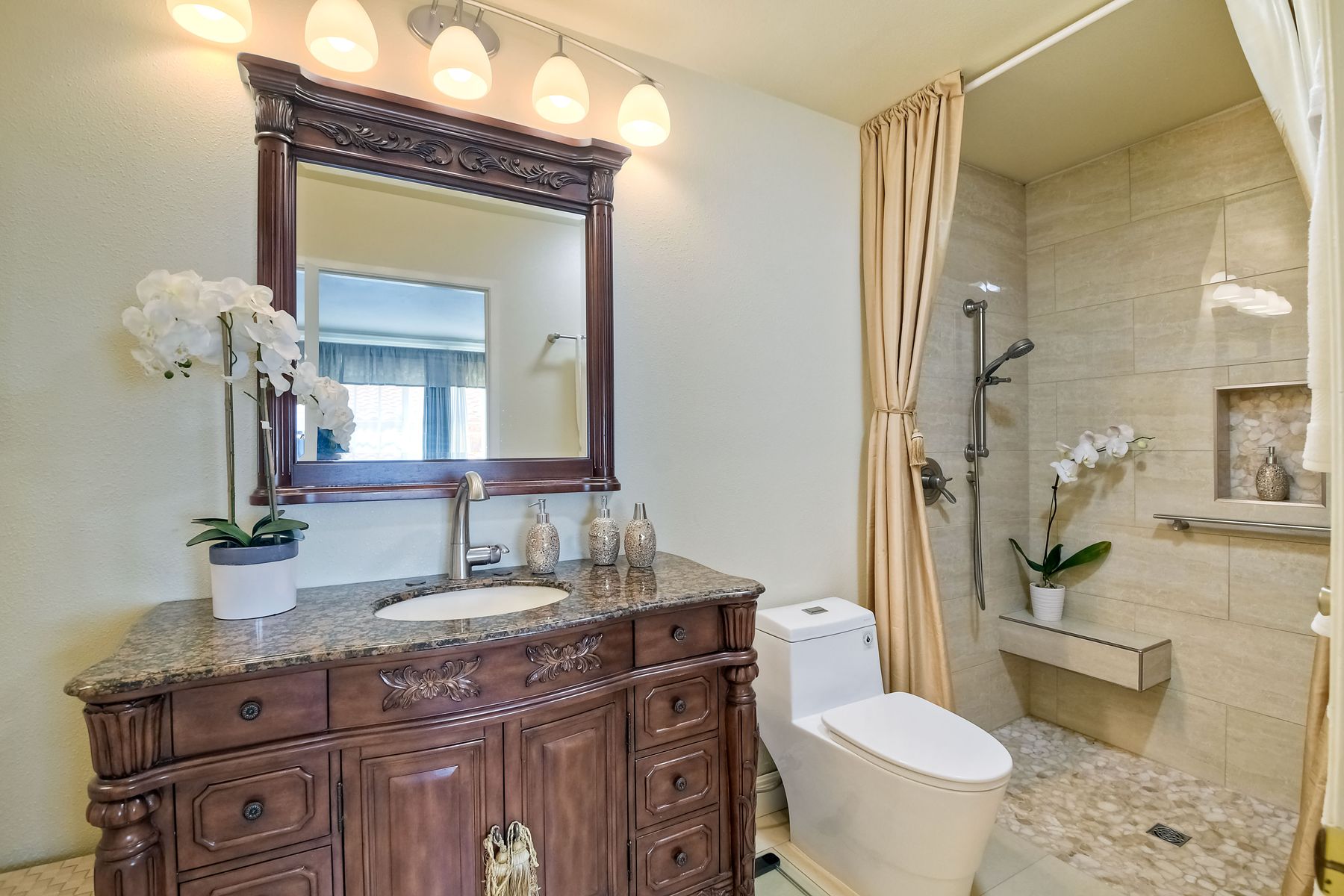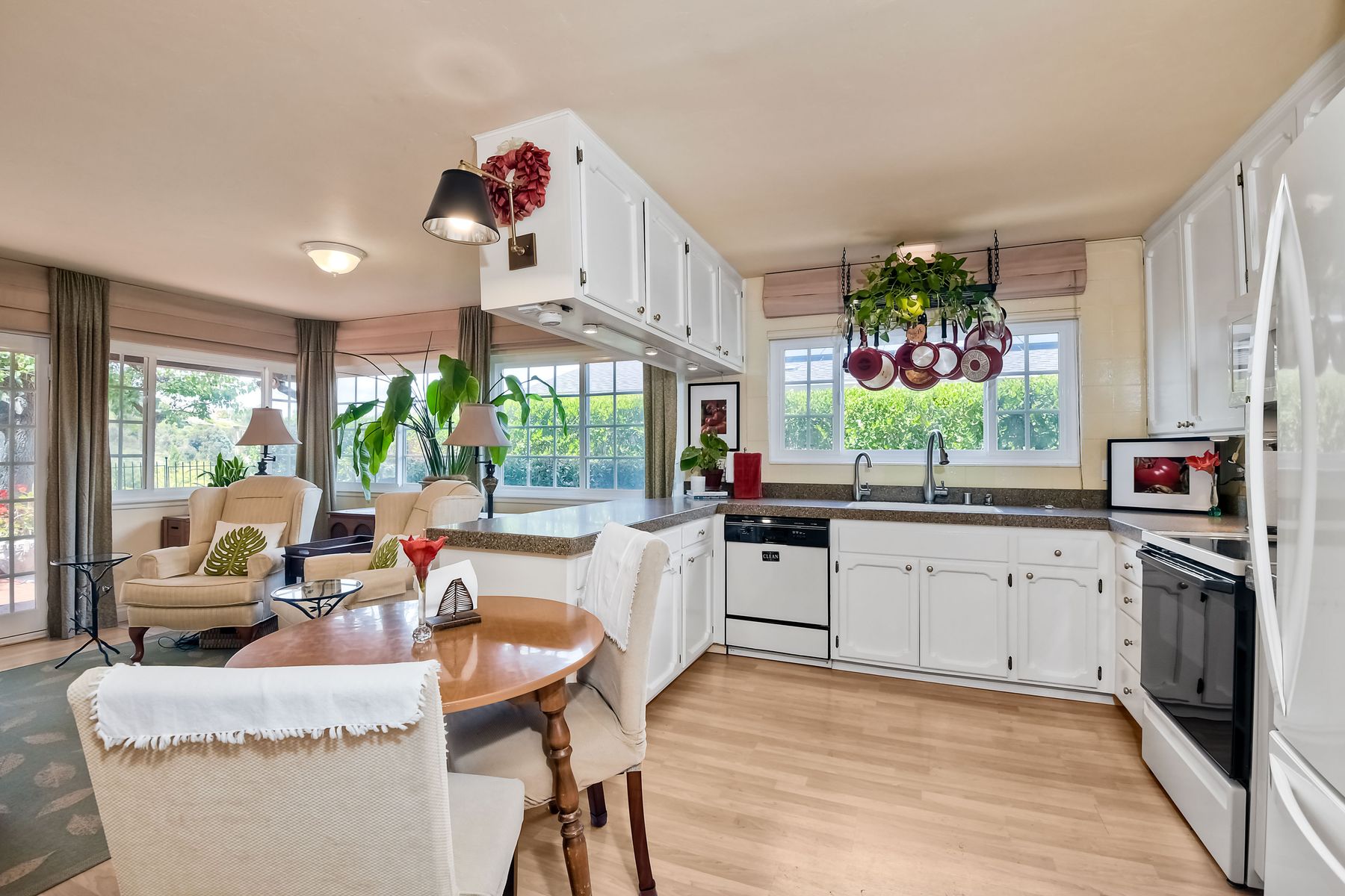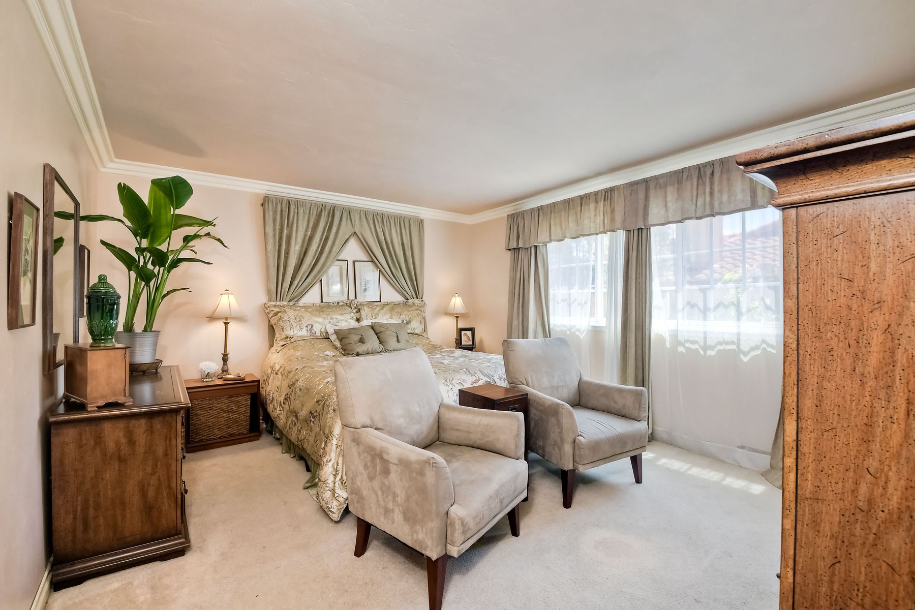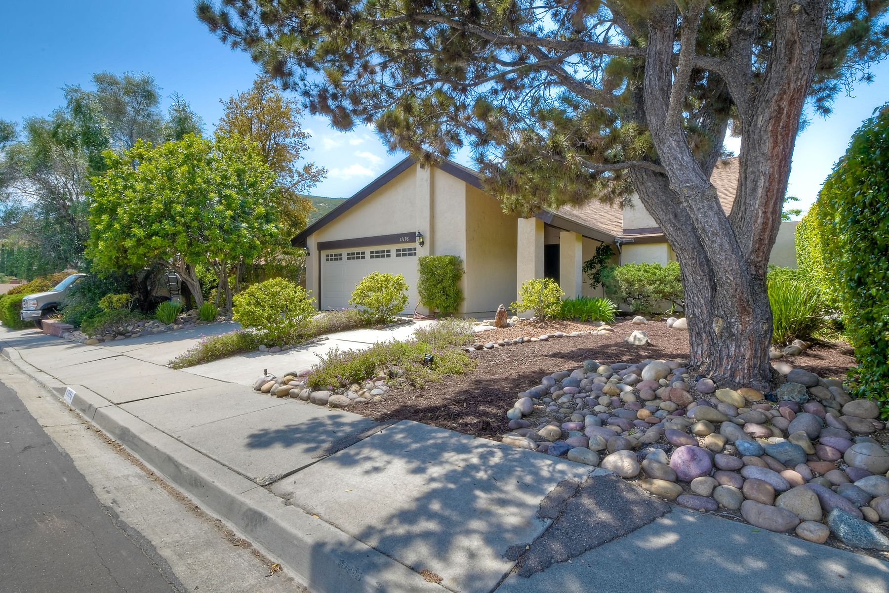 This spacious 4 bedroom, 3 bath home is located in the coveted Westwood community of Rancho Bernardo! Walking through the double doors, you experience a combination of vaulted ceilings, rich colors, brick gas fireplace and natural light. Moving into the open kitchen/family room you enter the inviting heart of the home. The kitchen has white cabinets with granite composite countertops, a generous peninsula, expansive window over the sink, lots of storage and wood laminate flooring flowing into the family room. The family room is centered by a built in multi-media cabinet surrounded by warm pine wood paneling and multiple windows. French doors to the back patio facilitates indoor/outdoor living and entertaining. See Supplement . . . An adjacent bedroom has been opened up to create a stunning dining room, expanding the functionality of the home. The downstairs master suite begins with a roomy bedroom offering calming colors, cozy carpet and a remodeled closet lined with fragrant cedar paneling. The bathroom is beautifully appointed with a large shower updated with handsome tile work, 2 niches and a large pebble floor. Another downstairs bedroom is being used as an office but can easily be converted back to a bedroom if needed. The hall bath has also been remodeled a with a lovely tile shower and complimentary vanity. Up the carpeted stairs, to one side is a sizeable bedroom with vaulted ceiling, cooling fans, amazing views and a walk-in closet. Another bedroom has been modified to be an office/bedroom with closet removed but could be easily added. Both rooms share a full bathroom offering the same beautiful details and including a bath/shower combination. On this level, a door to attic storage with flooring and lighting is a wonderful surprise! The backyard is wonderful with a brick patio, built in flower/ vegetable beds, two shade trees, mature landscape and a sweeping view of the neighborhood, hills, mountains and sky beyond. Located in the prize winning Poway Unified School District with access to the Westwood club with it’s amazing amenities: Olympic size pool, playground, tennis courts, ball fields, preschool, Fitness Center and more! Close to restaurants, shopping and freeway access.