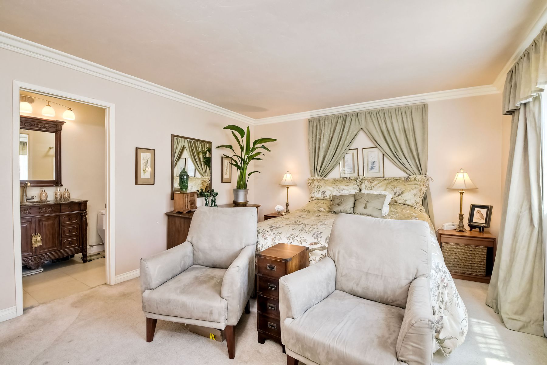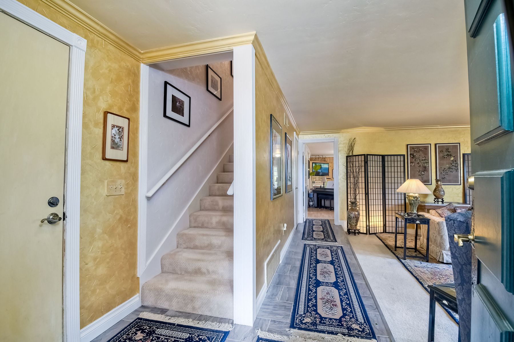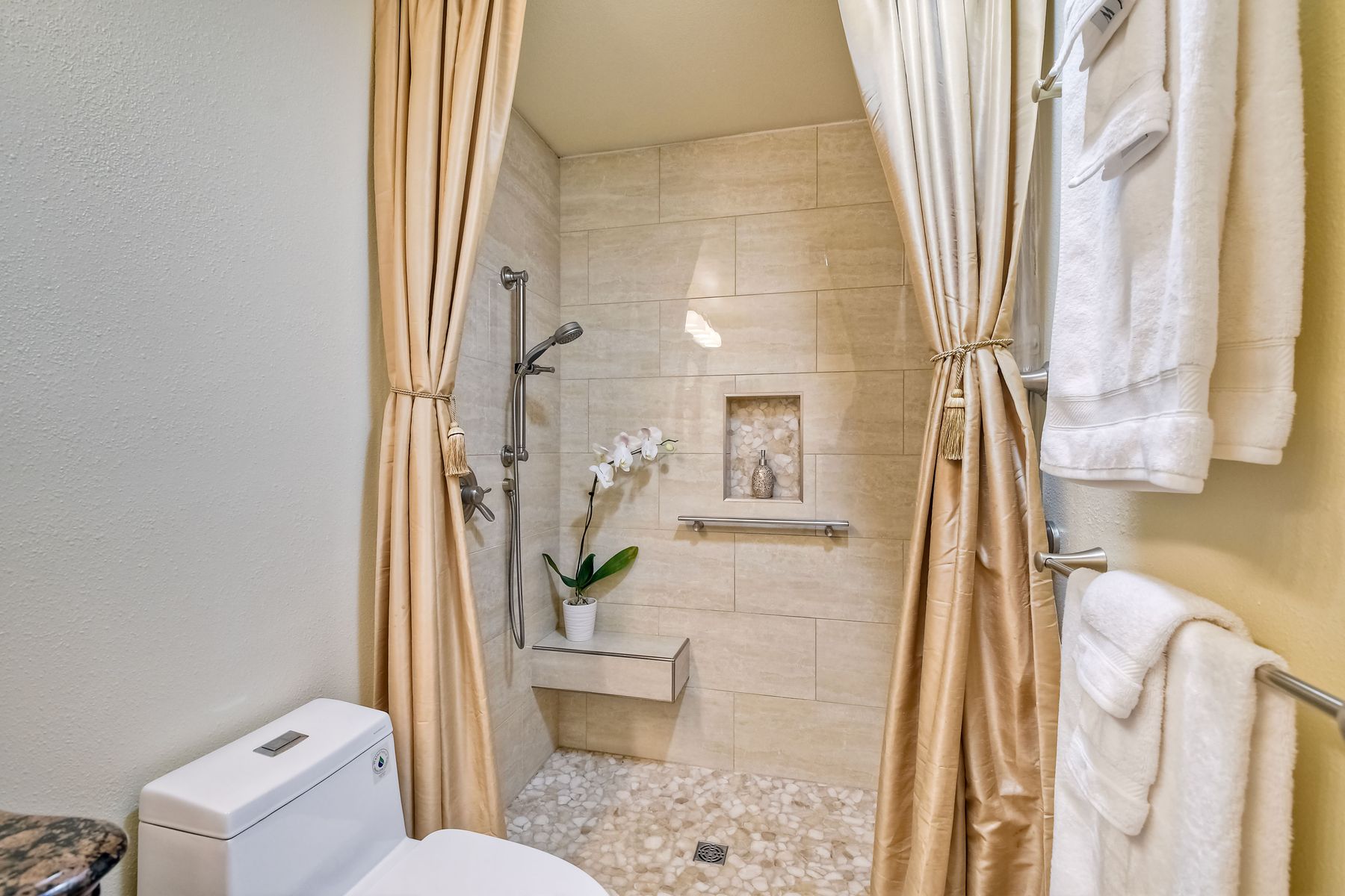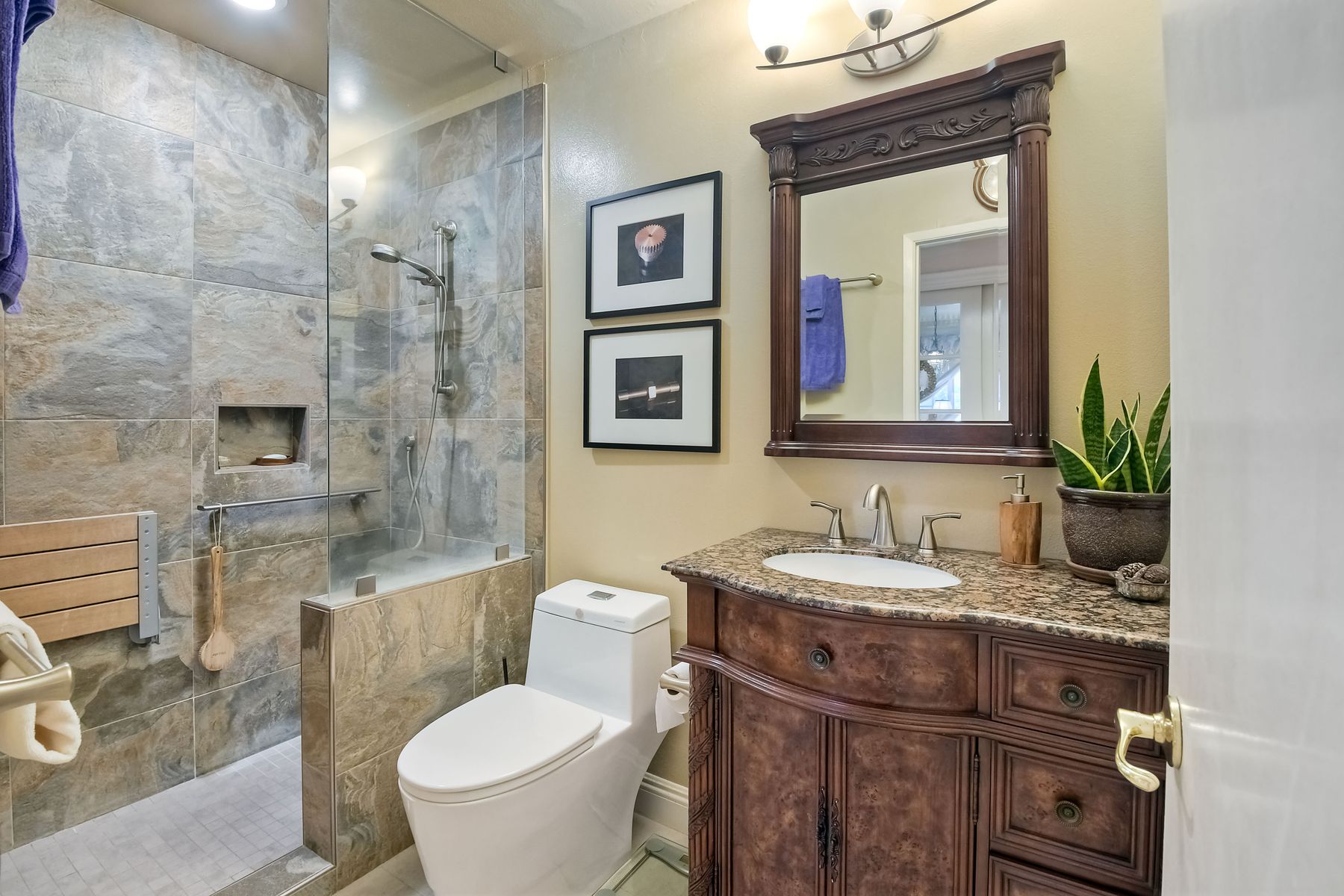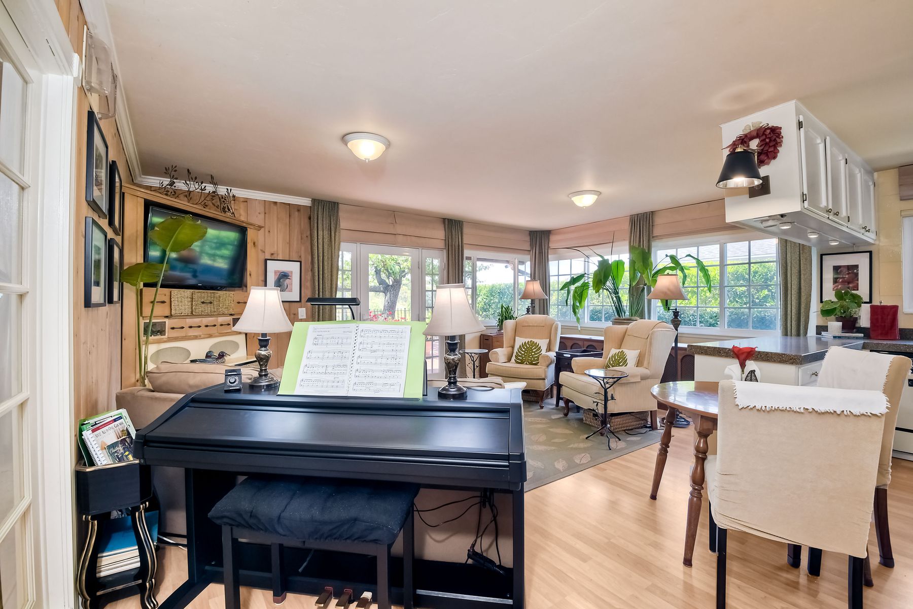 This spacious 4 bedroom, 3 bath home is located in the coveted Westwood community of Rancho Bernardo! Walking through the double doors, you experience a combination of vaulted ceilings, rich colors, brick gas fireplace and natural light. Moving into the open kitchen/family room you enter the inviting heart of the home. The kitchen has white cabinets with granite composite countertops, a generous peninsula, expansive window over the sink, lots of storage and wood laminate flooring flowing into the family room. The family room is centered by a built in multi-media cabinet surrounded by warm pine wood paneling and multiple windows. French doors to the back patio facilitates indoor/outdoor living and entertaining. See Supplement . . . An adjacent bedroom has been opened up to create a stunning dining room, expanding the functionality of the home. The downstairs master suite begins with a roomy bedroom offering calming colors, cozy carpet and a remodeled closet lined with fragrant cedar paneling. The bathroom is beautifully appointed with a large shower updated with handsome tile work, 2 niches and a large pebble floor. Another downstairs bedroom is being used as an office but can easily be converted back to a bedroom if needed. The hall bath has also been remodeled a with a lovely tile shower and complimentary vanity. Up the carpeted stairs, to one side is a sizeable bedroom with vaulted ceiling, cooling fans, amazing views and a walk-in closet. Another bedroom has been modified to be an office/bedroom with closet removed but could be easily added. Both rooms share a full bathroom offering the same beautiful details and including a bath/shower combination. On this level, a door to attic storage with flooring and lighting is a wonderful surprise! The backyard is wonderful with a brick patio, built in flower/ vegetable beds, two shade trees, mature landscape and a sweeping view of the neighborhood, hills, mountains and sky beyond. Located in the prize winning Poway Unified School District with access to the Westwood club with it’s amazing amenities: Olympic size pool, playground, tennis courts, ball fields, preschool, Fitness Center and more! Close to restaurants, shopping and freeway access.