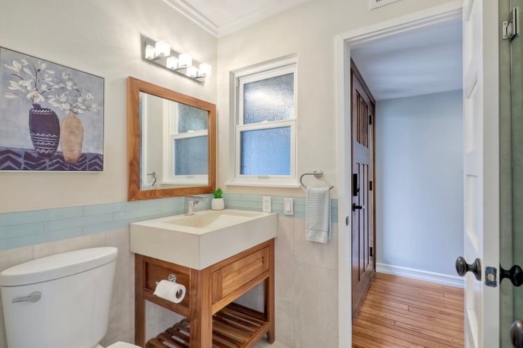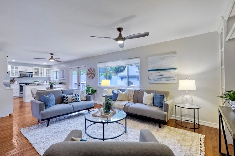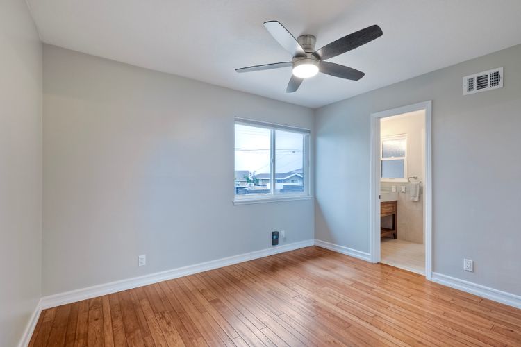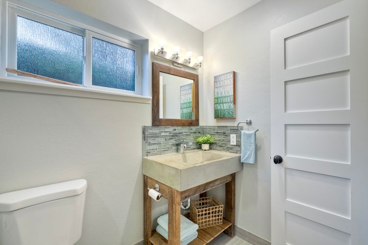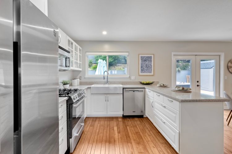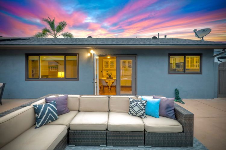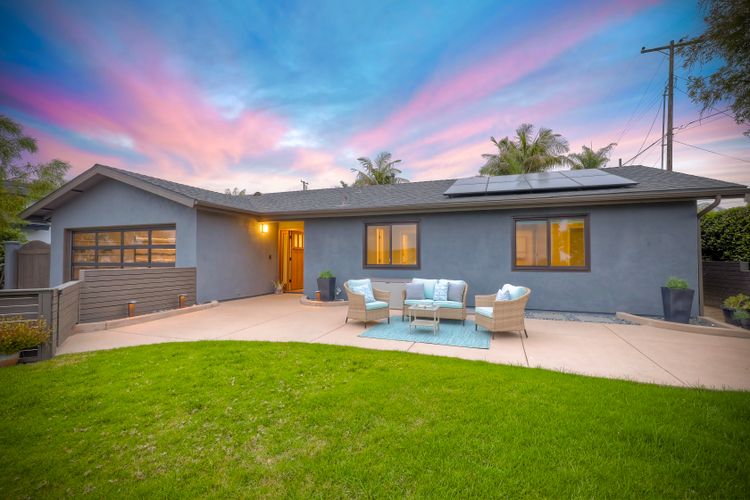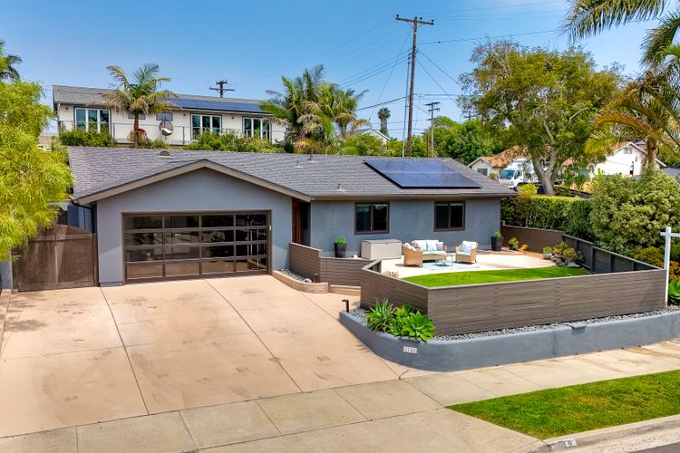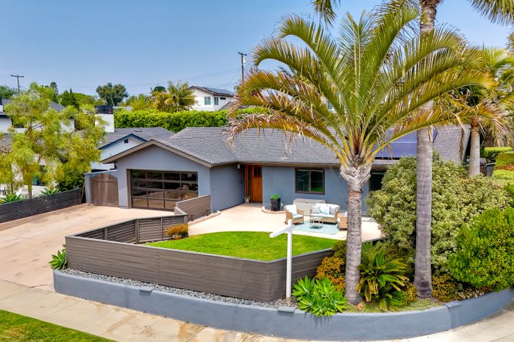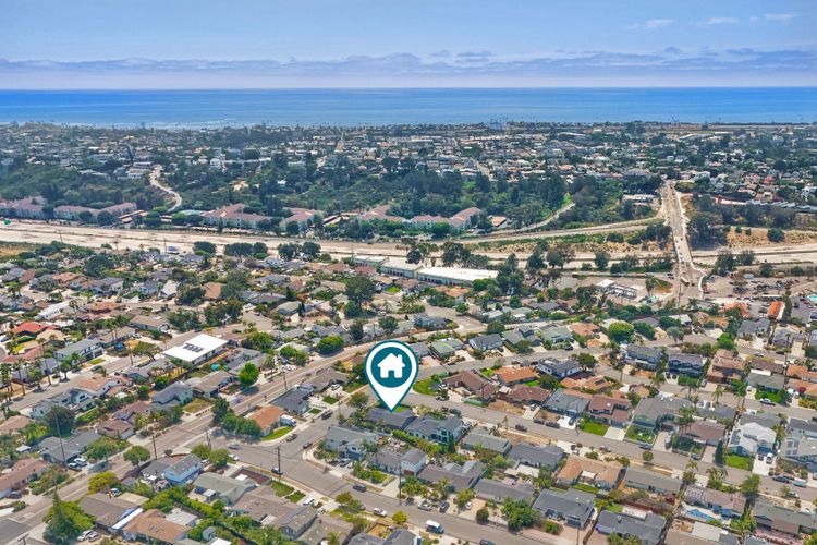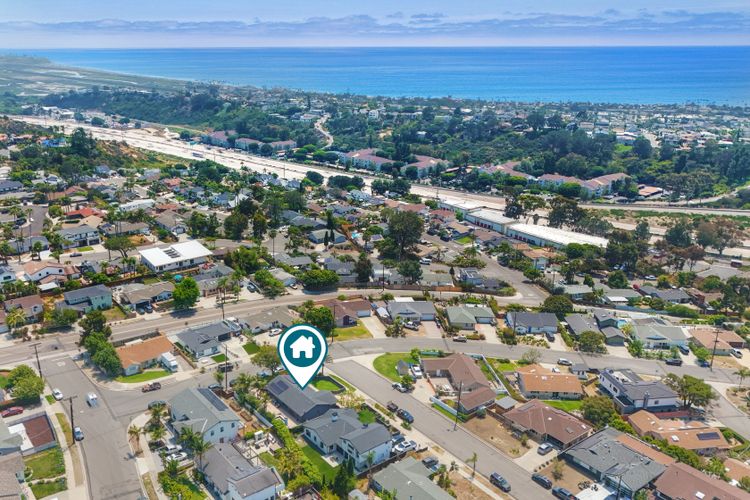 Unobstructed OCEAN VIEWS await from this completely upgraded and stunning single story home in Cardiff by the Sea. Enjoy the sun setting beneath the ocean each night from the comfort of your home, in this peaceful and serene setting. The exterior has been recently painted, newer fencing installed, new garage door and motor installed, and fresh landscaping offer maximum curb appeal and privacy. There is approved plans for an ADU which leaves so many options available for expansion. When you step inside, enjoy the natural light and open concept. The living room offers built ins and opens to the dining and kitchen area. The kitchen island offers ample seating and counter space with additional built in cabinetry included. There is neutral paint and hardwood floors throughout the home. The primary bedroom includes a large walk-in closet. The two bathrooms have been completely remodeled with stone and concrete vanities, custom tile backsplash and upgraded lighting and fixtures. There is an additional flex space in the garage for multipurpose room with the glass garage door that allows ocean views. The 6,660 sq ft lot offers a backyard that is an entertainers dream, with a built in BBQ, kitchen island, custom built gas fireplace, spa, and low maintenance landscaping. This property includes owned solar as well as a new electrical panel and NO HOA! The home is a dream and so is the location, with it approx a mile to the beach and walking distance to boutique shops, delicious dining options and walking/biking trails. Don't let this opportunity pass you by. Create memories and live the beach life in this coastal home in Cardiff!