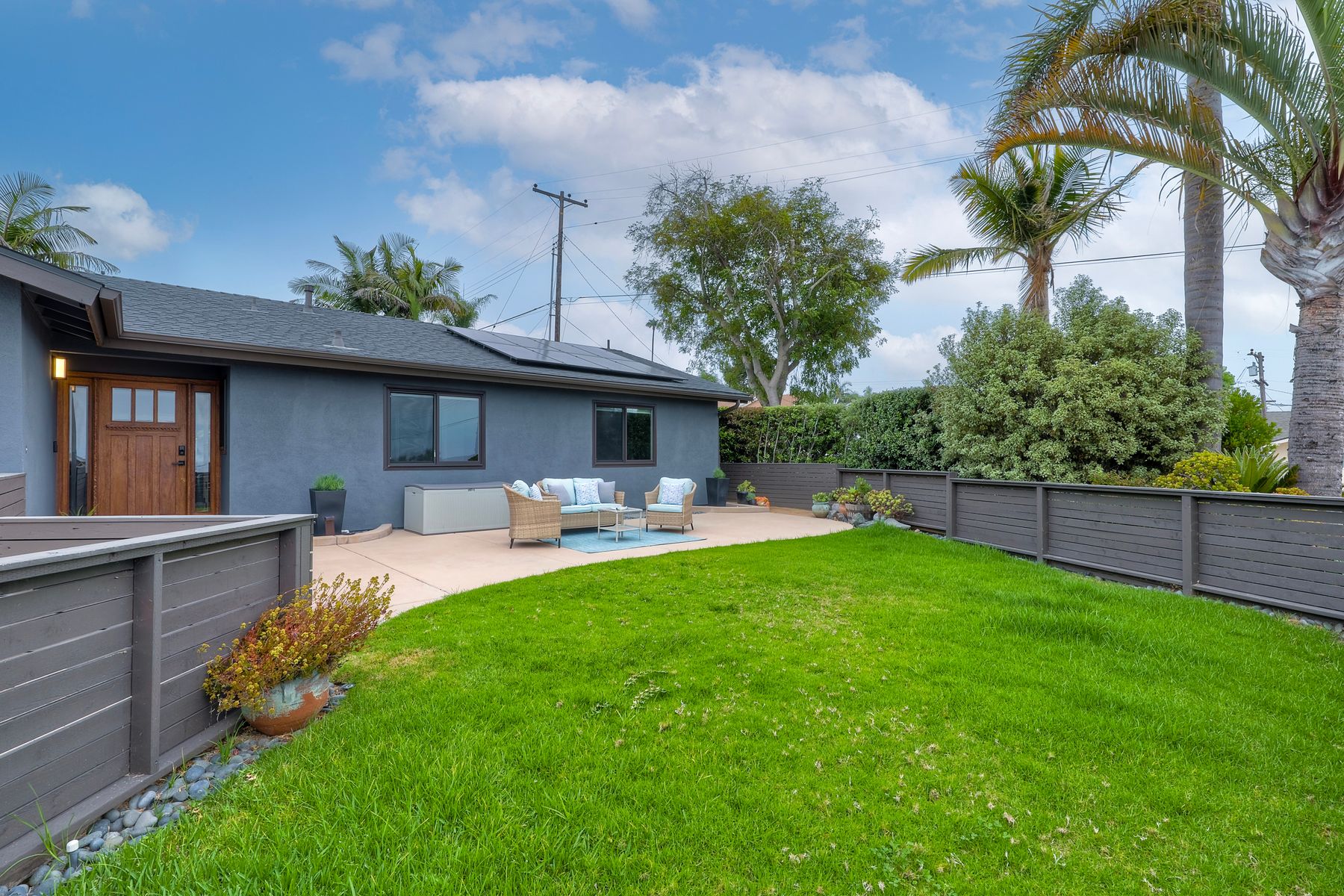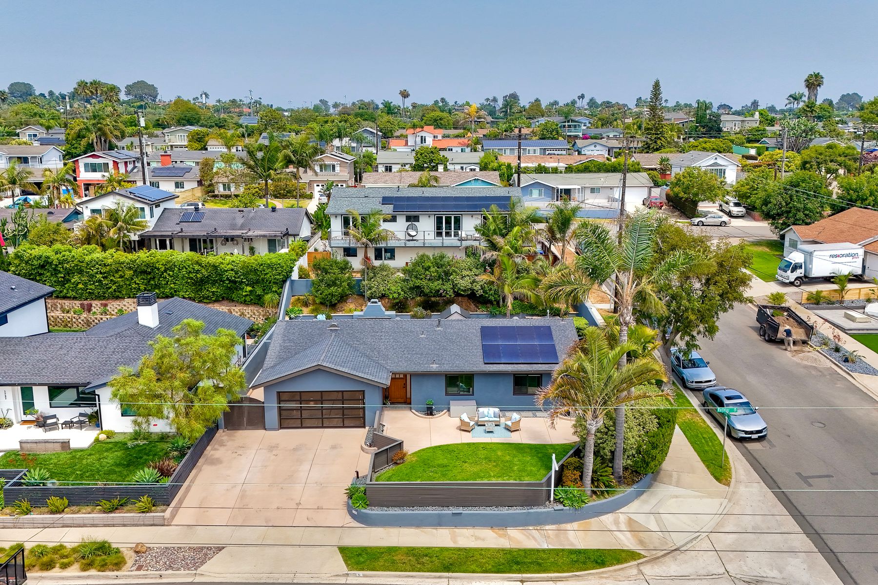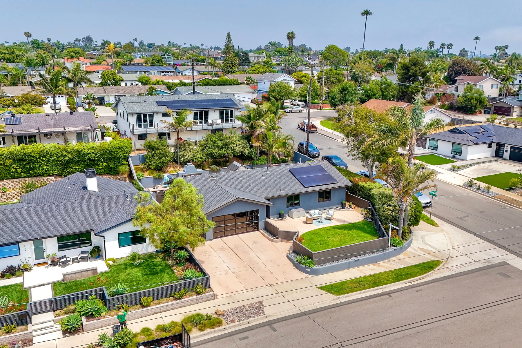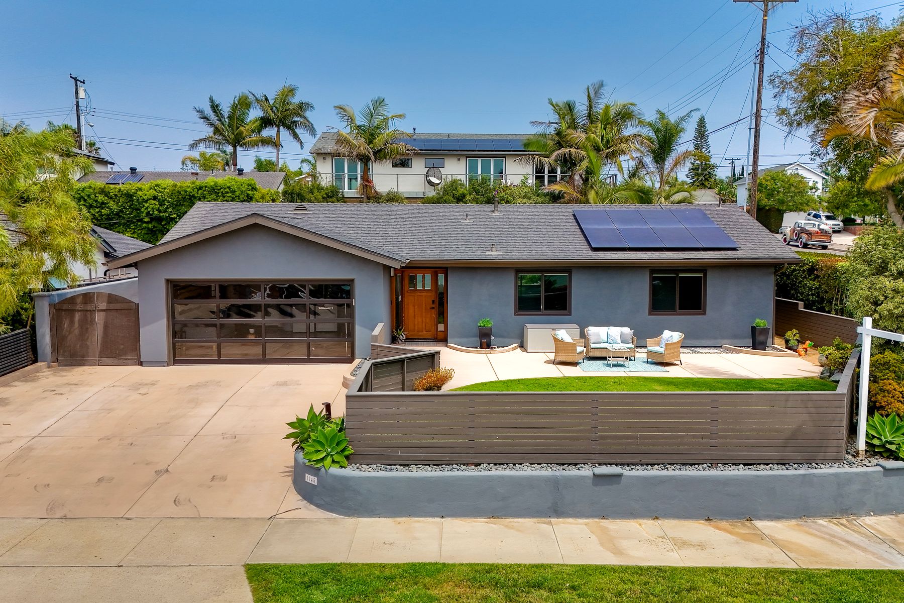 Unobstructed OCEAN VIEWS await from this completely upgraded and stunning single story home in Cardiff by the Sea. Enjoy the sun setting beneath the ocean each night from the comfort of your home, in this peaceful and serene setting. The exterior has been recently painted, newer fencing installed, new garage door and motor installed, and fresh landscaping offer maximum curb appeal and privacy. There is approved plans for an ADU which leaves so many options available for expansion. When you step inside, enjoy the natural light and open concept. The living room offers built ins and opens to the dining and kitchen area. The kitchen island offers ample seating and counter space with additional built in cabinetry included. There is neutral paint and hardwood floors throughout the home. The primary bedroom includes a large walk-in closet. The two bathrooms have been completely remodeled with stone and concrete vanities, custom tile backsplash and upgraded lighting and fixtures. There is an additional flex space in the garage for multipurpose room with the glass garage door that allows ocean views. The 6,660 sq ft lot offers a backyard that is an entertainers dream, with a built in BBQ, kitchen island, custom built gas fireplace, spa, and low maintenance landscaping. This property includes owned solar as well as a new electrical panel and NO HOA! The home is a dream and so is the location, with it approx a mile to the beach and walking distance to boutique shops, delicious dining options and walking/biking trails. Don't let this opportunity pass you by. Create memories and live the beach life in this coastal home in Cardiff!