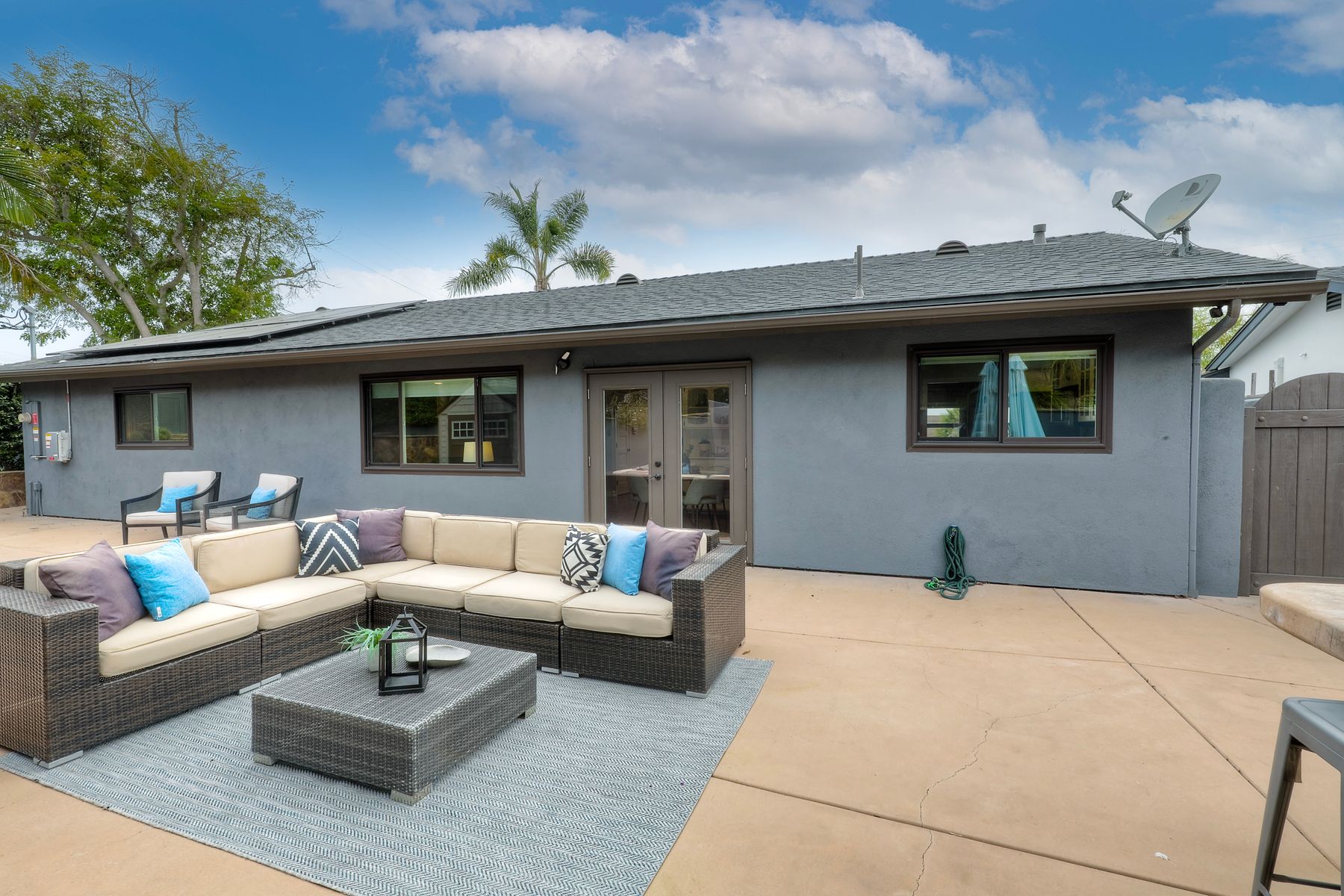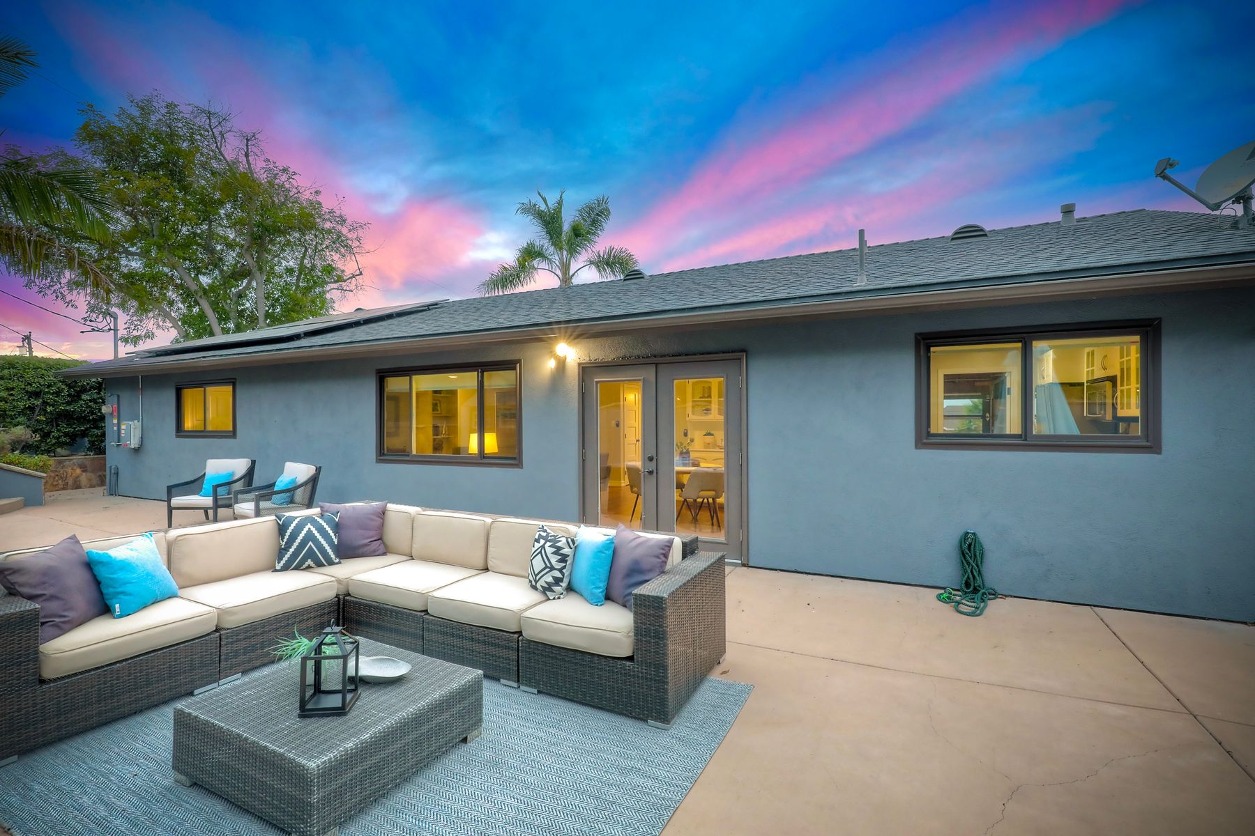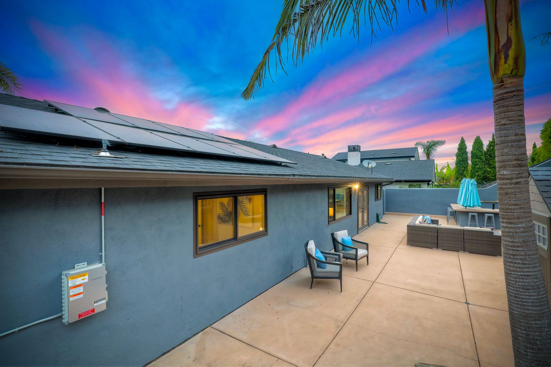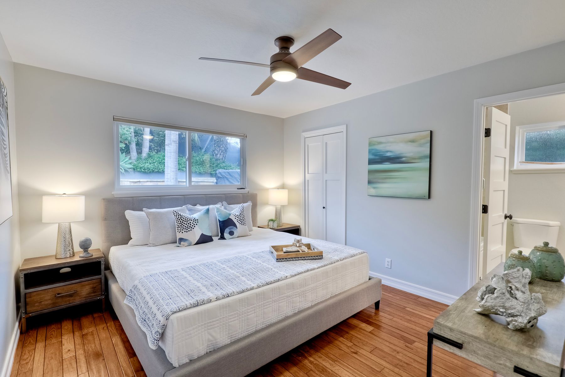 Unobstructed OCEAN VIEWS await from this completely upgraded and stunning single story home in Cardiff by the Sea. Enjoy the sun setting beneath the ocean each night from the comfort of your home, in this peaceful and serene setting. The exterior has been recently painted, newer fencing installed, new garage door and motor installed, and fresh landscaping offer maximum curb appeal and privacy. There is approved plans for an ADU which leaves so many options available for expansion. When you step inside, enjoy the natural light and open concept. The living room offers built ins and opens to the dining and kitchen area. The kitchen island offers ample seating and counter space with additional built in cabinetry included. There is neutral paint and hardwood floors throughout the home. The primary bedroom includes a large walk-in closet. The two bathrooms have been completely remodeled with stone and concrete vanities, custom tile backsplash and upgraded lighting and fixtures. There is an additional flex space in the garage for multipurpose room with the glass garage door that allows ocean views. The 6,660 sq ft lot offers a backyard that is an entertainers dream, with a built in BBQ, kitchen island, custom built gas fireplace, spa, and low maintenance landscaping. This property includes owned solar as well as a new electrical panel and NO HOA! The home is a dream and so is the location, with it approx a mile to the beach and walking distance to boutique shops, delicious dining options and walking/biking trails. Don't let this opportunity pass you by. Create memories and live the beach life in this coastal home in Cardiff!