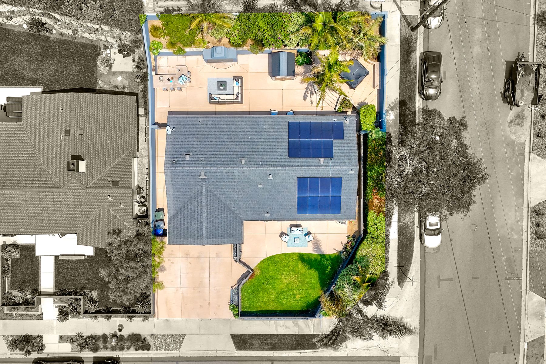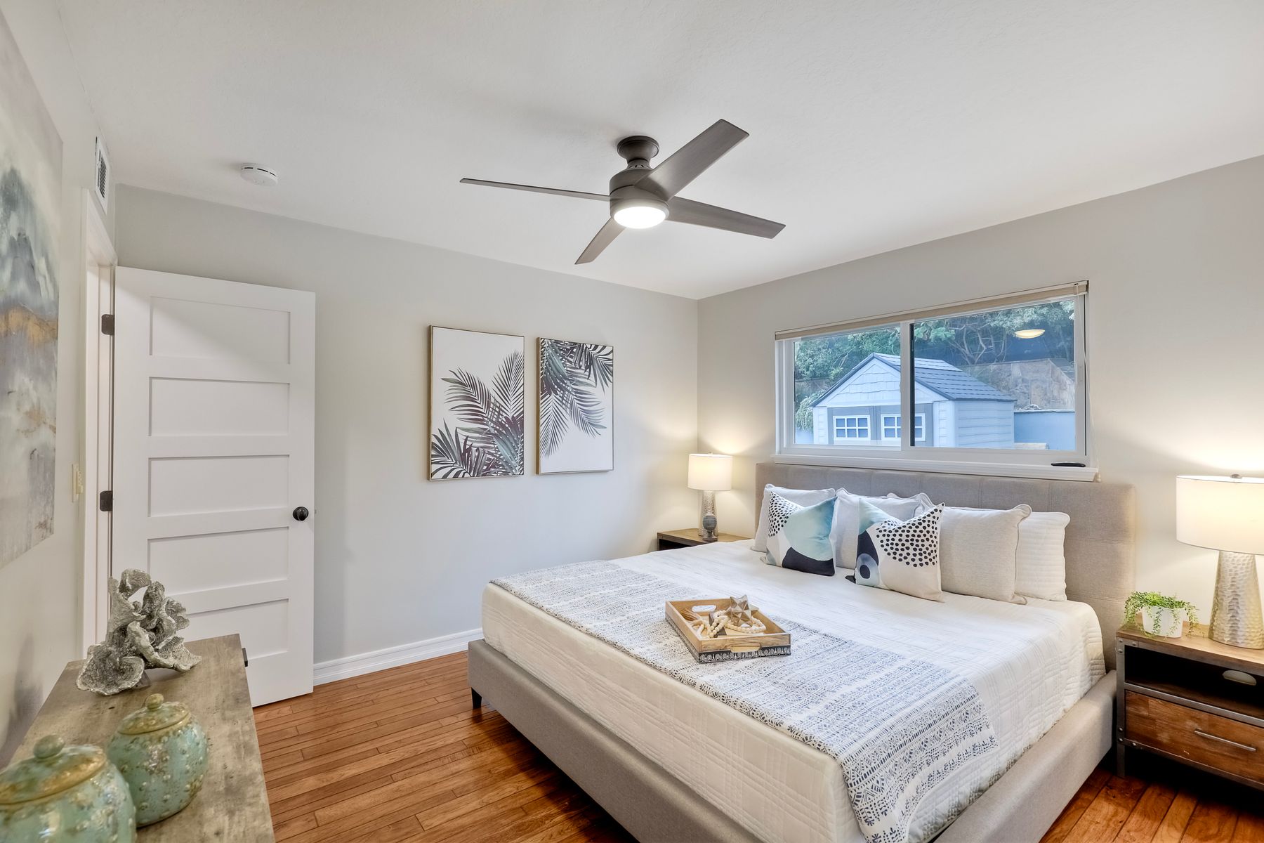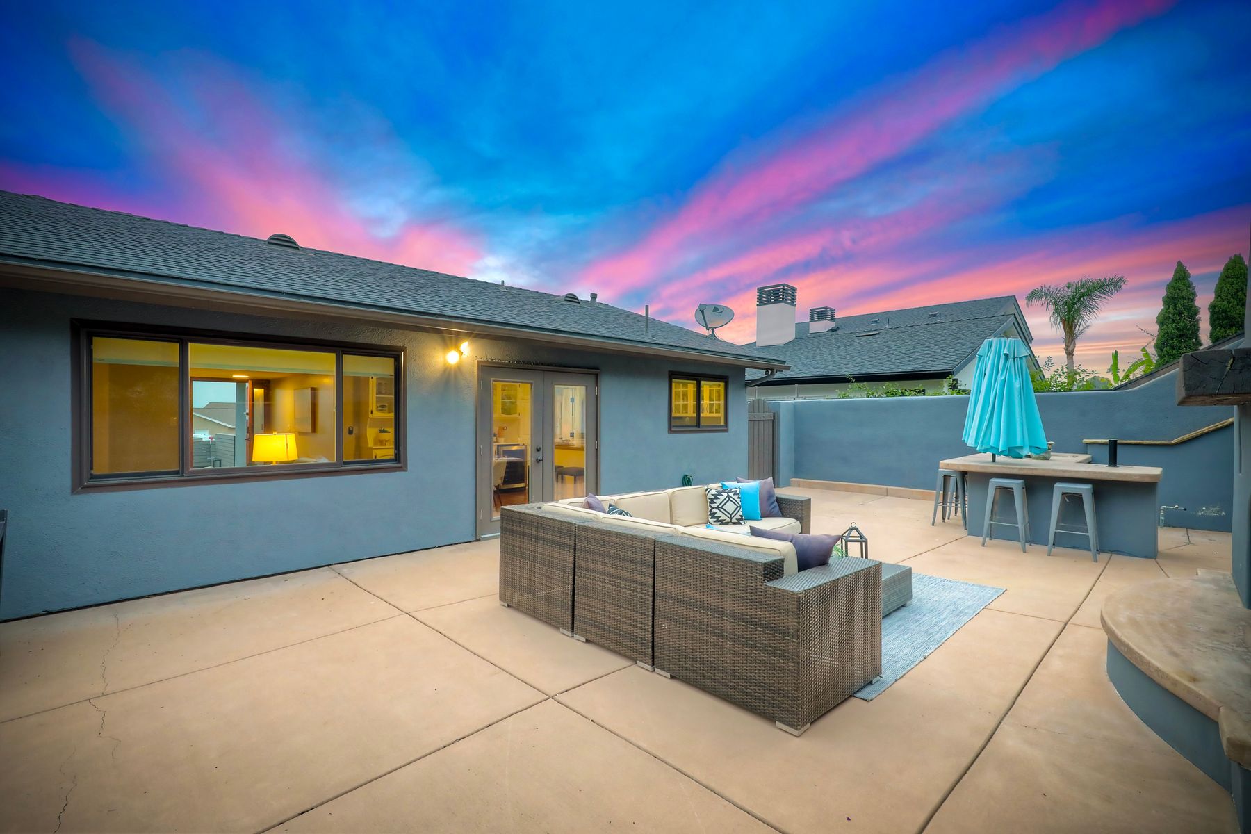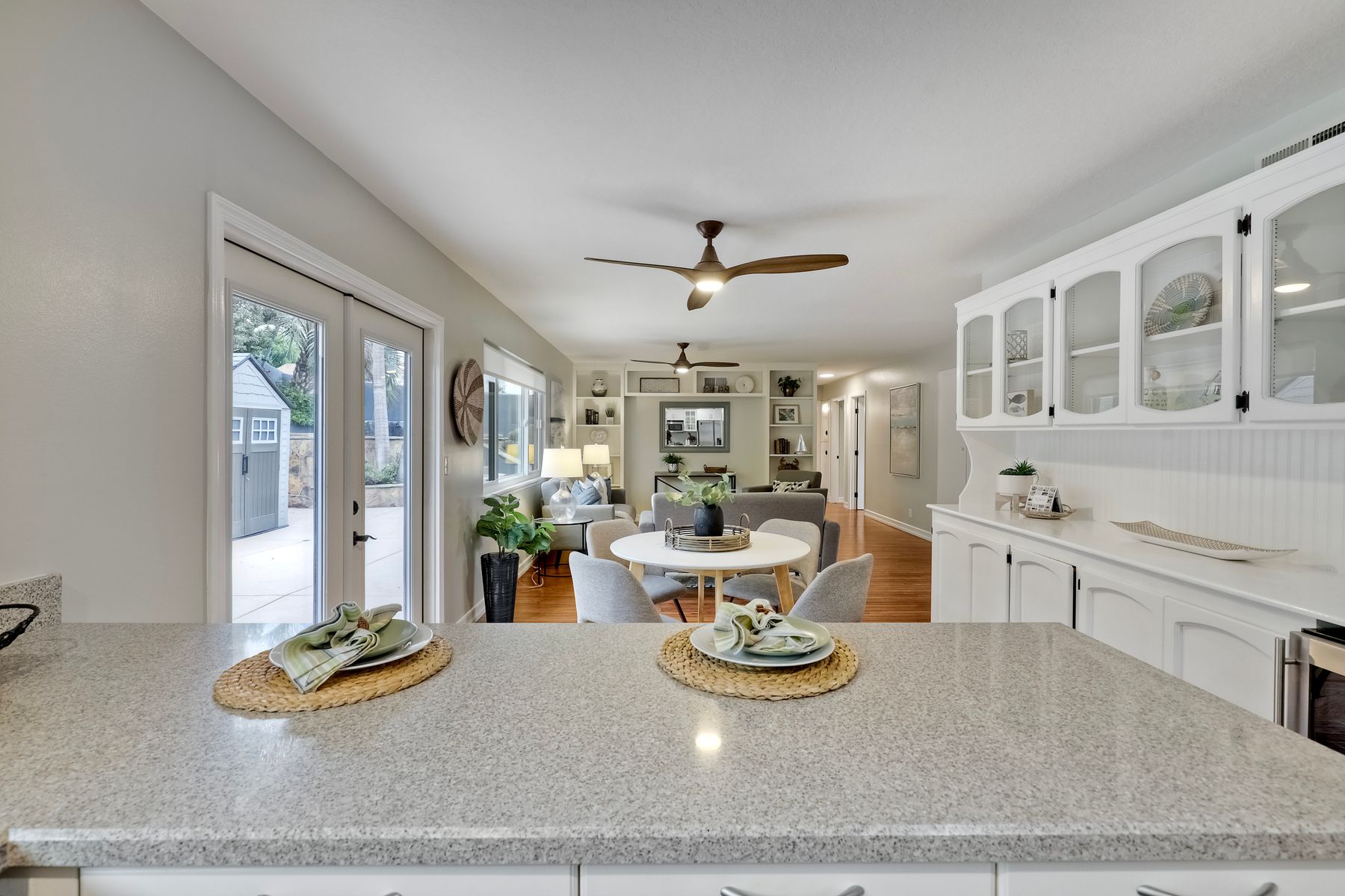 Unobstructed OCEAN VIEWS await from this completely upgraded and stunning single story home in Cardiff by the Sea. Enjoy the sun setting beneath the ocean each night from the comfort of your home, in this peaceful and serene setting. The exterior has been recently painted, newer fencing installed, new garage door and motor installed, and fresh landscaping offer maximum curb appeal and privacy. There is approved plans for an ADU which leaves so many options available for expansion. When you step inside, enjoy the natural light and open concept. The living room offers built ins and opens to the dining and kitchen area. The kitchen island offers ample seating and counter space with additional built in cabinetry included. There is neutral paint and hardwood floors throughout the home. The primary bedroom includes a large walk-in closet. The two bathrooms have been completely remodeled with stone and concrete vanities, custom tile backsplash and upgraded lighting and fixtures. There is an additional flex space in the garage for multipurpose room with the glass garage door that allows ocean views. The 6,660 sq ft lot offers a backyard that is an entertainers dream, with a built in BBQ, kitchen island, custom built gas fireplace, spa, and low maintenance landscaping. This property includes owned solar as well as a new electrical panel and NO HOA! The home is a dream and so is the location, with it approx a mile to the beach and walking distance to boutique shops, delicious dining options and walking/biking trails. Don't let this opportunity pass you by. Create memories and live the beach life in this coastal home in Cardiff!