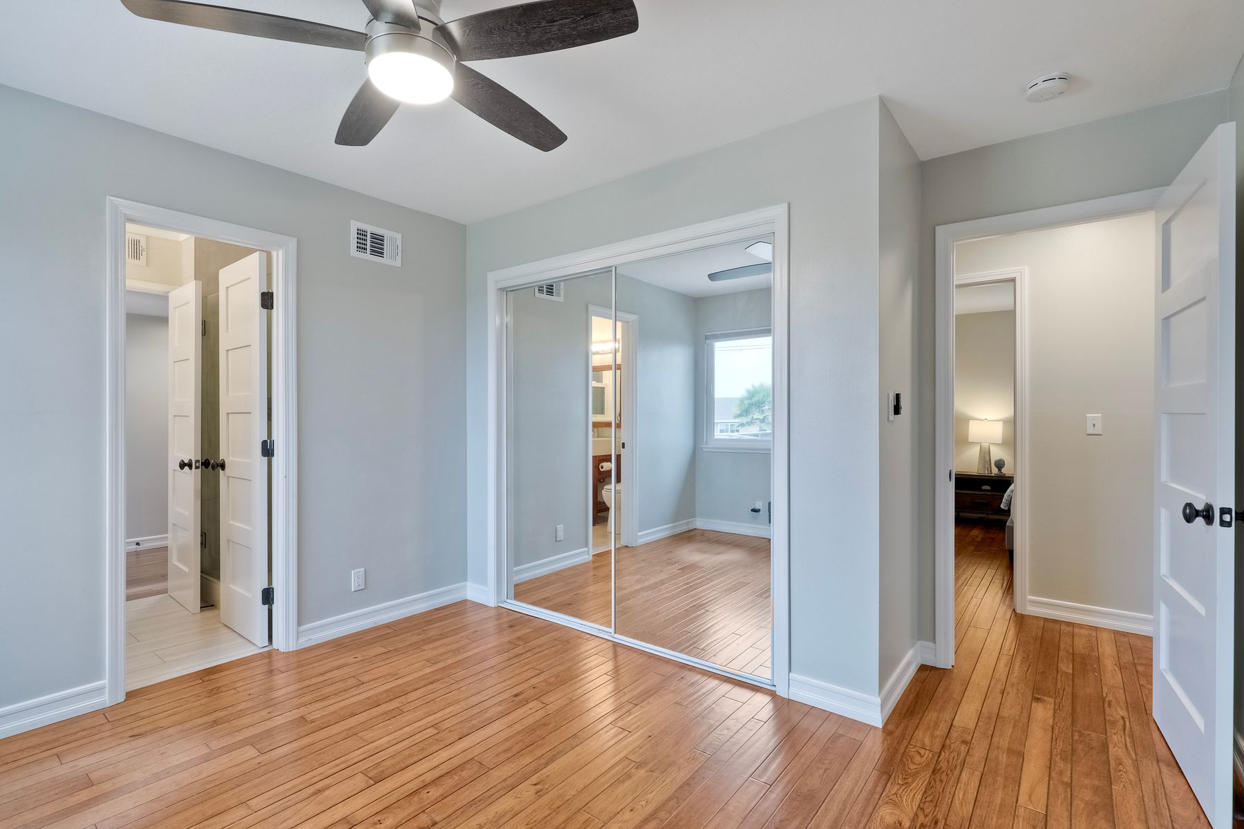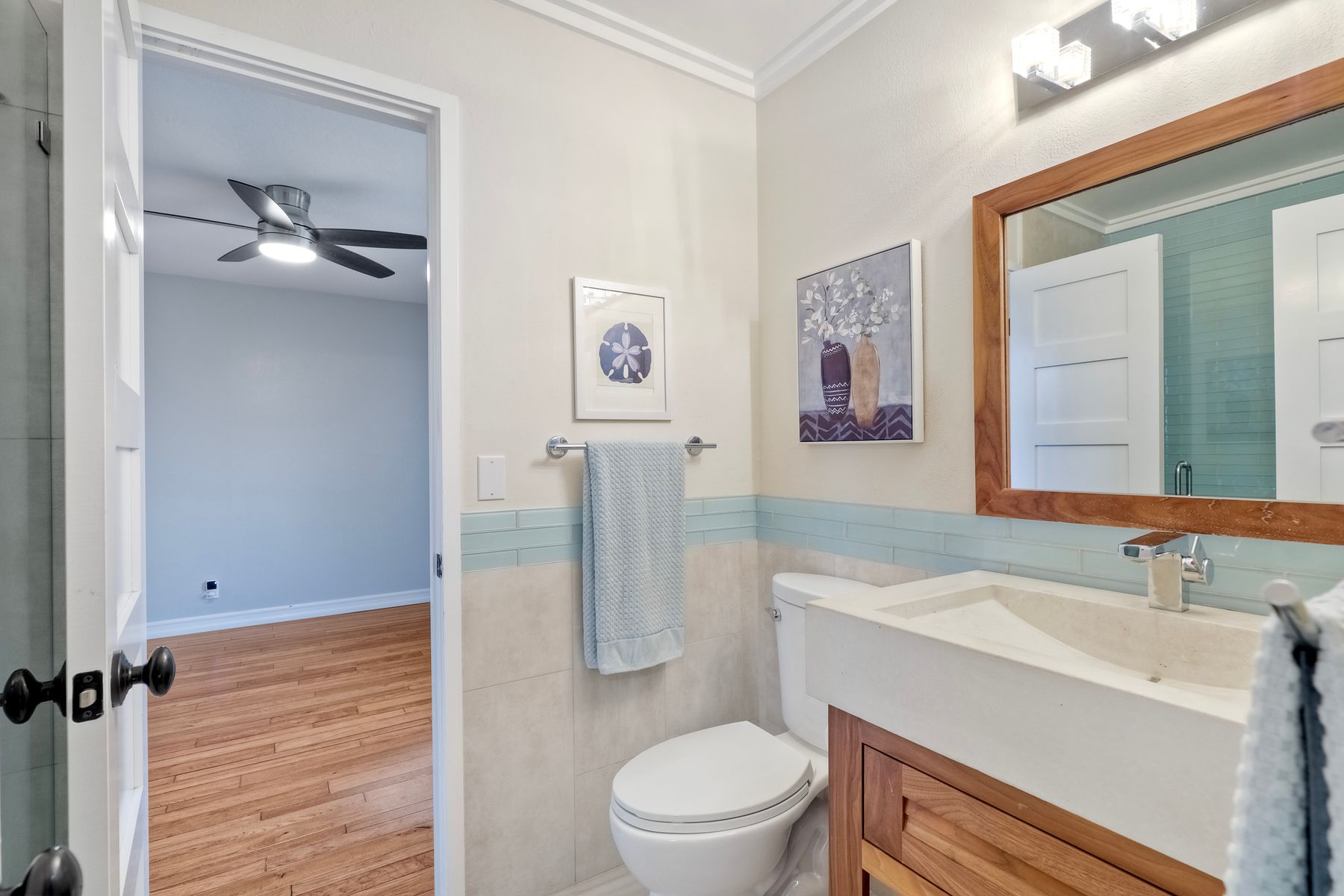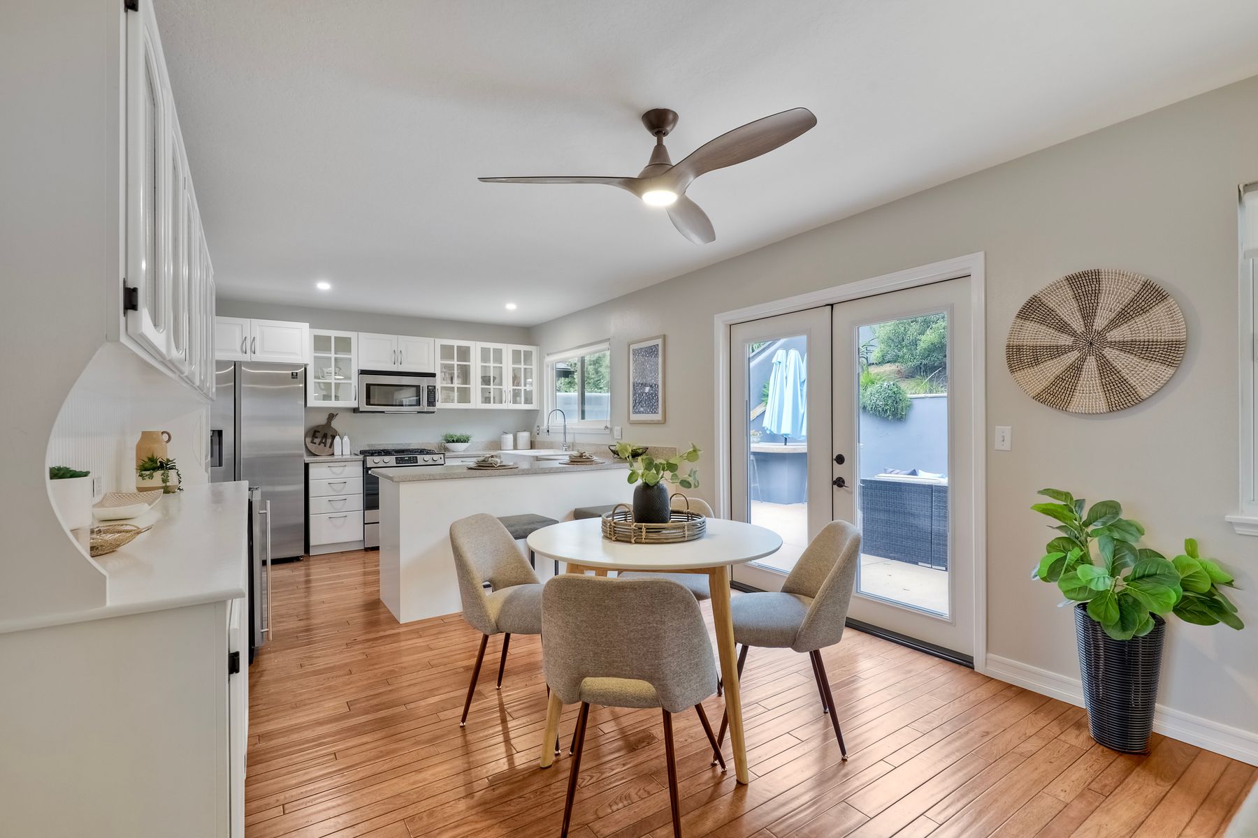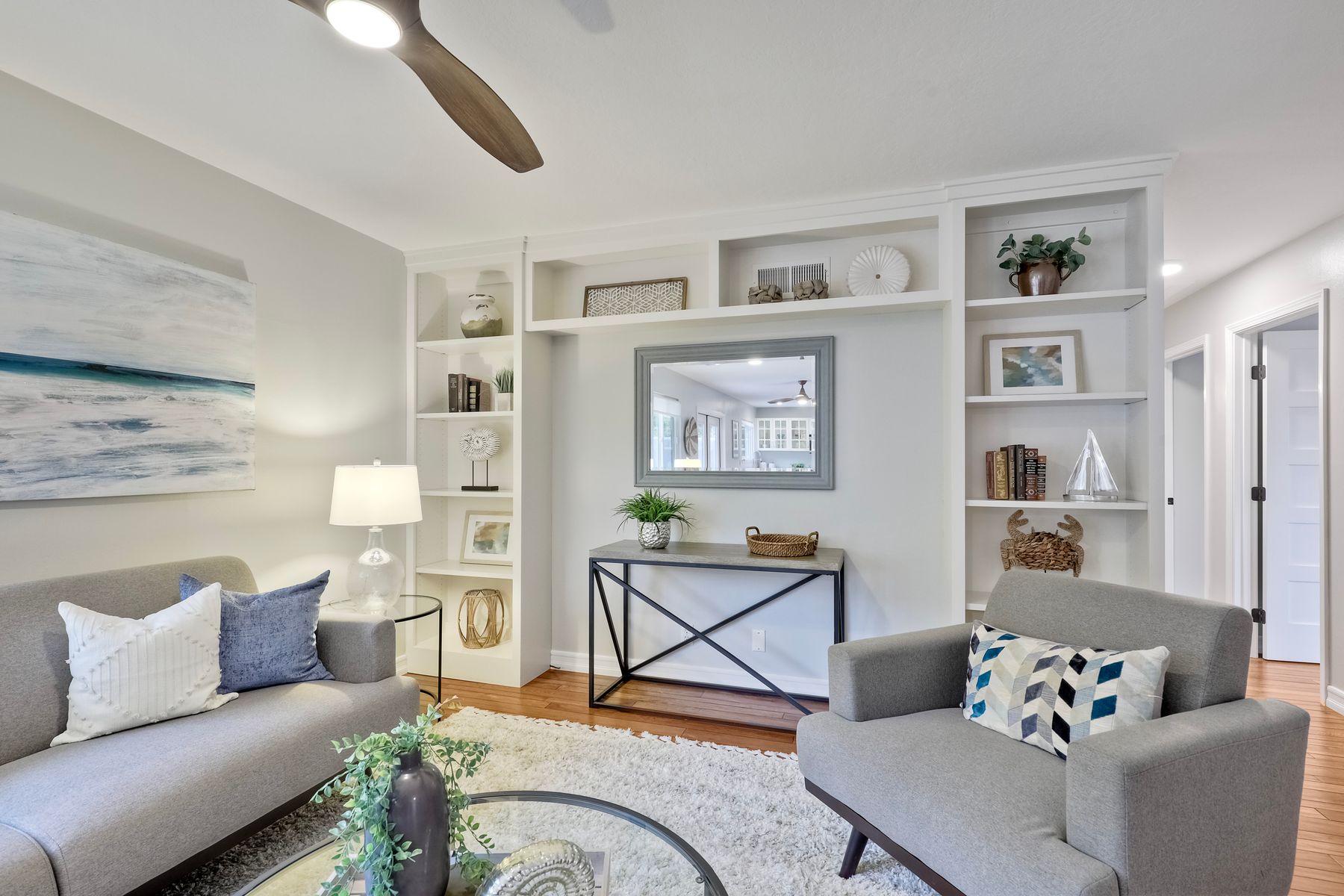 Unobstructed OCEAN VIEWS await from this completely upgraded and stunning single story home in Cardiff by the Sea. Enjoy the sun setting beneath the ocean each night from the comfort of your home, in this peaceful and serene setting. The exterior has been recently painted, newer fencing installed, new garage door and motor installed, and fresh landscaping offer maximum curb appeal and privacy. There is approved plans for an ADU which leaves so many options available for expansion. When you step inside, enjoy the natural light and open concept. The living room offers built ins and opens to the dining and kitchen area. The kitchen island offers ample seating and counter space with additional built in cabinetry included. There is neutral paint and hardwood floors throughout the home. The primary bedroom includes a large walk-in closet. The two bathrooms have been completely remodeled with stone and concrete vanities, custom tile backsplash and upgraded lighting and fixtures. There is an additional flex space in the garage for multipurpose room with the glass garage door that allows ocean views. The 6,660 sq ft lot offers a backyard that is an entertainers dream, with a built in BBQ, kitchen island, custom built gas fireplace, spa, and low maintenance landscaping. This property includes owned solar as well as a new electrical panel and NO HOA! The home is a dream and so is the location, with it approx a mile to the beach and walking distance to boutique shops, delicious dining options and walking/biking trails. Don't let this opportunity pass you by. Create memories and live the beach life in this coastal home in Cardiff!