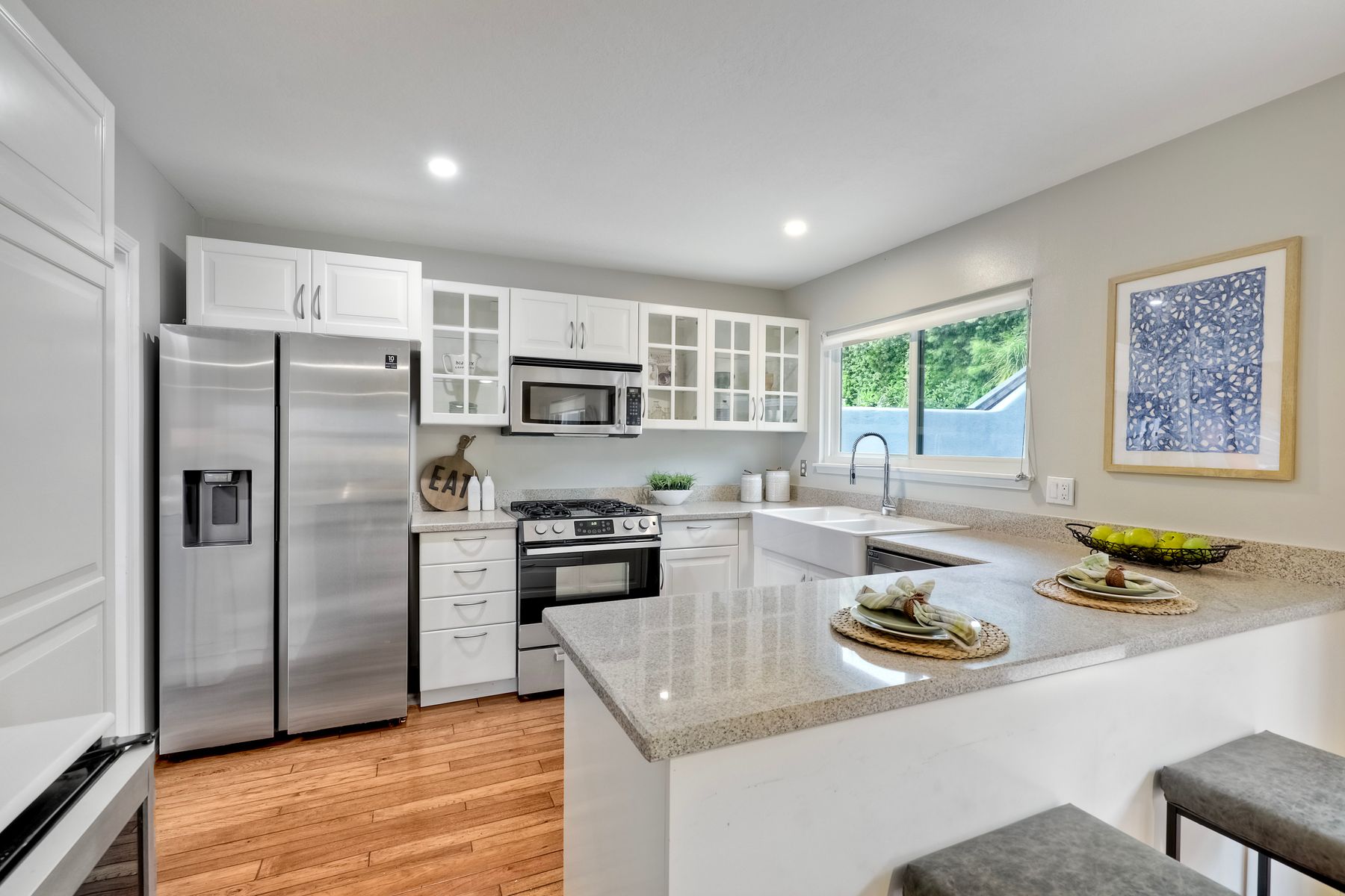 Granite Counters, Kitchen Island, Pots & Pan Drawers, Remodeled Kitchen