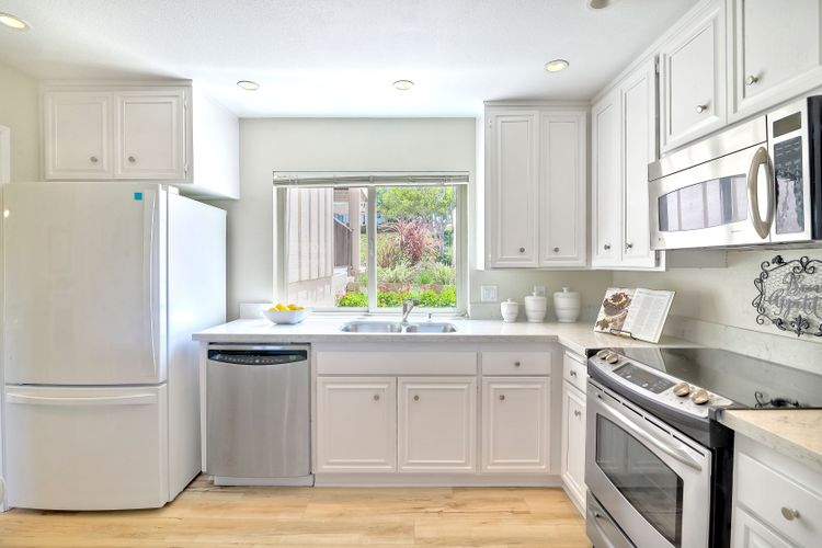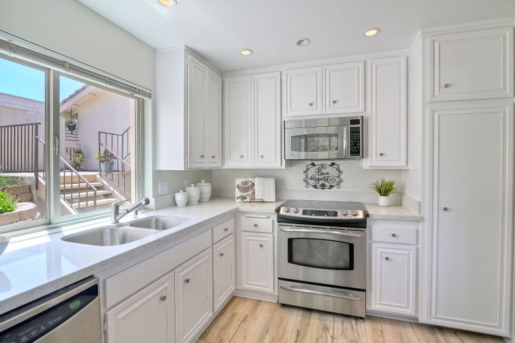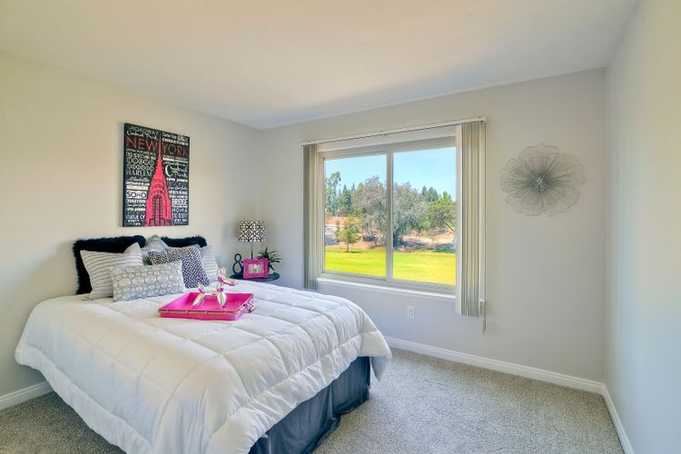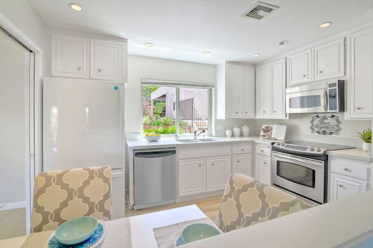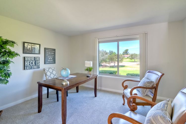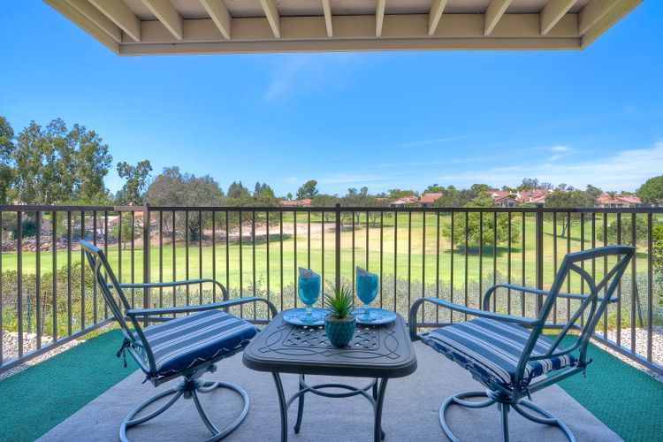Offered at $445,000-$465,000. AWESOME VIEWS! Prime location in Oaks North with relaxing, unobstructed golf course views from every room. A treasure box of upgrades: quartz countertops, dual pane windows, new carpet, new paint, new wide plank flooring, new bathroom vanities, two sinks in en suite masterbath, new light fixtures, new brushed nickel door handles, updated landscaping, full size washer and dryer. Optional 3rd bedroom, parking just steps to unit, plus low HOA incl water! Ramps and chairlifts OK! *SUPPLEMENT* VIEWS! VIEWS! VIEWS! One of the best locations in Oaks North with relaxing, unobstructed golf course views from every room plus it is updated throughout! 2 spacious bedrooms plus optional 3rd, and 2 full bathrooms. Decorator touches include new carpet, new wide plank wood-look flooring, and new paint! Light and bright kitchen features gleaming quartz countertops and stainless steel oven, microwave and dishwasher! The en suite master bathroom has a gorgeous new DUAL sink vanity, mirrors, light fixtures and toilet plus convenient walk-in shower. The guest bathroom has a tub/shower combo and also features brand new vanity, mirror, light fixture and toilet. Enjoy your morning coffee sitting on your large balcony and finish the day with a good book next to your cozy fireplace. Full size washer and dryer and refrigerator included. Private and Quiet location well off Plaza Del Verano. Your covered parking is right next to your unit! HOA includes water and sewer and more. Less than a mile to Bernardo Winery with its live music, shops and Farmer's Market; less than a mile to the RB Inn also offering live music and multiple eateries; just one mile to Albertson's and Starbucks, plus lots of activities and classes offered at Oaks North Community Center - swimming, pickle ball, art, ceramics, wood shop, and so much more for just $450 ANNUALLY! Also, could be a wonderful income property, rents for approx $1900/mo - let the snow birds flock in! With HOA approval, ramps and chairlifts are allowed.