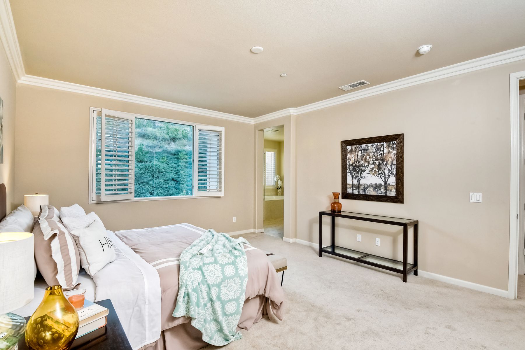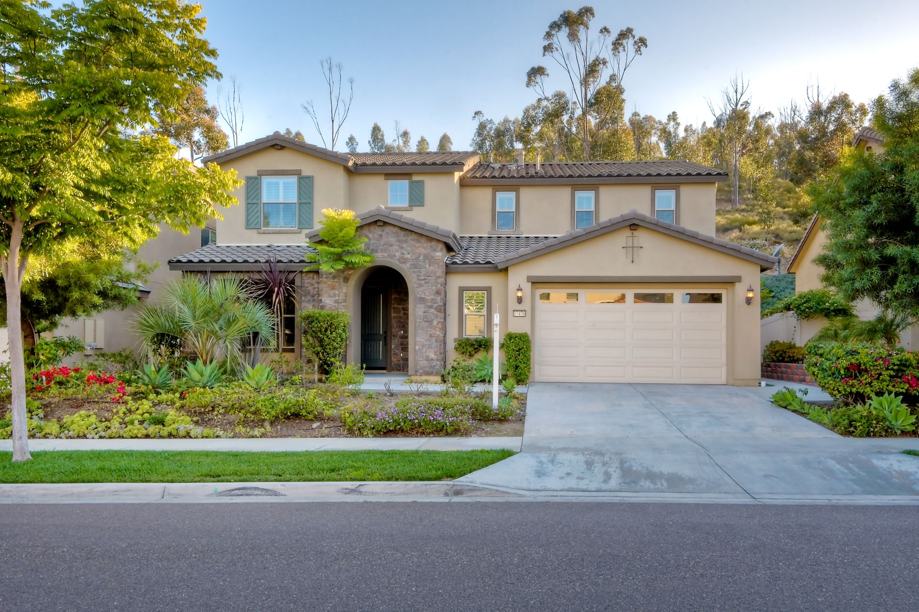 NO Mello-Roos in the heart of 4S Ranch (it's all PAID OFF). This beautiful home has an en-suite on the first level and real dark wood flooring. Low to no maintenance backyard rests up to a hillside, creating the ultimate privacy. Move in and enjoy what this gorgeous home and the community has to offer. Short walking distance to an elementary school, a large ballpark, and a water park only 4S Ranch residents have access to. This home is located near grocery stores, shops, and many great restaurants.