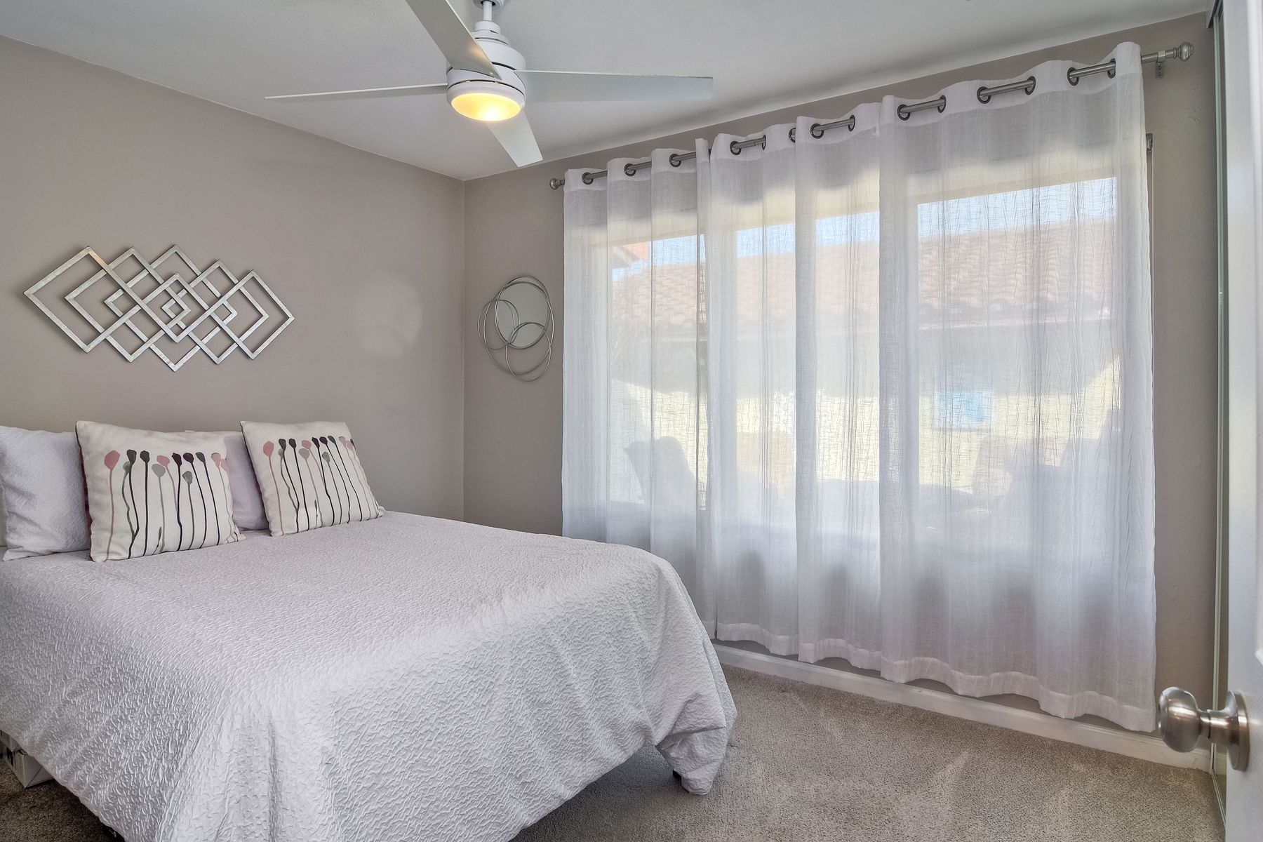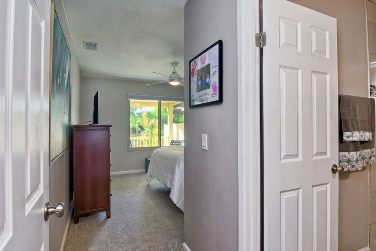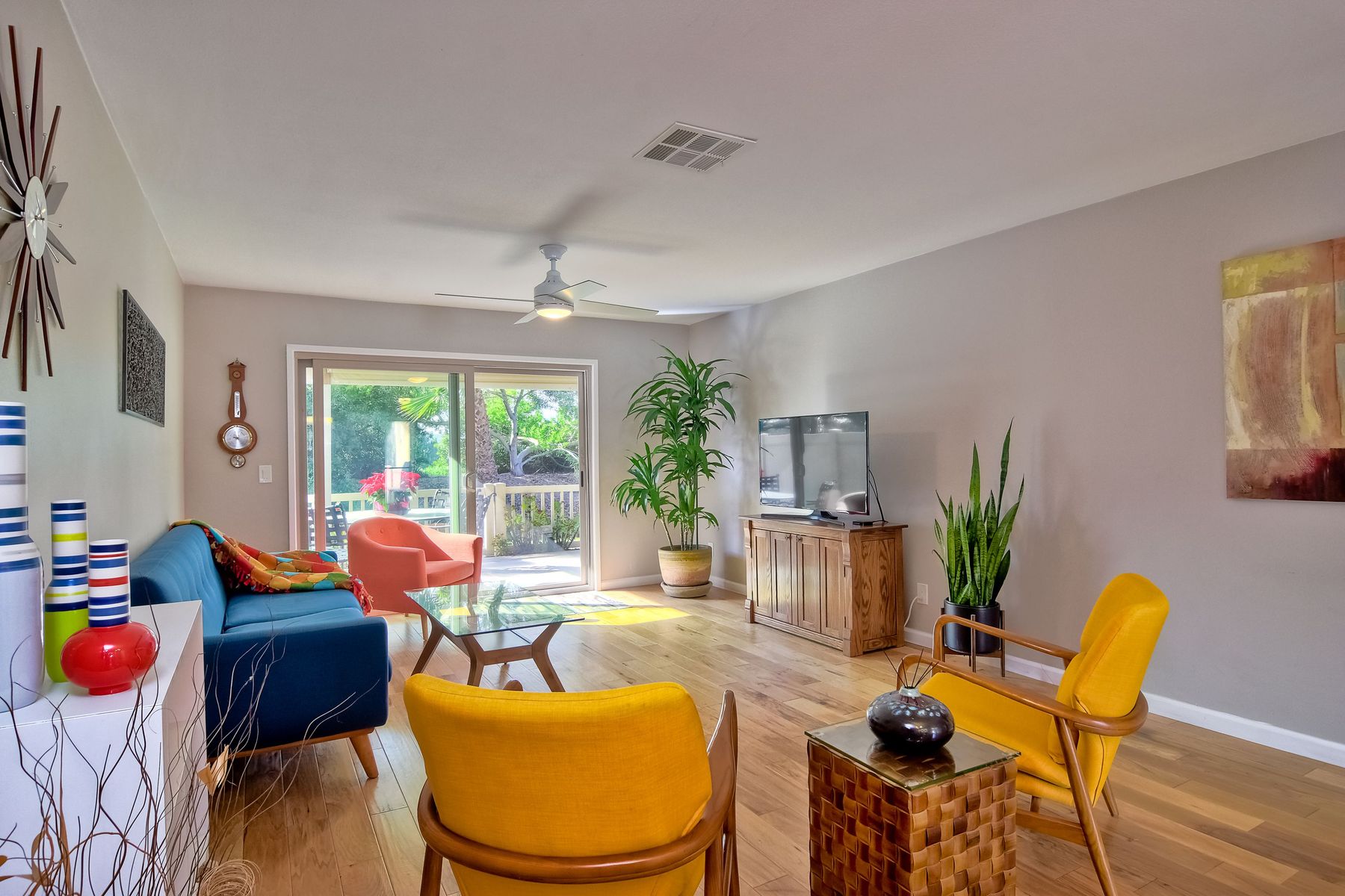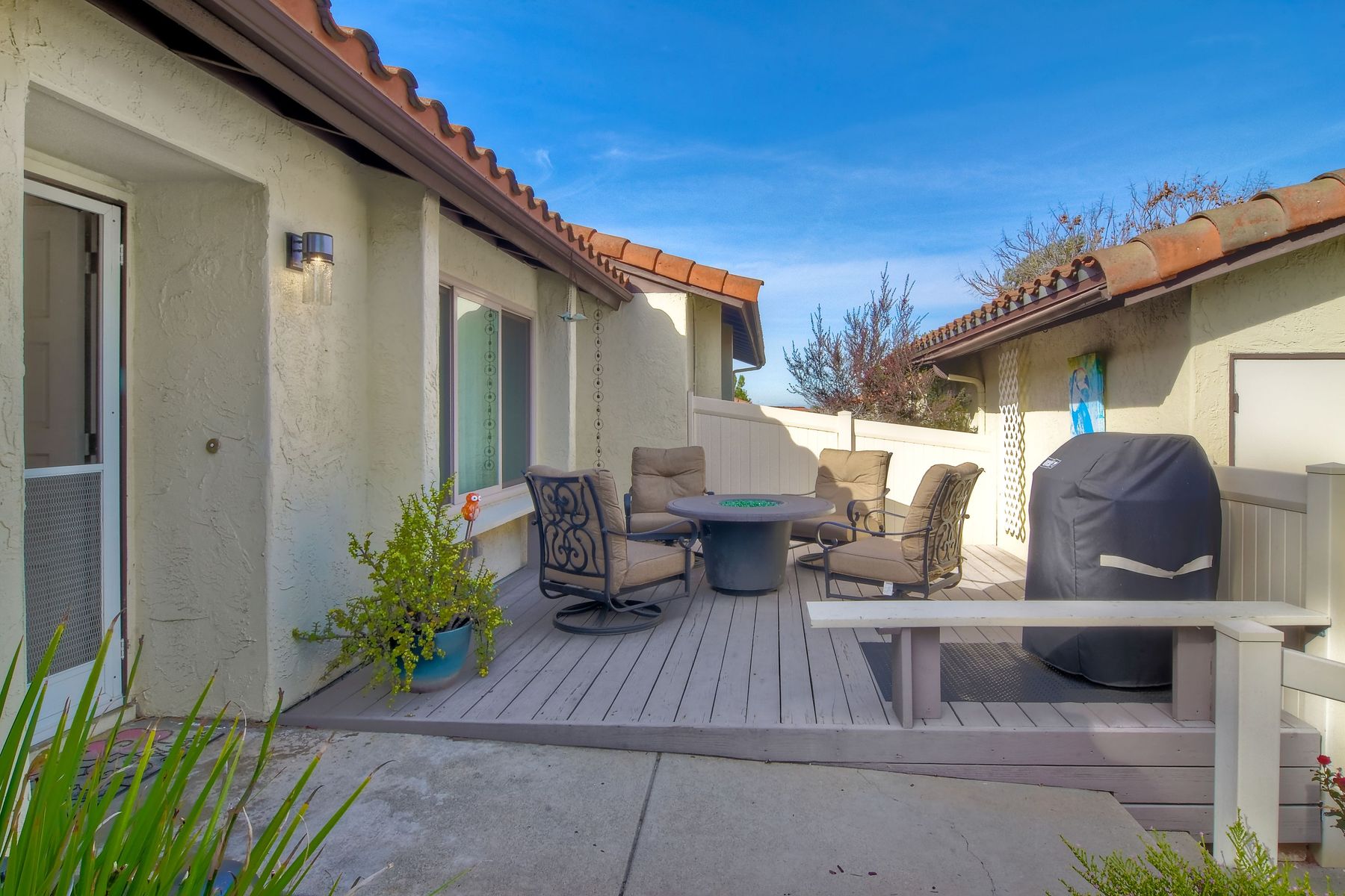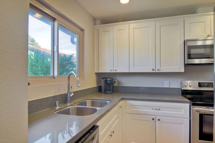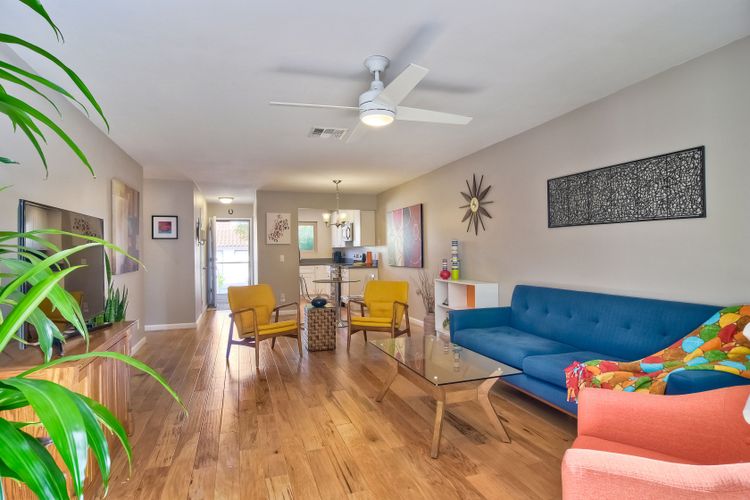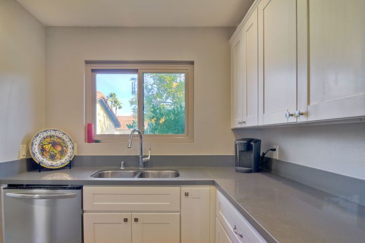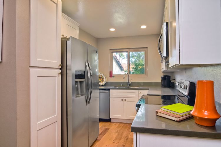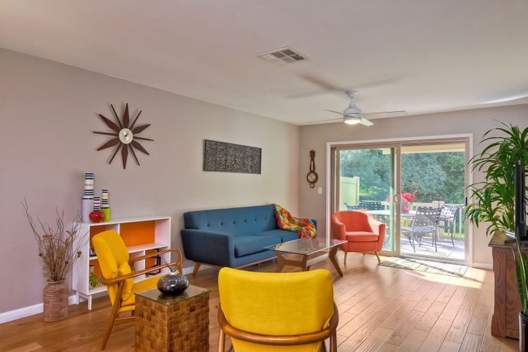 High Country Villas (55+ community) at its best! This stunning turnkey single story home awaits the fussiest Buyer. Clean lines, neutral colors, natural lighting - pride of ownership throughout! Maple engineered wood floors in all living areas & tile in bathrooms. Completely updated kitchen and bathrooms - quartz counters, modern cabinetry - classic and clean. Dual pane windows and doors throughout, complimented by window treatments (room darkening in BR's). Front raised porch/balcony is the perfect place to entertain company and connect with neighbors out walking their pups! Spacious back patio fabulous for private entertaining or just unwinding at the end of a long day. Literally - move in, unpack and start enjoying the Encinitas lifestyle! A plethora of shops and restaurants within a 3-square mile radius, an easy drive to the coast, downtown Encinitas and moments from Cardiff! Never heard of High Country Villa's? Well - you don't know what you are missing - 9-hole golf course, shuffleboard, community center, pool and more! Your HOA dues of $300/mo actually go to work for you and golf is only an extra $75/mo additional. Run, don't walk ~ to this pristinely maintained home!!