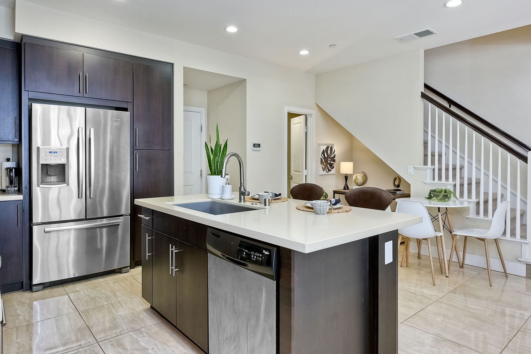 Welcome to 1758 Fairlead Avenue in Carlsbad. This stunning townhome is located in the gated community of Voscana. This property was built in 2013 and offers an open floor plan with modern amenities such as quartz countertops and stainless steel appliances. The downstairs features a half bath, eat in kitchen, glass fireplace and nook that is perfect for a work station. Upstairs there is ample storage, side by side washer and dryer and 3 bedrooms with plenty of natural light. The large master bedroom features an upgraded en-suite bathroom and large walk-in closet. There is an attached 2 car garage and tankless water heater. This home is conveniently located walking distance to the beautiful Aviara community park, top rated schools (dual zoned), shopping and dining. The gated Voscana community offers a playground, BBQ picnic area with bocce ball. It's a quick drive to the beach & 5 freeway. This home and location offers it all!