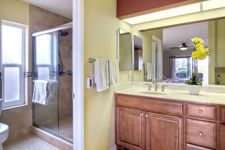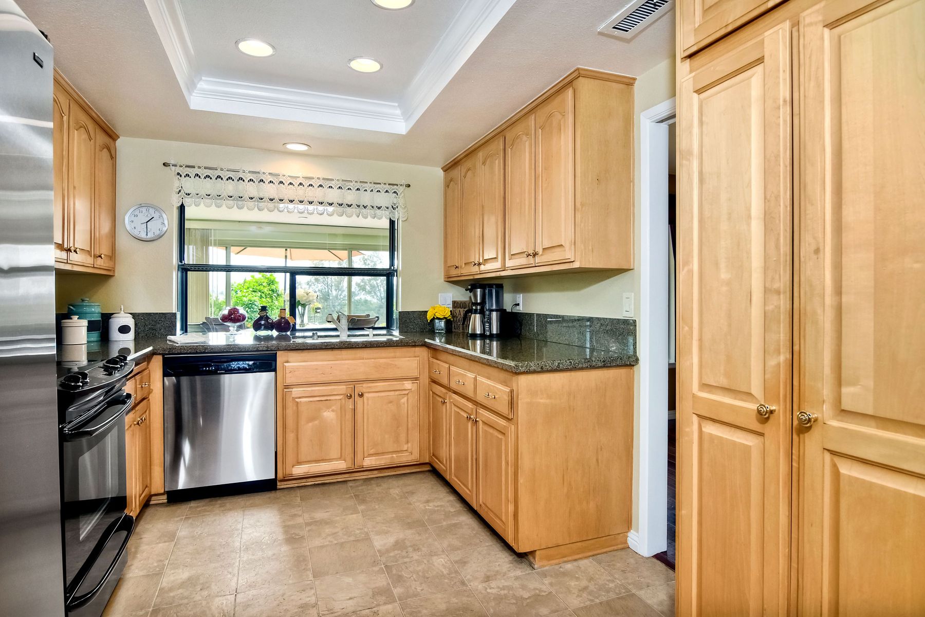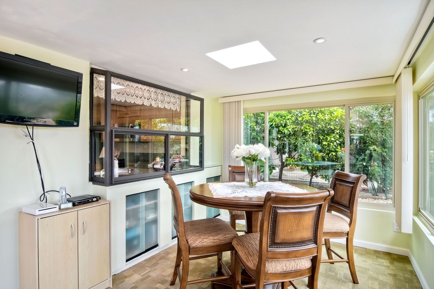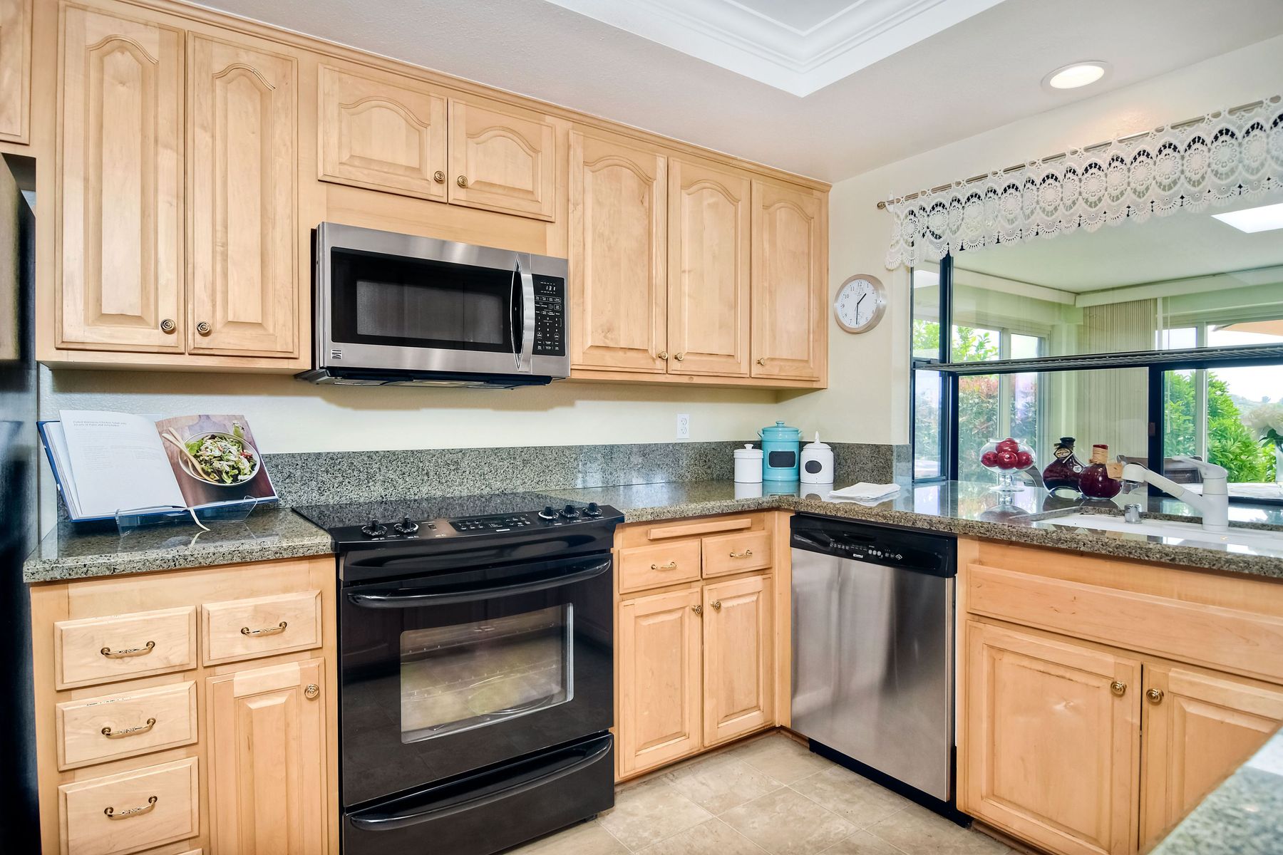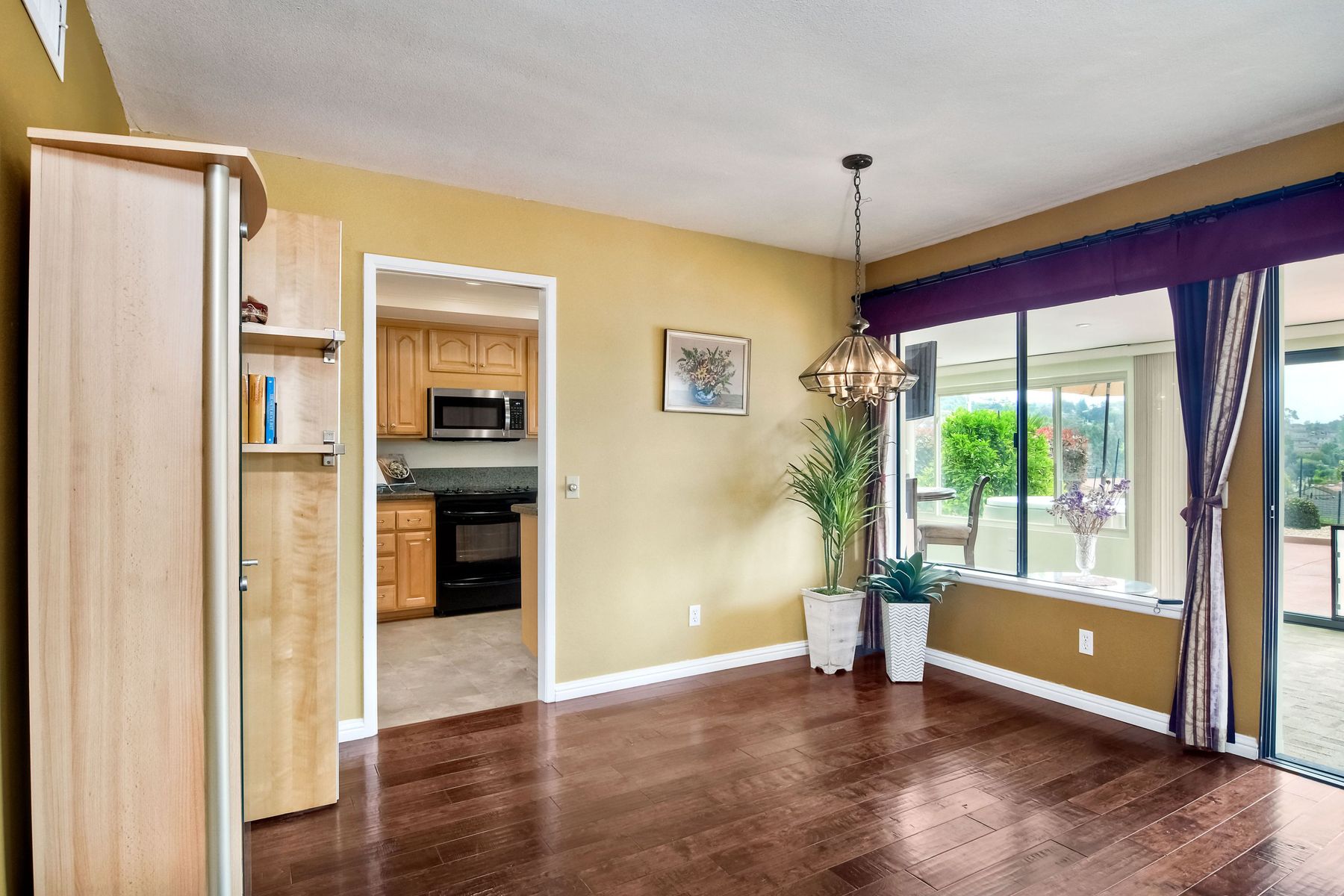 This lovely home in 55+ Oaks North Estates welcomes you with a perfectly cared for, low maintenance front yard. Fully owned Solar transfers to buyer. Walk through the tiled entry and your eye is drawn through the house to the expansive view. To your left is the spacious second bedroom with double windows, engineered wood flooring, decorative ceiling fan and a walk in closet. The adjacent full bath has a beautifully tiled walk in shower and soothing textured wall paper. See Supplement..... Moving into the living room/dining room area, the wood flooring combined with warm colors, a cozy fireplace on a mirrored wall, sliding glass door and multiple windows create an inviting area for everyday life or entertaining. The dining room flows into the updated kitchen with granite countertops, light wood cabinets, stainless steel appliances, recessed lights in the coffered ceiling, tile floors and a large garden window that brings the outside in. The attached family room includes a huge window, cooling fan and the easy to maintain wood flooring. The master suite offers a wonderful bathroom with custom tile work in the large walk in shower, rich wood cabinets, double vanity, heated tile floors on a timer, heated towel rack, walk in closet and extra storage. The spacious bedroom also has a cooling fan and a sliding glass door to the covered patio. Fully owned solar cover sellers electric bill. A light filled all seasons sun room runs almost the whole length of the house. Perfect for multiple functions with a skylight, neutral indoor/outdoor carpeting, multiple windows and two sliding glass doors - one to the backyard and one to the covered patio area. The backyard is well designed with a stamped concrete patio, citrus trees, covered conversation area, garden boxes, mature landscaping and of course - the view! Fully paid solar, no electric bill! Walk to Oaks North Executive Golf Course and Oaks North Community center with pool and many amenities. Close to parks, shopping, restaurants and easy freeway access.