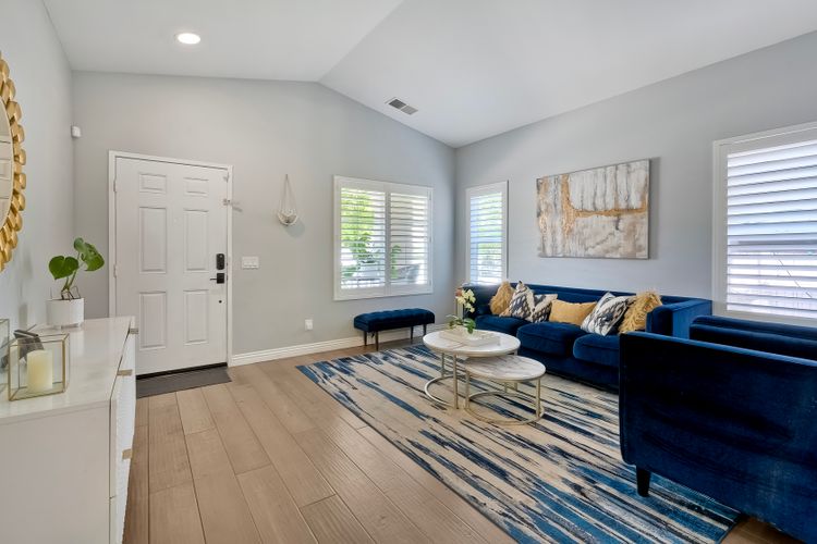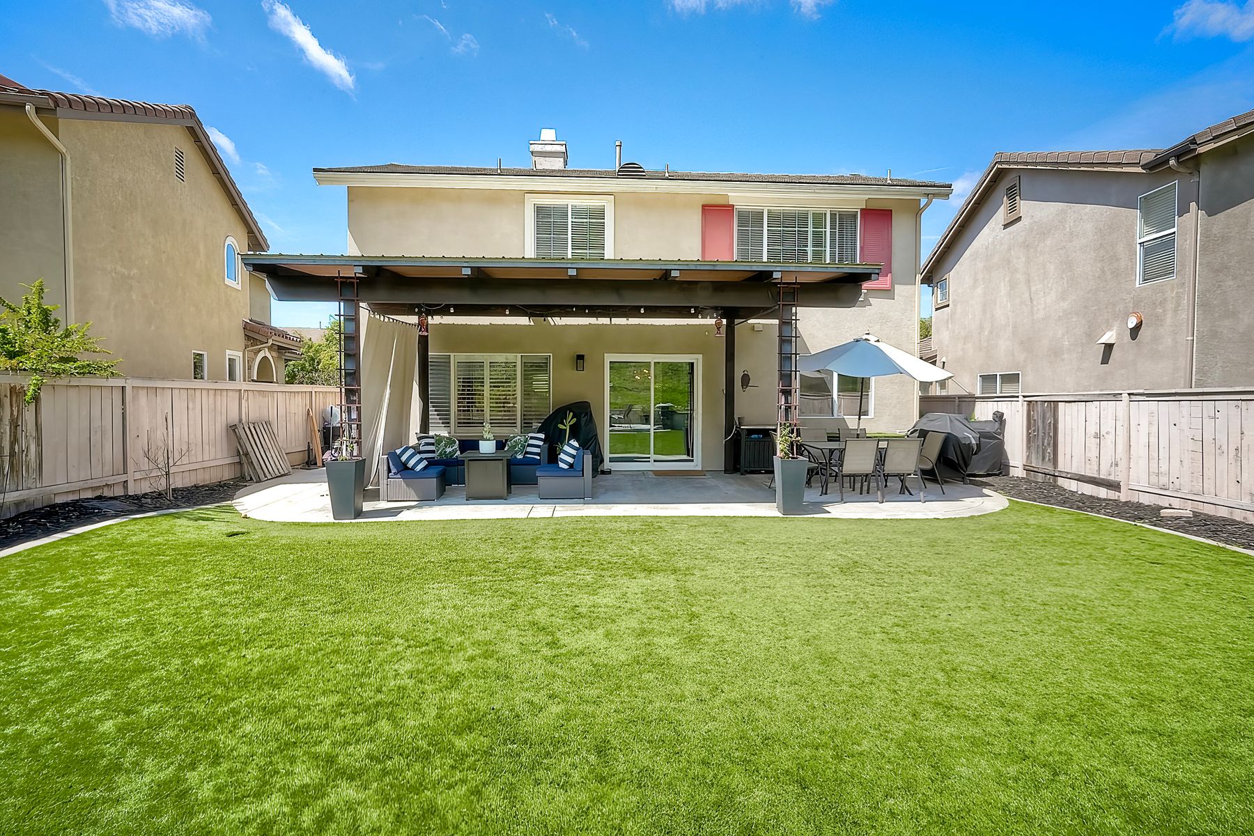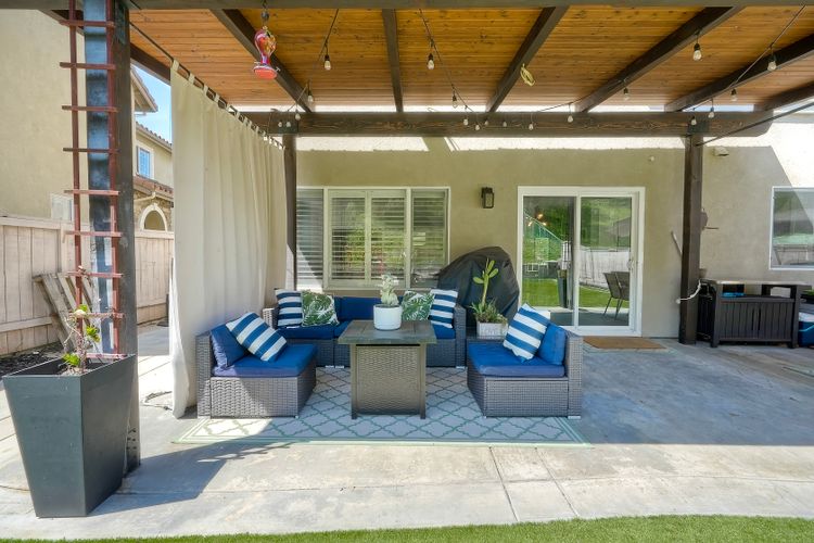 This gorgeous home in the highly desirable gated community of Moncado Springs is situated on the best street in this quiet neighborhood. This open concept floor plan features 3 bedrooms and an office upstairs with central AC throughout. The kitchen, living room, dining room and fireplace have been renovated with new flooring, tile, high end appliances and quartz countertops. The spacious, well maintained backyard is an entertainer's dream with pergola and fire pit. This home boasts one of the largest back yards of the entire community. Moncado Springs has a fabulous pool, spa, clubhouse, playground and park. 15 minutes to the beach and easy access to the freeway and amenities.