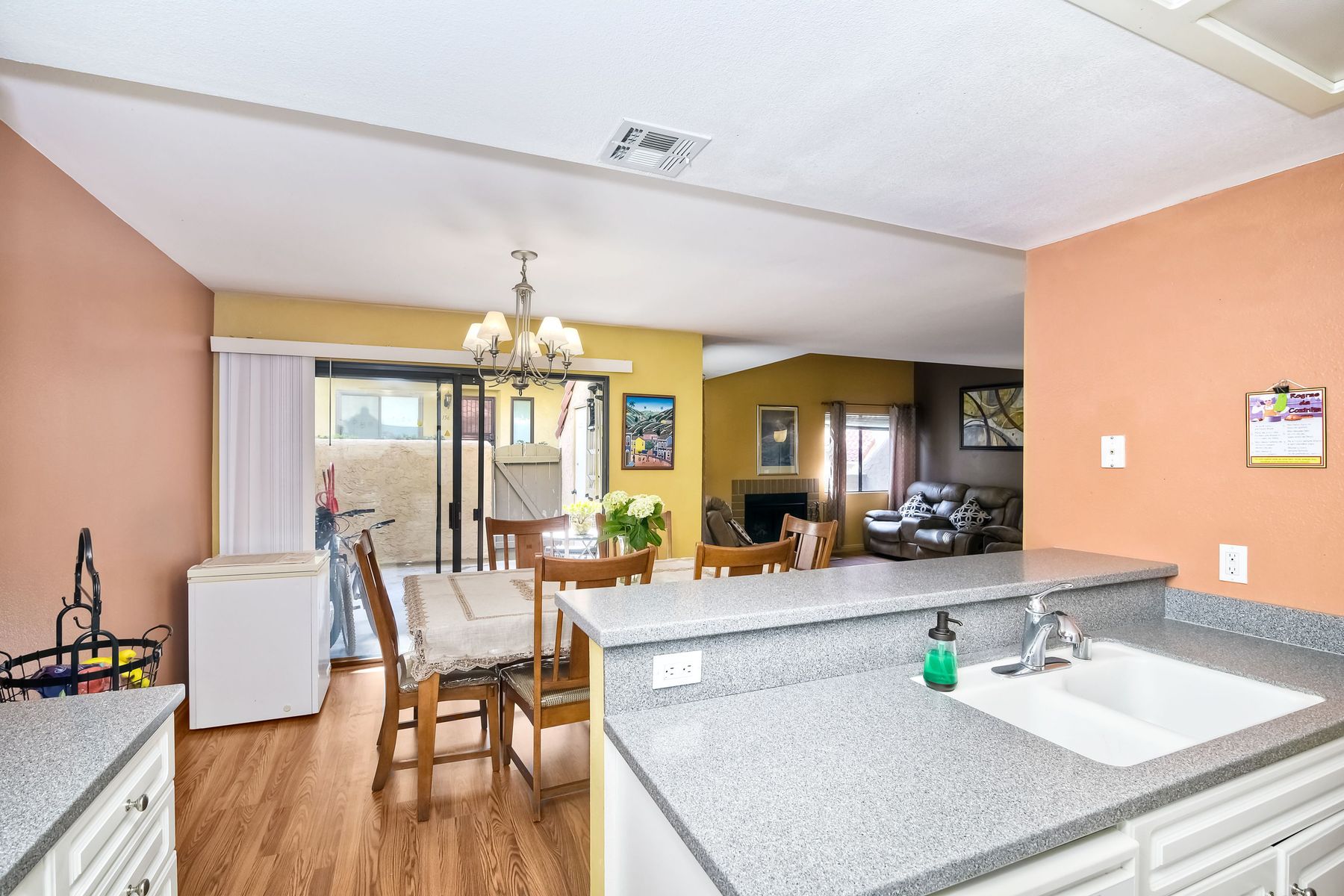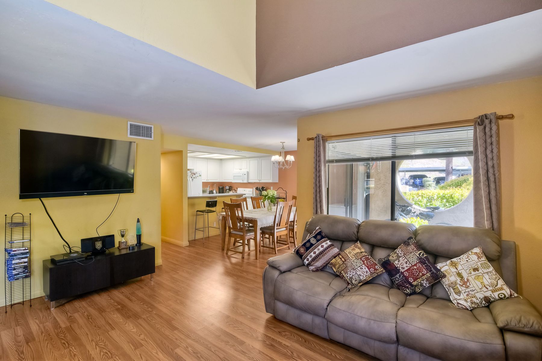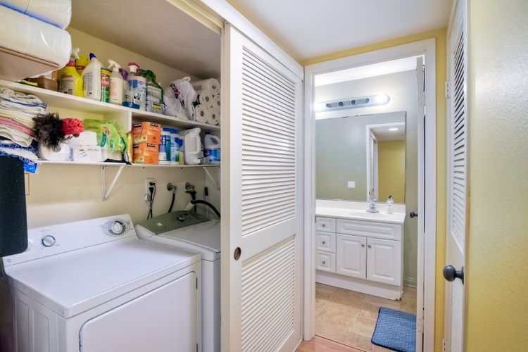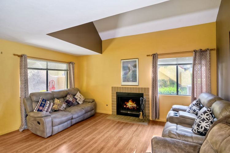Large 3 bedroom2 bathroom in Bernardo Pines. Quiet location in back of complex! Enjoy high ceilings in living room, fireplace, large kitchen, dining room, large patio with storage, 3 bedrooms, laundry closet with full size washer, dryer, and AC. Poway Unified school district. Near shopping, schools, parks, and freeways. Complex includes - 2 pools, 2 playgrounds, tennis courts, clubhouse and visitor parking. One covered parking space #364 and one open parking space #320 HOA includes water, sewer, exterior maintenance, landscaping, trash