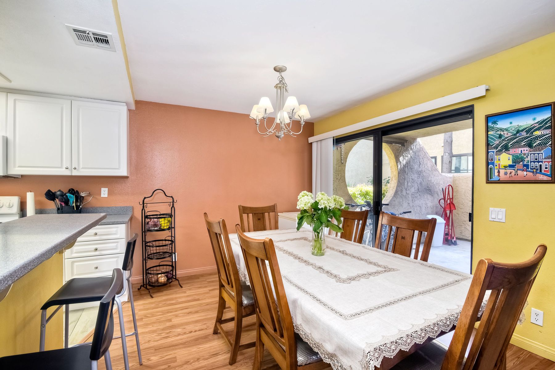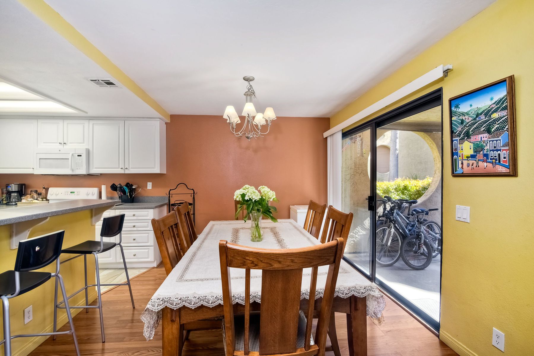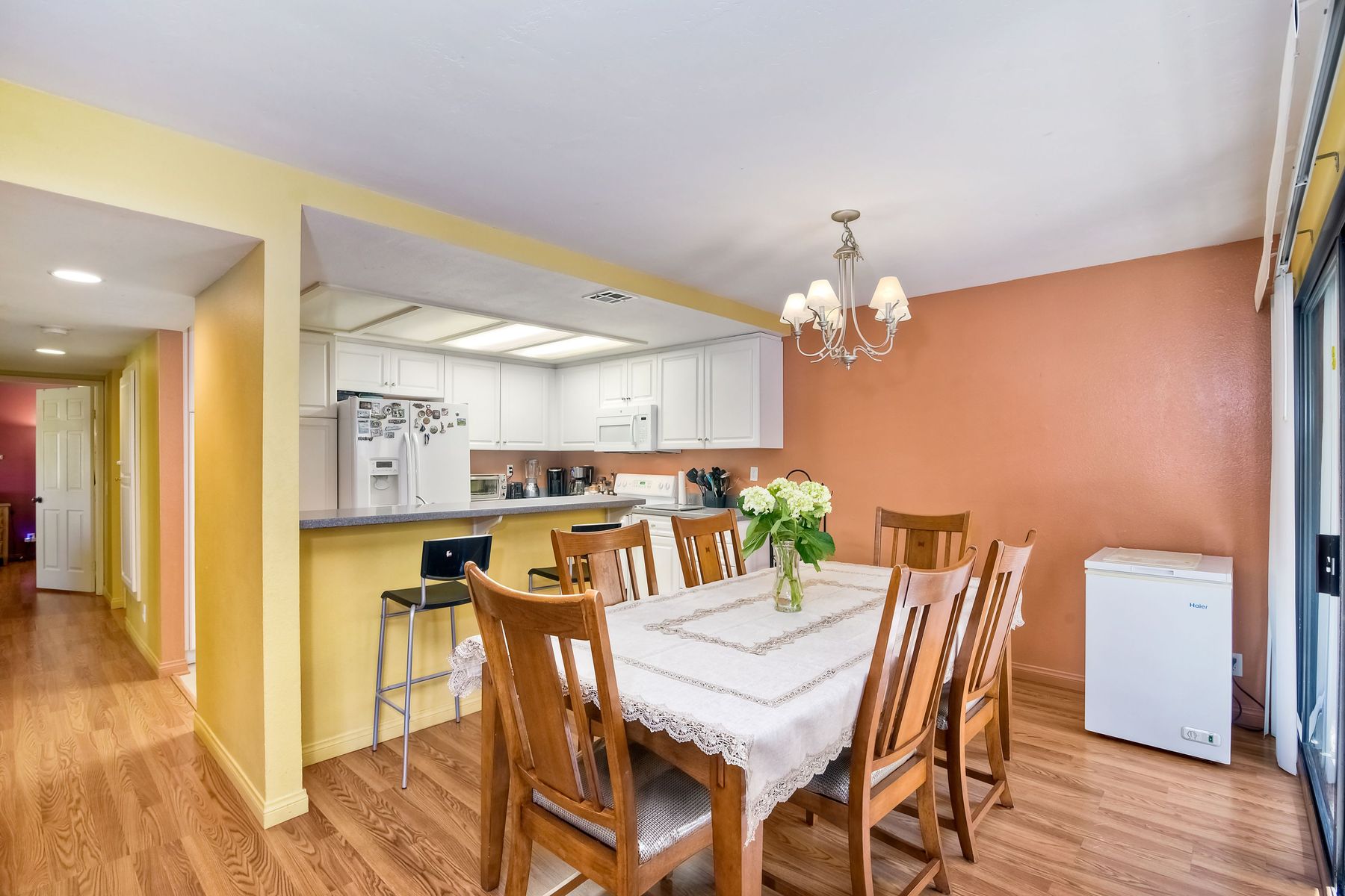 Large 3 bedroom2 bathroom in Bernardo Pines. Quiet location in back of complex! Enjoy high ceilings in living room, fireplace, large kitchen, dining room, large patio with storage, 3 bedrooms, laundry closet with full size washer, dryer, and AC. Poway Unified school district. Near shopping, schools, parks, and freeways. Complex includes - 2 pools, 2 playgrounds, tennis courts, clubhouse and visitor parking. One covered parking space #364 and one open parking space #320 HOA includes water, sewer, exterior maintenance, landscaping, trash