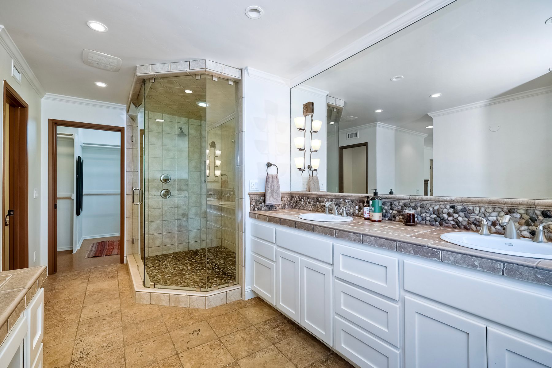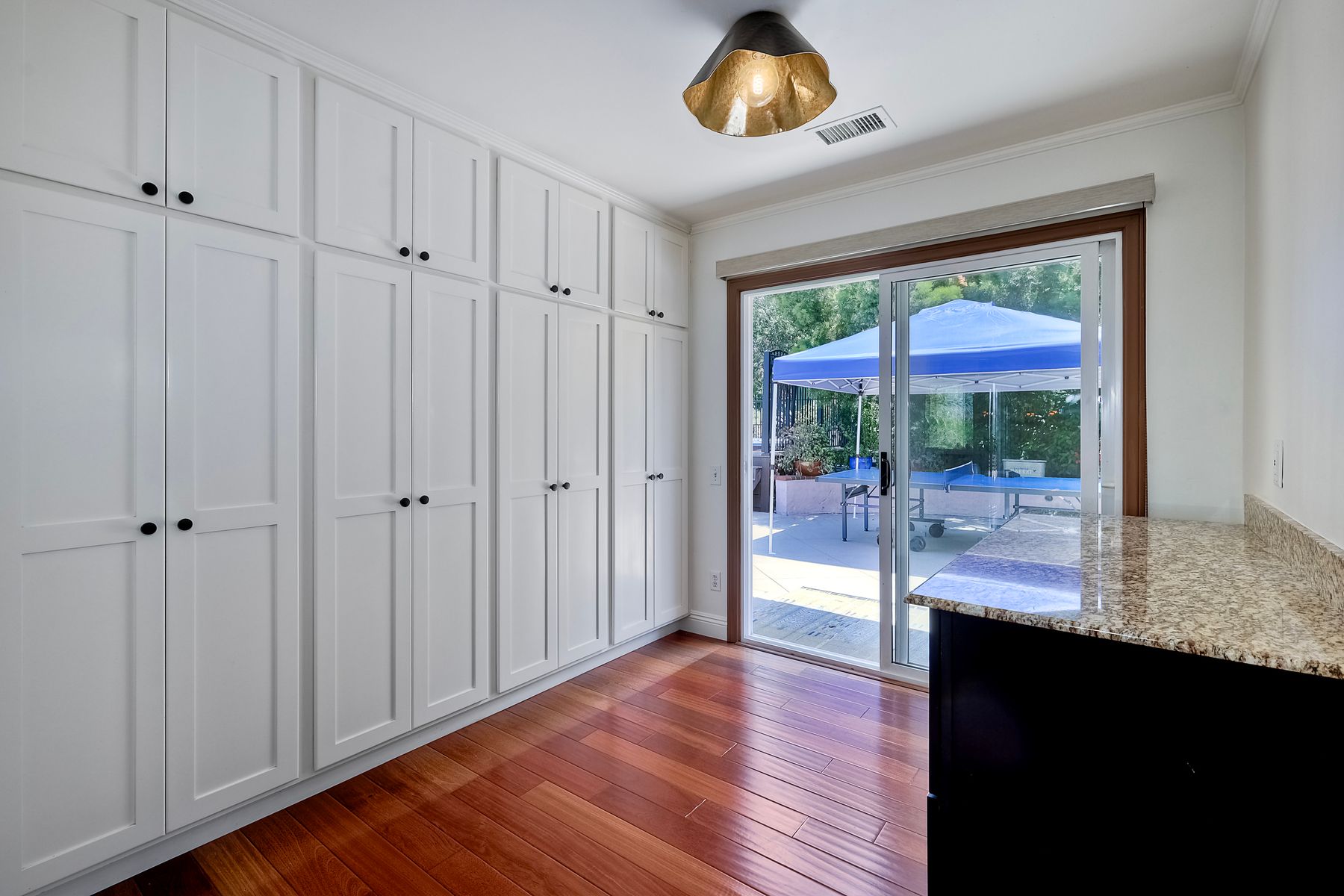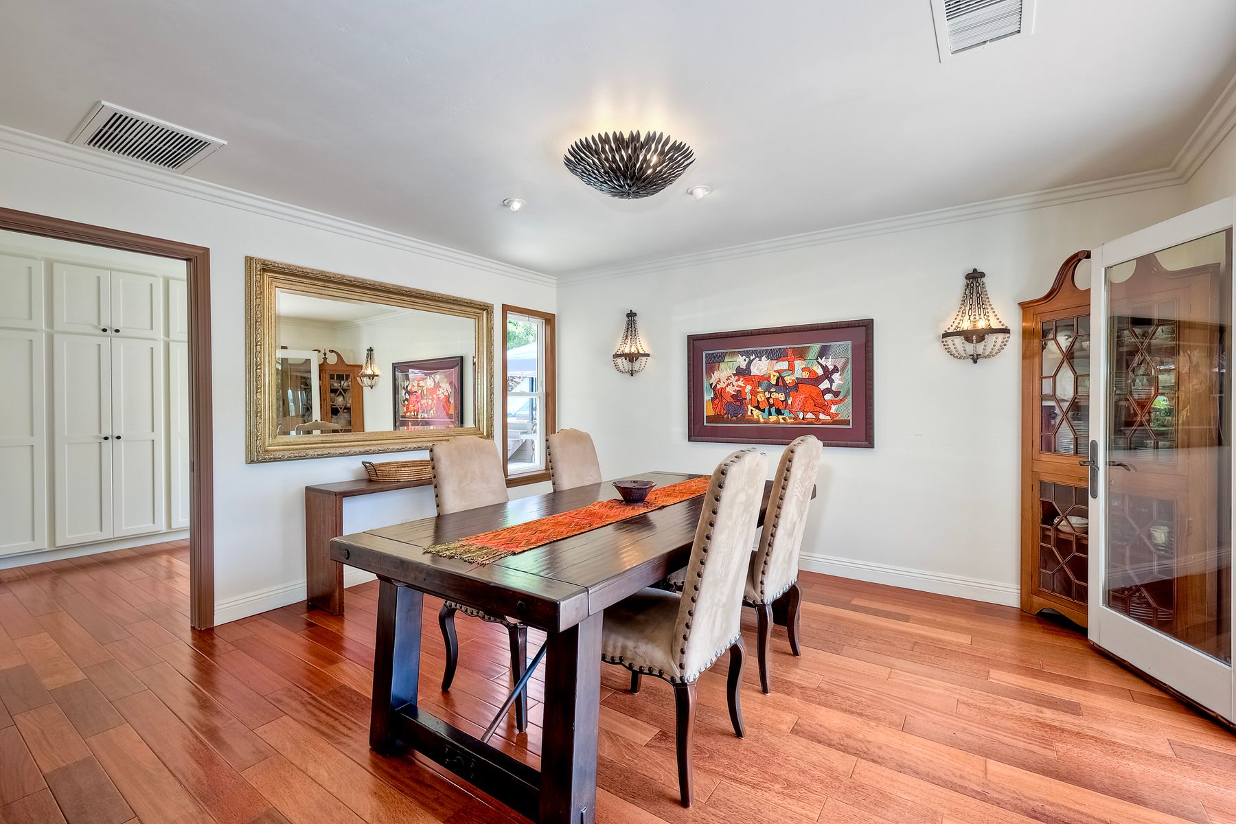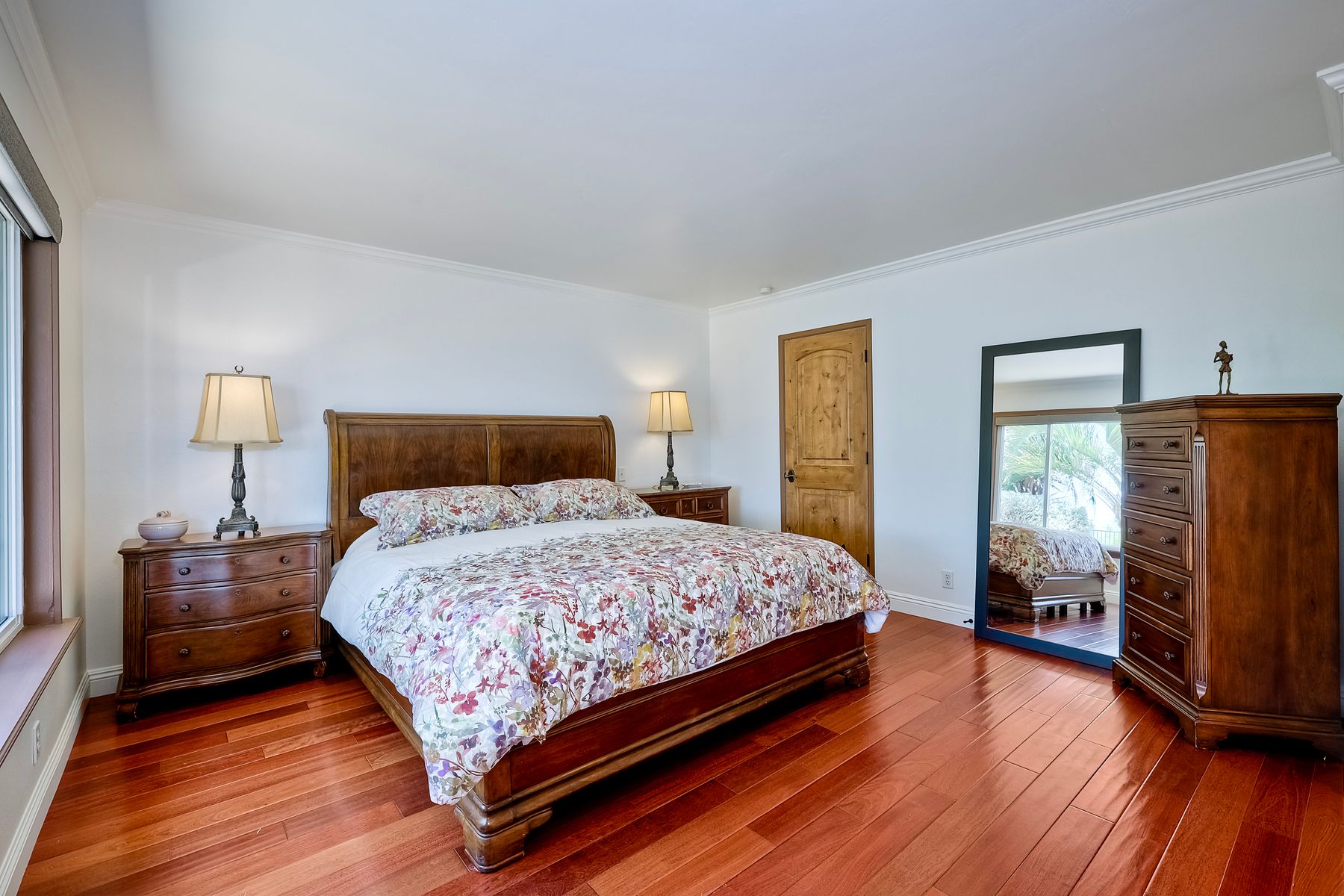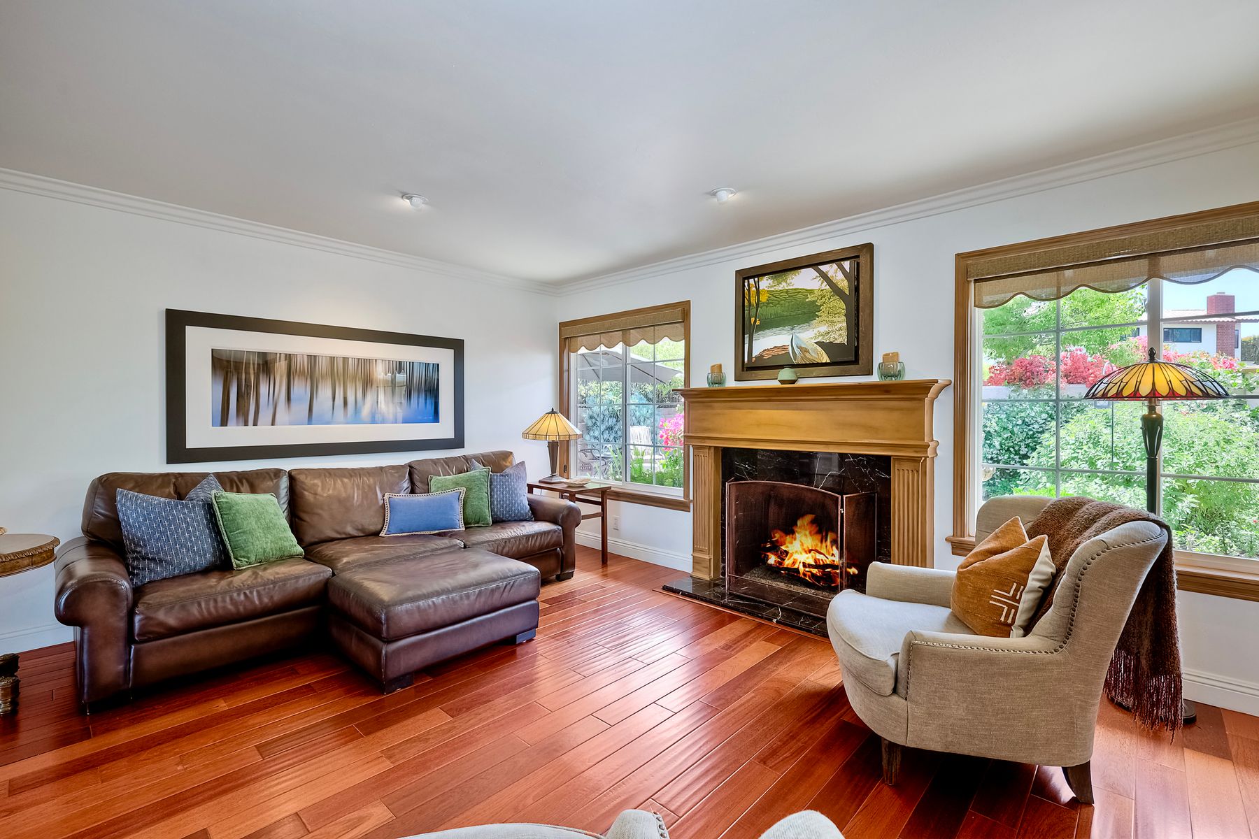 This spectacular 15th Fairway home sits on an elevated .41-acre lot with awesome views! Gorgeous 4-bedroom home w/Brazilian wood flooring throughout. Enter through knotty alder wood double doors, into open living room, dining room and family room. The kitchen overlooks the lush landscaping & golf course views. The front patio has a wood burning or gas logs fireplace, water fountain, custom kitchen BBQ area plus 2 additional patios including a saltwater pool with custom built Timber Tech Composite decking & separate spa! Newly painted throughout the interior, knotty alder wood interior doors, old world texturing on ceilings and walls & separate laundry room. The primary bedroom enjoys a customized oversized shower & large, picturesque view window overlooking the course & distant mountains. Seller owned solar system. Mature drought resistant landscaping and Electrostatic whole house air cleaner. Located in the Highly Rated Poway Unified School District. No Monthly HOA & No Mello Roos.
