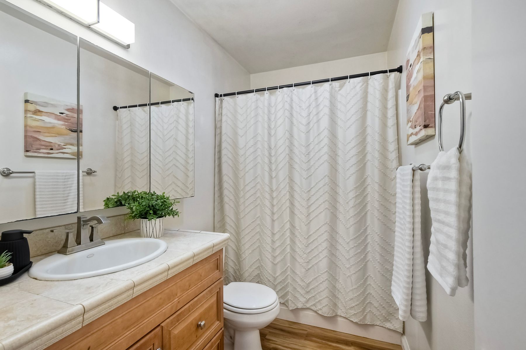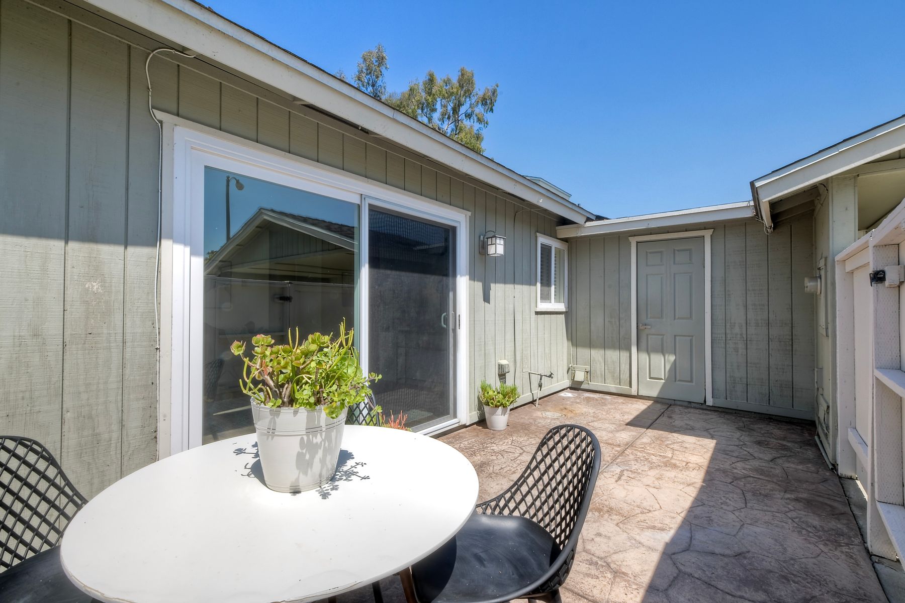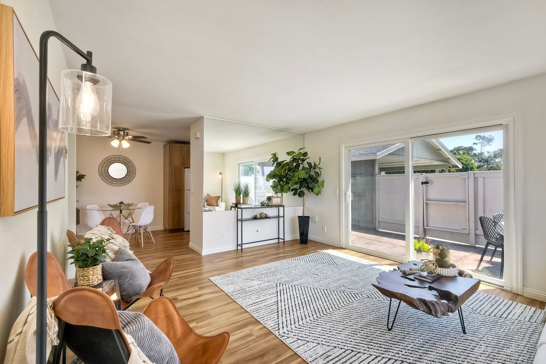 Tucked away on a serene cul-de-sac in the highly sought-after Village Park community, this rare single-story end-unit condo delivers the perfect blend of comfort, privacy, and laid-back coastal living. With 3 bedrooms/2 full baths and only one shared wall, no neighbors above, and sweeping open-space views, it’s a true hidden gem. Inside, natural light pours into a spacious floor plan featuring a primary suite with full bath, two versatile bedrooms ideal for kids, guests, an office, or nursery, and a second full bath. Enjoy two private patios/courtyards — perfect for morning coffee, alfresco dining, gardening or a little California sunshine. The fresh, neutral design makes it easy to bring your own style to life. Village Park offers low HOA fees, resort-style amenities: a sparkling pool, tennis/pickleball courts, playground, and clubhouse — all just minutes from top-rated schools, local boutiques, popular dining spots and only three miles from the world-famous beaches of Encinitas. Bonus: The carport can be converted into a one-car garage with HOA approval, adding flexibility and value. Whether you’re a first-time buyer, growing family, downsizing, or simply ready to embrace the relaxed SoCal lifestyle, this home is ready to welcome you.