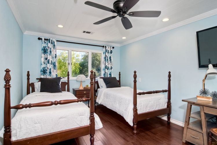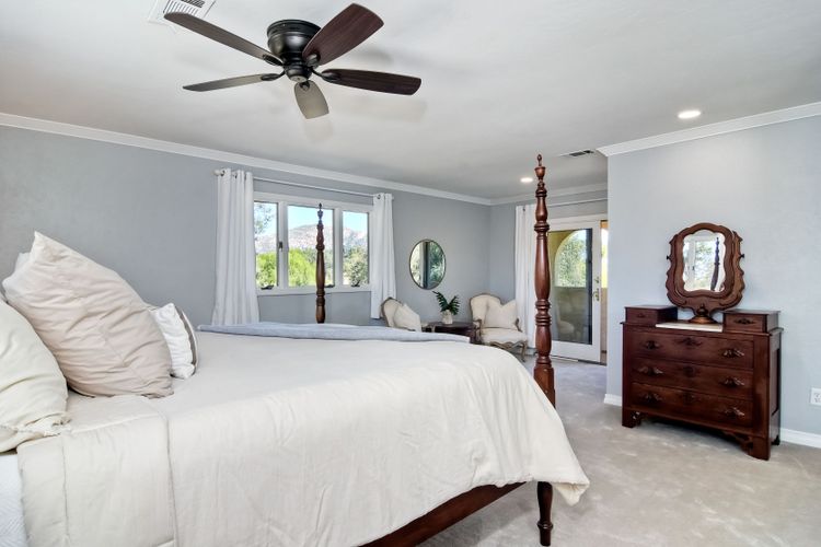 Nestled off the main road, on a tree-lined PAVED road, bordered by a deer farm & horse property, your retreat awaits you! Interior features - 480 sf bonus room, all baths recently remodeled, new carpet down, crown molding, large laundry room, bamboo flooring, spacious Master w/ retreat & balcony. Exterior features – 2.77 acres, ample level space for an equestrian riding area, paddock, pool, granny flat AND garage. Included is a "barn" with electrical, storage shed, permitted storage container, chxn coup, wood storage & a well for irrigation. An oversized living room warmly greets you with a wood burning stove. Attention to detail in each room-upstairs built-in nook w/stain-glass window, bamboo flooring & built-in armoire. Outside, relax under the lovely oak trees on the knoll or enjoy a game of horse shoes. The barn is perfect for your equestrian needs, complete with electrical & ideal for RV/toy parking. Hellhole Canyon County Preserve with its amazing equestrian trails is nearby. This property is full of untapped potential- A MUST SEE to fully appreciate!