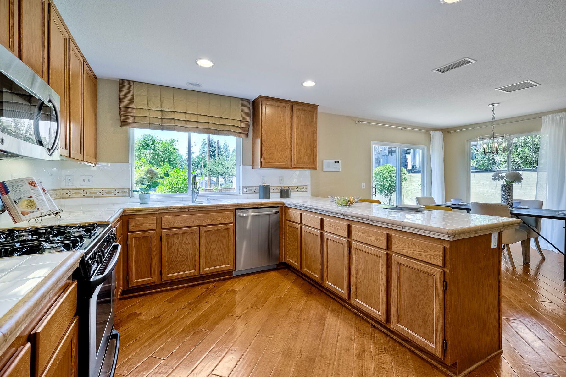 Highly desired home in Arbor Village located on a Cul-de-Sac. Meticulously maintained. The property is an elevated corner lot. Light and open yet private location with a newly landscaped large back yard and secluded gated entryway. Former model home. Many upgrades. Beautiful Hardwood floors. Large pantry and many counters for storage. Dining room opens to kitchen and living room with fireplace. Primary suite with generous closet, double sinks and separate commode. The optional 4th bedroom was built as a family room with built in bookcases and cabinets. Family Room could be converted to a 4th Bedroom. Newly Remolded downstairs bathroom. Oversize 2 car garage with immaculate epoxy floors and more storage. Home has one of the few full-size driveways. Quiet private park serves only these homes. Ideal location close to stores, Kit Karson Park, Westfield Mall, Wineries and Great Schools. No Mello Roos.