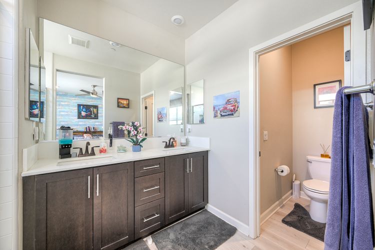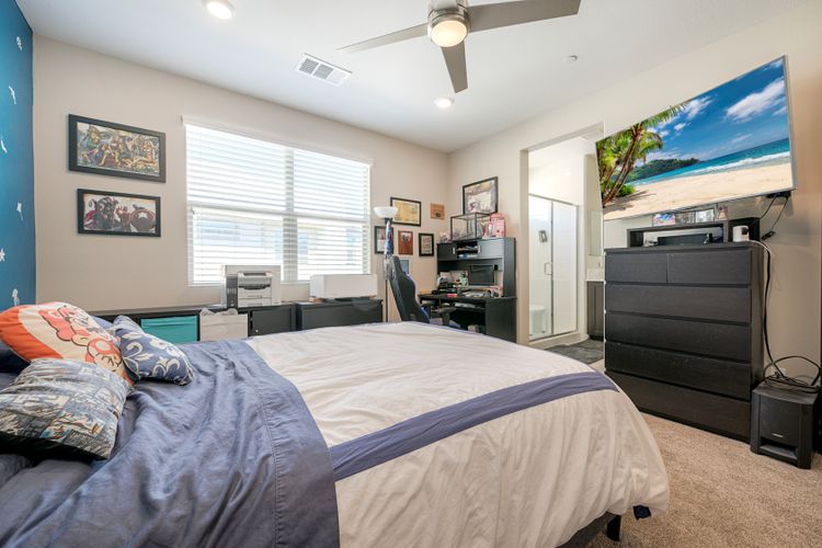 Assumable VA Loan 4.125% available to qualified VA buyers for a refined residence where comfort meets sophistication. The private primary suite feels like a retreat, complete with his-and-hers walk-in closets and a spa-inspired bath. Every detail has been curated for modern living—solar panels for efficiency, split-zone climate control, built-in speaker wiring, fire sprinklers, upgraded flooring, and a large pantry. The home comes turnkey with Samsung appliances, washer/dryer, a smart lock, smart switches, Eufy security, and a MyQ garage system. Life here is elevated by resort-style amenities. Six thoughtfully designed parks—featuring a children’s splash pad, tennis and basketball courts, BBQ pavilions, and a community garden—invite leisure at every age. The pool with outdoor kitchens creates the perfect backdrop for sun-soaked weekends and evening gatherings. Everyday indulgence is close at hand. Stroll to nearby sushi bars, wine bars, and artisanal cafés, or enjoy elevated dining at neighborhood favorites such as Farmer’s Table or Acqua E Farina. Retail therapy is effortless with Costco, HomeGoods, and boutique shopping just minutes away. For families, acclaimed schools—Wolf Canyon Elementary, Eastlake Middle, and Olympian High—ensure excellence in education, while Sharp Chula Vista Medical Center and Scripps Coastal Eastlake offer world-class care moments from your door. This is more than a home. It is a lifestyle designed for those who value sophistication, community, and the ease of having it all.