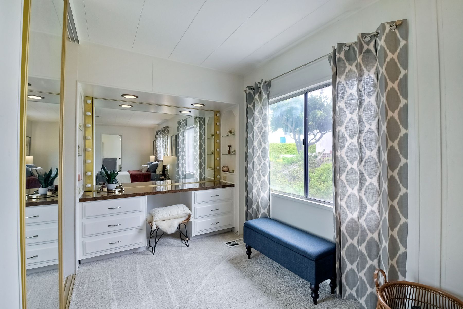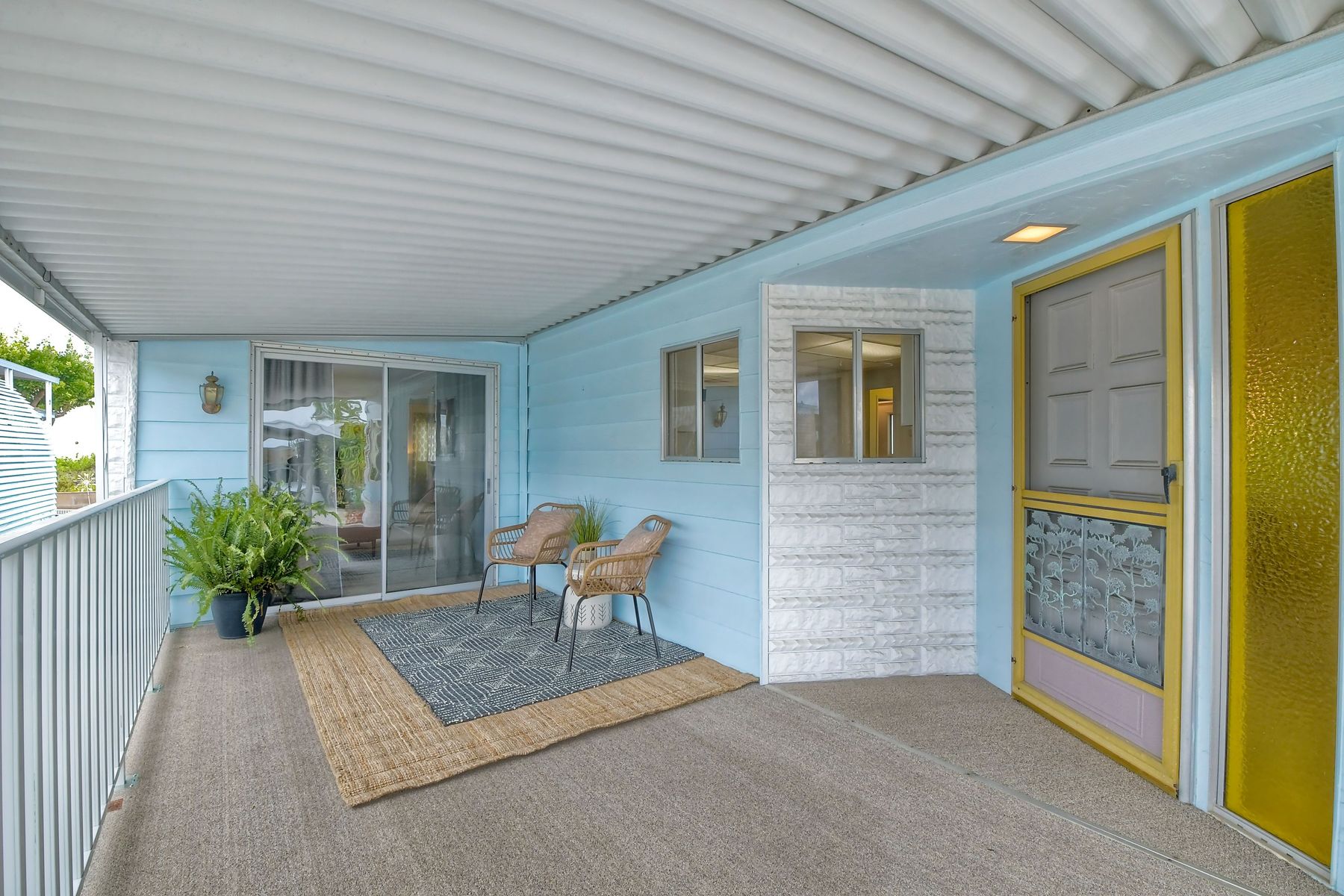 Home is waiting for you on top of this beautiful hill of palm trees and ocean breezes. Find your place in the sun in this 2 bedroom, 2 bathroom 2040 square foot home. The master retreat has a large walk in closet, vanity, soaking tub and plenty of space to sit and enjoy the peace and quiet of Palomar Estates West. Just upgraded with paint throughout, brand new carpeting and vinyl plank flooring, this is turnkey, ready for immediate move in. Guest bedroom has en suite bath and quick access to laundry room and door to covered parking. Rumor has it the neighbors are absolutely wonderful and you can enjoy the outdoors from your large, sunny porch. This home faces west, where you can experience the ocean breezes and sunsets each night. Palomar Estates West is the senior park (55 and older) that has it all! Pool, spa, dog park, tennis courts, card & meeting rooms, club house and many more fun social activities. Plus, space rent is very low ($617 monthly). Close to Target, Starbucks, Tap House, gas station and more. Trader Joe's is right down the road and the ocean is a quick drive due west. Come find what you've been looking for!