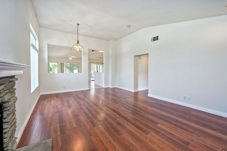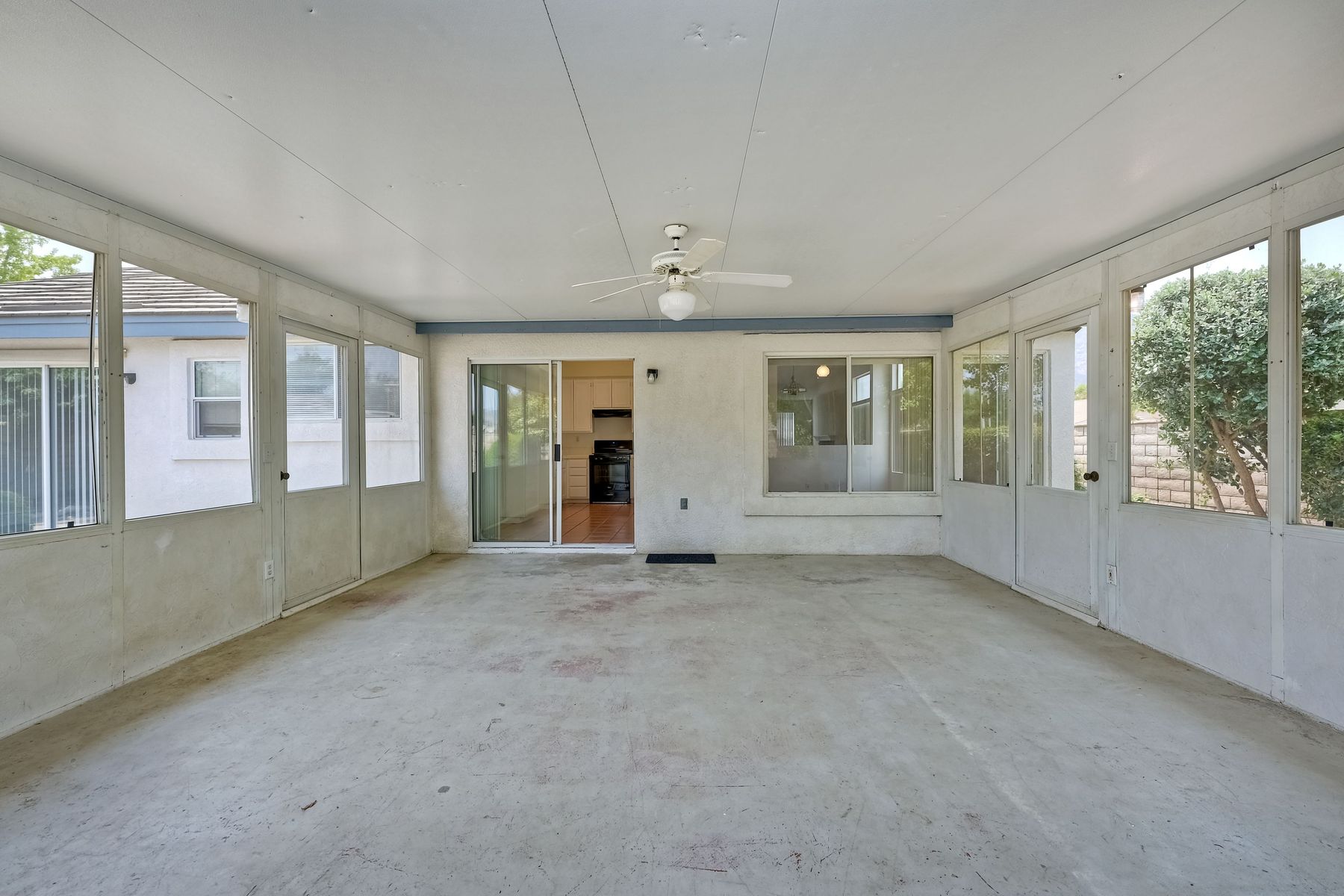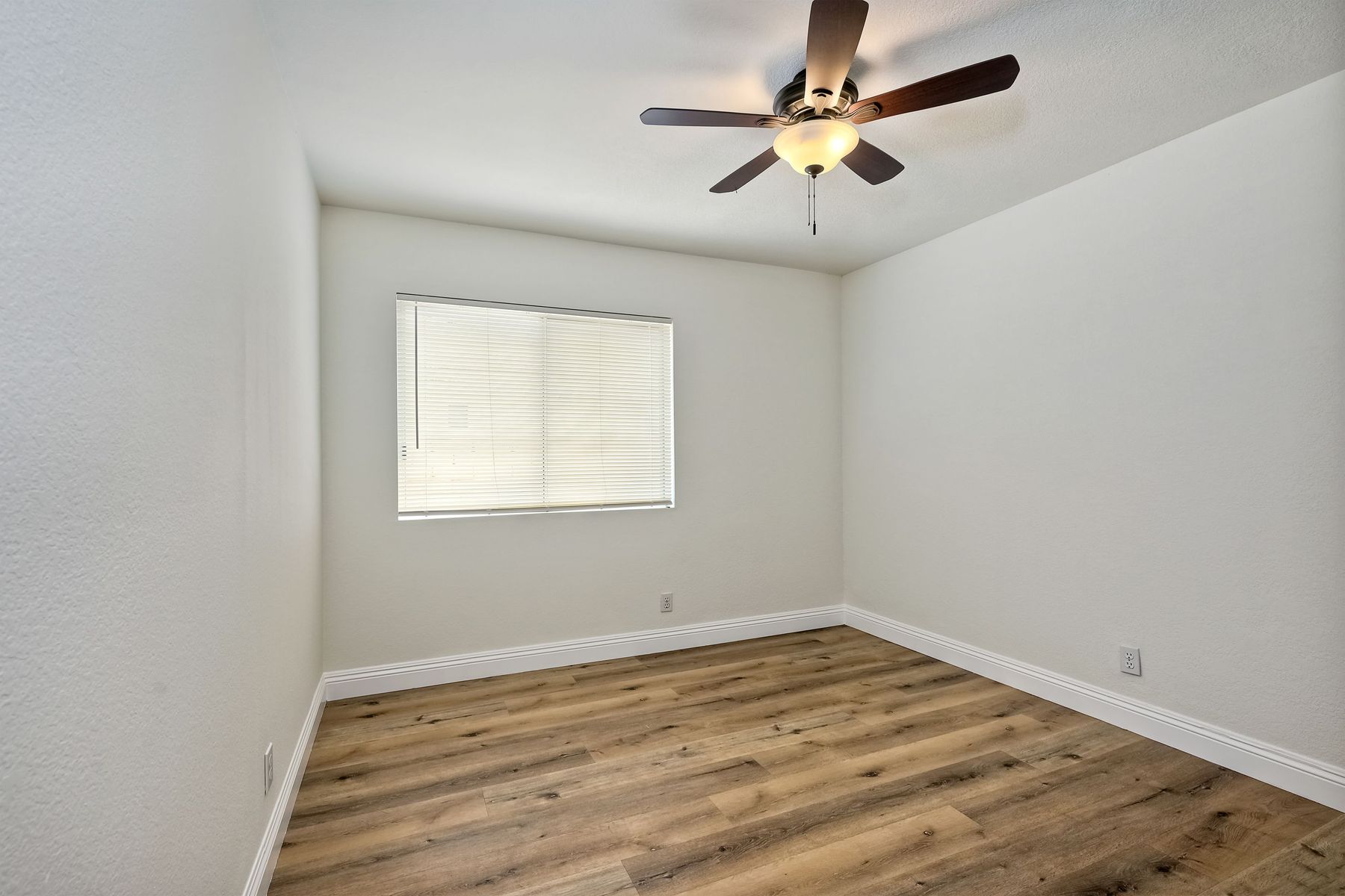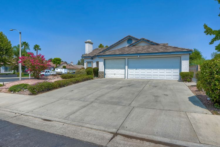 SINGLE STORY! CORNER LOT ON A CUL DE SAC! 3 CAR GARAGE! Welcome to your spacious home that offers 4 good sized bedrooms and 2 bathrooms . The primary bedroom boasts a large walk-in closet and a sliding door to the back yard. Enjoy all your pool sized back yard has to offer...mature fruit trees, outdoor shed, and a fully enclosed large sunroom with a ceiling fan. This home is perfect for entertaining. Very centrally located, near shops, dinning, and the lake. NEW APPLIANCES and ceiling fans in every bedroom. Don't miss out on this one.