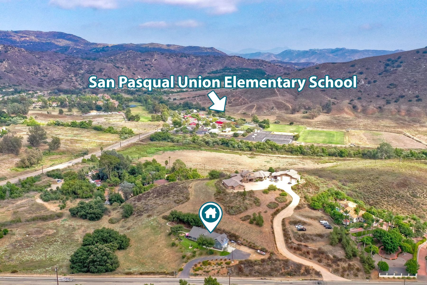 Welcome to this unique custom-built home in San Pasqual Valley that sits on 2.31 acres with amazing views. Nature preserve like setting. Indoor/outdoor lifestyle with private views. Inside you'll find newer cabinets, center island, stainless steel appliances, tumbled marble countertops, porcelain tiled floors, cherry stained doors & trim, Pella windows. Master bath has slipper tub and pedestal sinks. Welcoming eat-in kitchen with space for a large table and door to the backyard. Inviting family room with wood burning stove; secluded, downstairs main bedroom and en-suite bath with walk-in closet. Down the long hallway you will find two more bedrooms. Upstairs is a large loft area which is currently being used as the 4th bedroom. The lush landscaping includes beautiful Crape Myrtles. Plenty of space for an ADU. The Attic has plenty of room for storage. Close to Highland Valley Wineries, Orfilia, Wesfield Shopping Mall and The Safari Park. Minutes to the 15 Freeway. San Pasqual Union Elementary School K-8 is a very short distance.