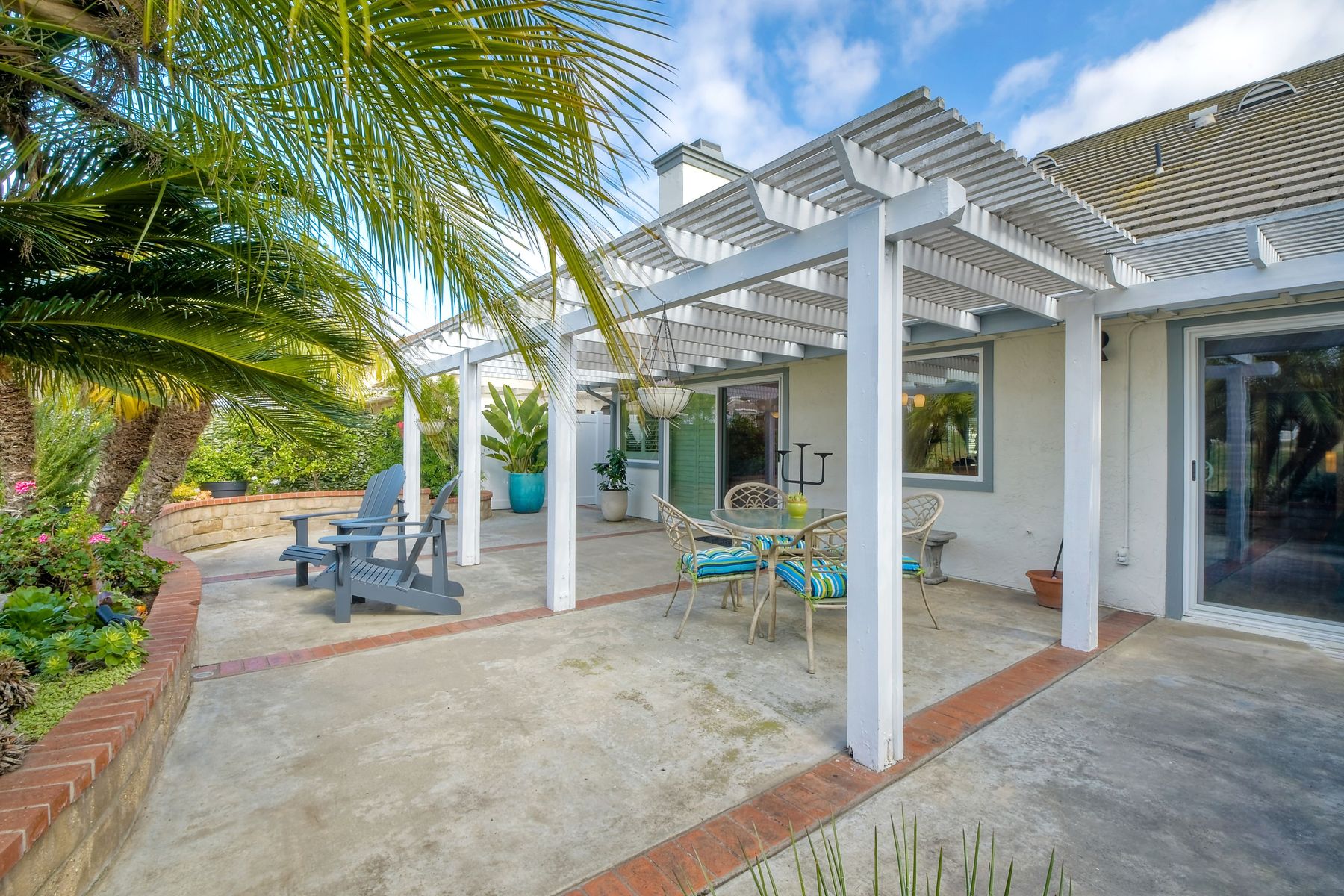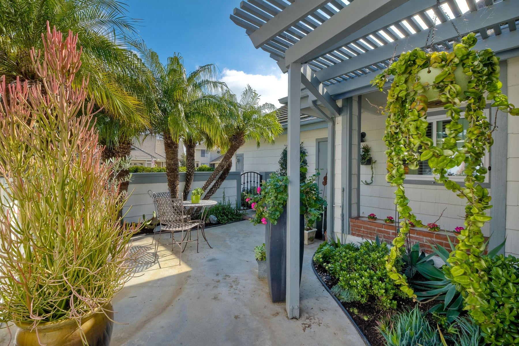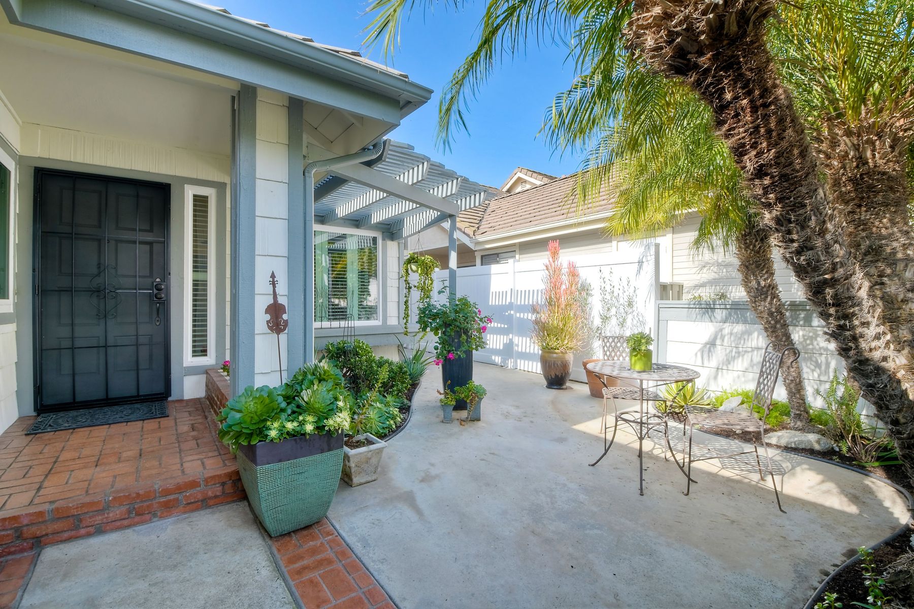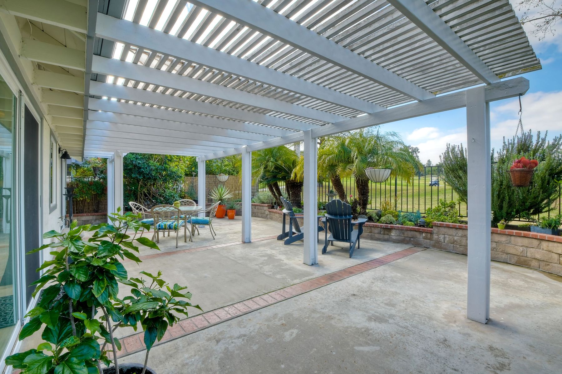 A golf course gem! Lovely single story 2 Bedroom, 2 Bath townhome with 1525 sq. ft. on Shadowridge Golf Course, perfectly situated with long view of 7th Green. Fully remodeled and spacious kitchen with white shaker cabinetry includes stainless appliances, granite countertops and a beautiful subway tile backsplash with abundant cabinet space and a modern large open pantry. Updated bathrooms with dual sinks in primary bedroom with separate private bathroom, and walk-in shower. New double-paned vinyl-framed windows and sliders throughout, custom plantation shutters on all windows/sliding doors, all new plumbing (installed 2020), and new exterior paint. There is a peaceful backyard to relax and watch the golfers, featuring palm trees and established landscaped areas as well as a private palm-tree lined front courtyard. Other features include an in-home laundry room (not in garage), new vinyl fencing, skylights, and canned lighting in kitchen and bedrooms, two walk-in bedroom closets, with hardwood/vinyl floors throughout the home. Convenient attached two car garage. An incredible opportunity for a truly ‘turn-key’ home in the highly desirable Shadowridge Sunrise community.