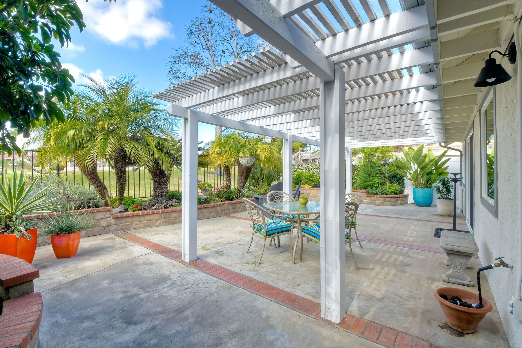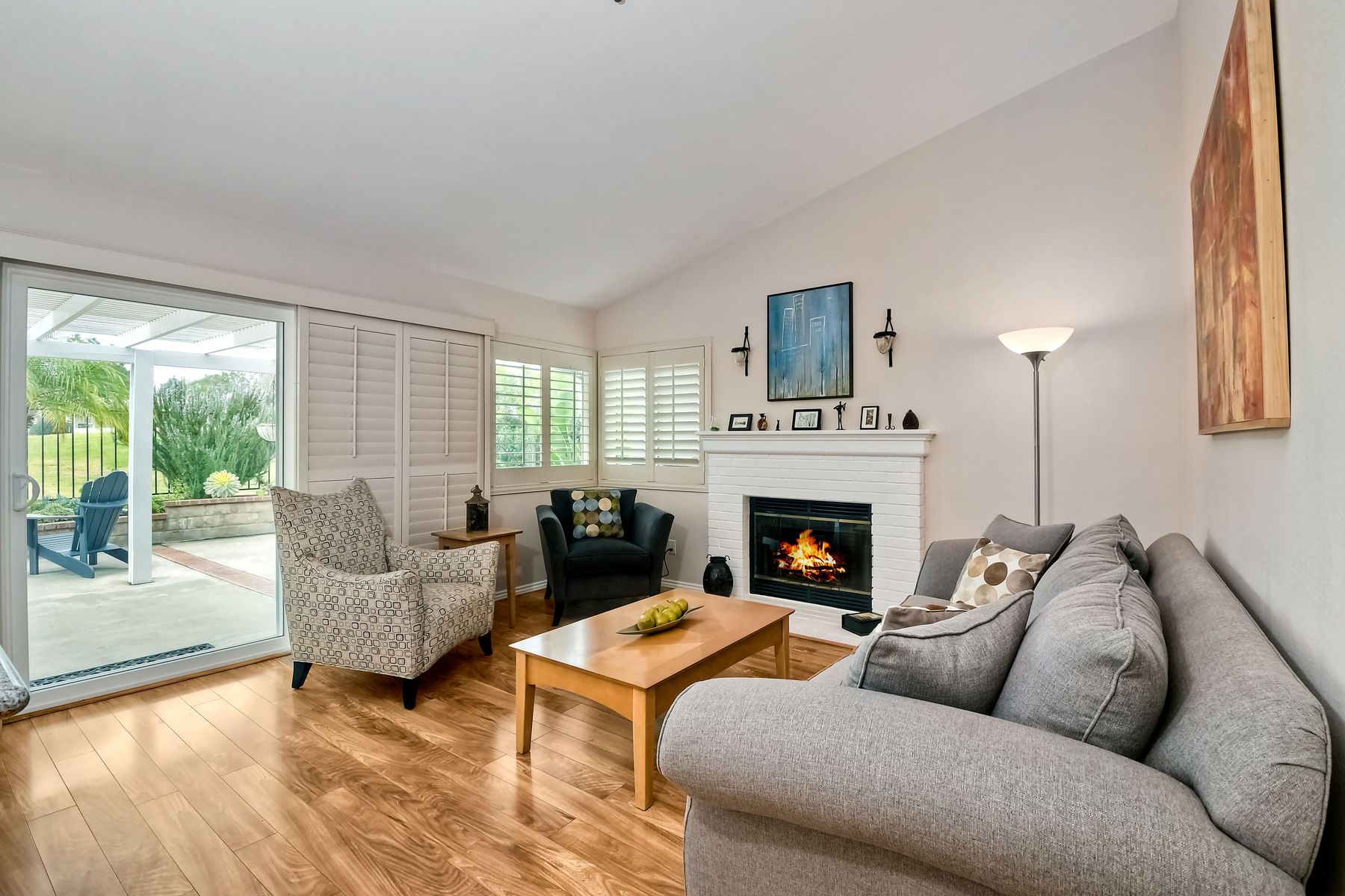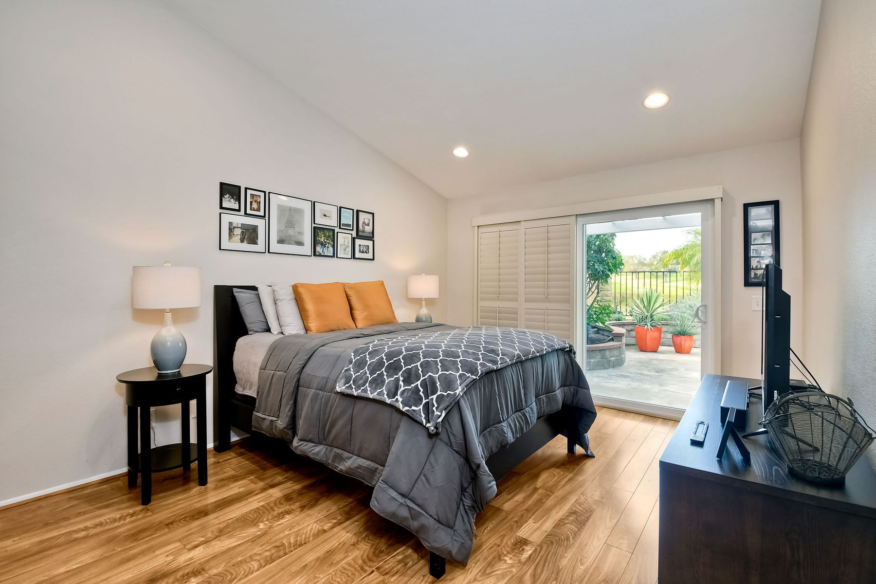 A golf course gem! Lovely single story 2 Bedroom, 2 Bath townhome with 1525 sq. ft. on Shadowridge Golf Course, perfectly situated with long view of 7th Green. Fully remodeled and spacious kitchen with white shaker cabinetry includes stainless appliances, granite countertops and a beautiful subway tile backsplash with abundant cabinet space and a modern large open pantry. Updated bathrooms with dual sinks in primary bedroom with separate private bathroom, and walk-in shower. New double-paned vinyl-framed windows and sliders throughout, custom plantation shutters on all windows/sliding doors, all new plumbing (installed 2020), and new exterior paint. There is a peaceful backyard to relax and watch the golfers, featuring palm trees and established landscaped areas as well as a private palm-tree lined front courtyard. Other features include an in-home laundry room (not in garage), new vinyl fencing, skylights, and canned lighting in kitchen and bedrooms, two walk-in bedroom closets, with hardwood/vinyl floors throughout the home. Convenient attached two car garage. An incredible opportunity for a truly ‘turn-key’ home in the highly desirable Shadowridge Sunrise community.