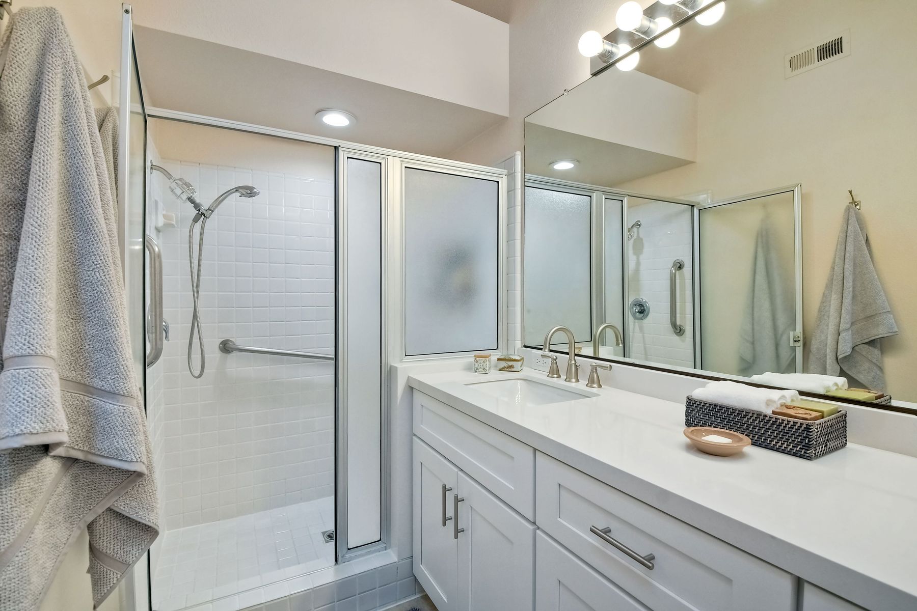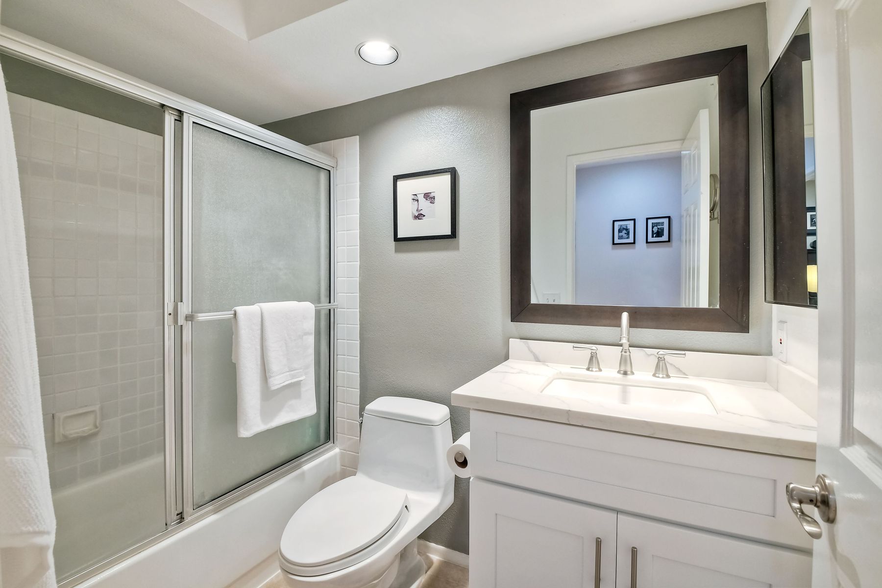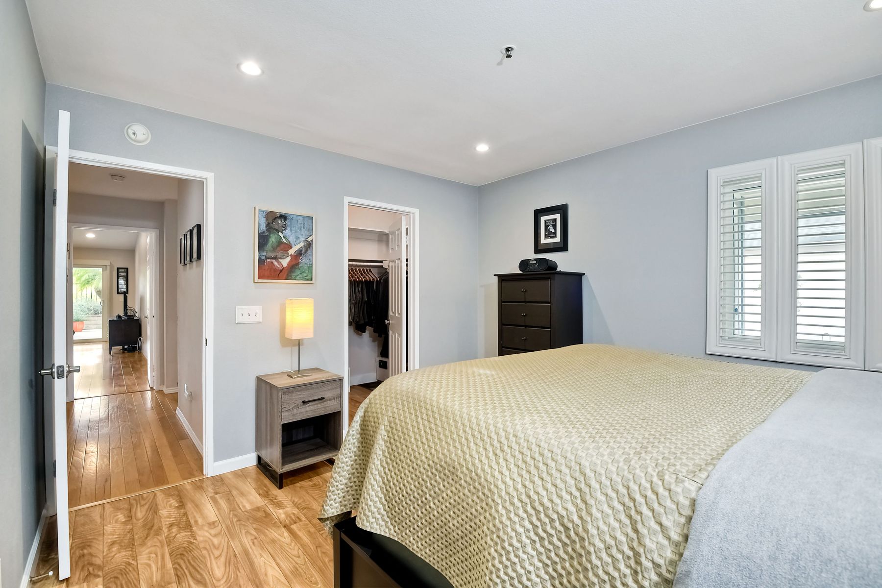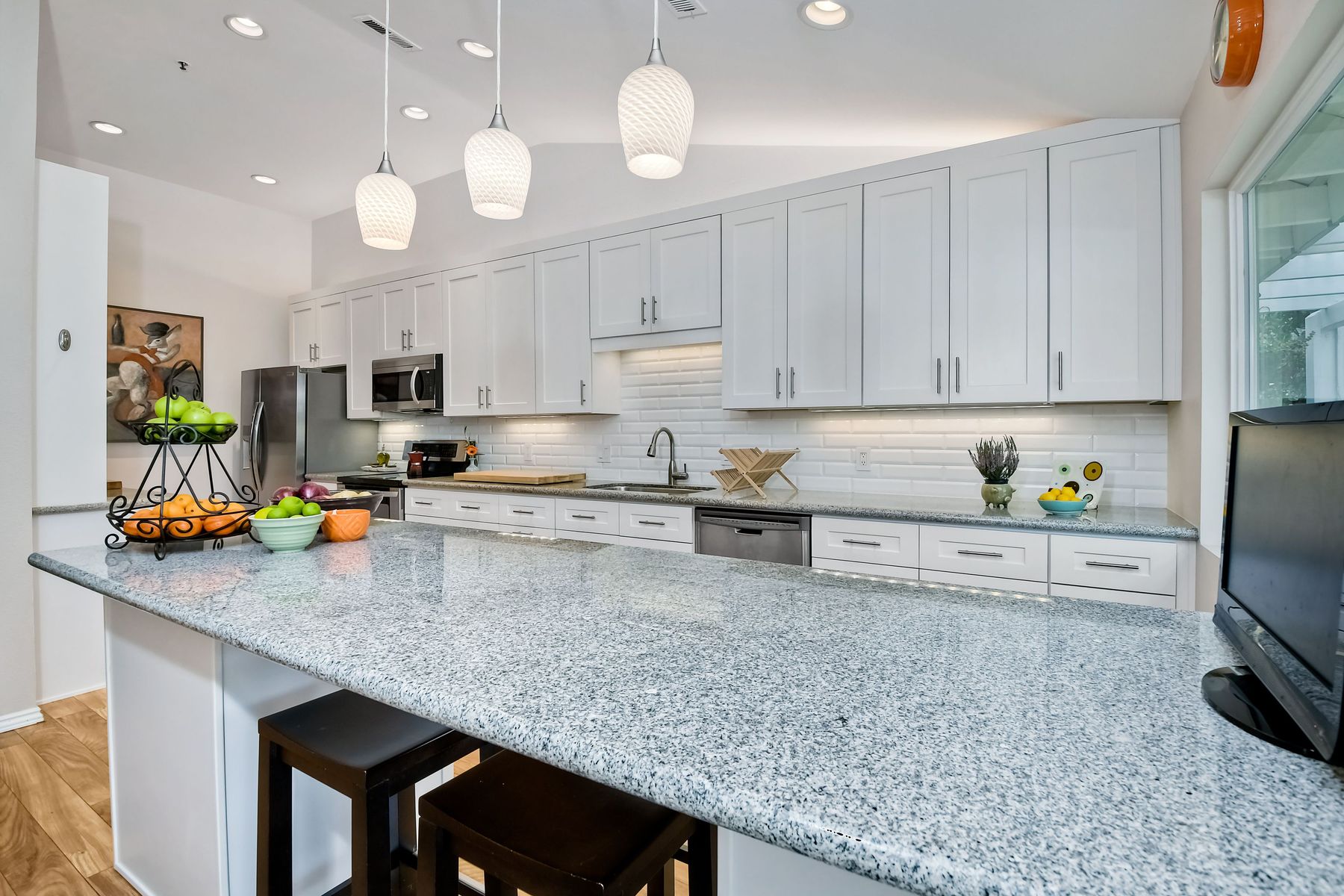 A golf course gem! Lovely single story 2 Bedroom, 2 Bath townhome with 1525 sq. ft. on Shadowridge Golf Course, perfectly situated with long view of 7th Green. Fully remodeled and spacious kitchen with white shaker cabinetry includes stainless appliances, granite countertops and a beautiful subway tile backsplash with abundant cabinet space and a modern large open pantry. Updated bathrooms with dual sinks in primary bedroom with separate private bathroom, and walk-in shower. New double-paned vinyl-framed windows and sliders throughout, custom plantation shutters on all windows/sliding doors, all new plumbing (installed 2020), and new exterior paint. There is a peaceful backyard to relax and watch the golfers, featuring palm trees and established landscaped areas as well as a private palm-tree lined front courtyard. Other features include an in-home laundry room (not in garage), new vinyl fencing, skylights, and canned lighting in kitchen and bedrooms, two walk-in bedroom closets, with hardwood/vinyl floors throughout the home. Convenient attached two car garage. An incredible opportunity for a truly ‘turn-key’ home in the highly desirable Shadowridge Sunrise community.