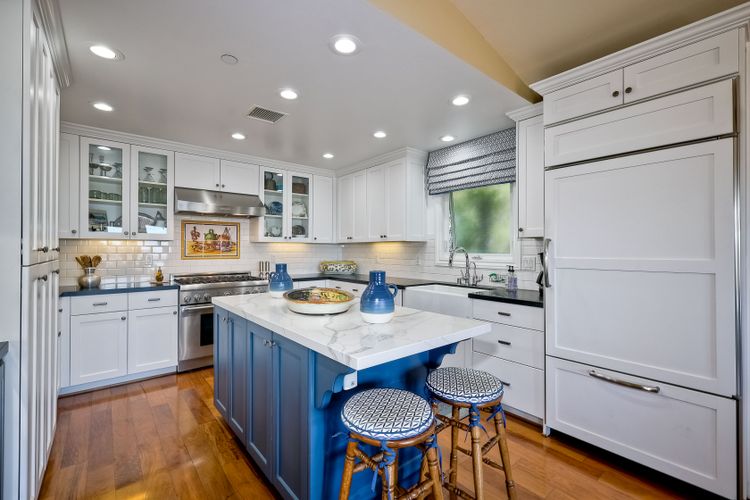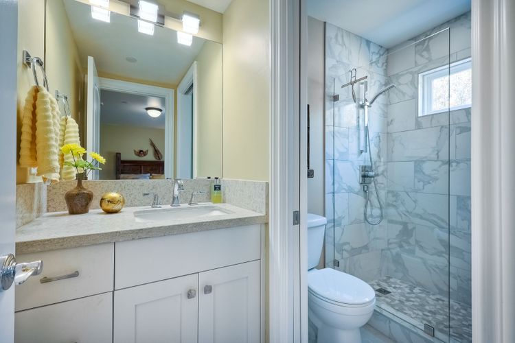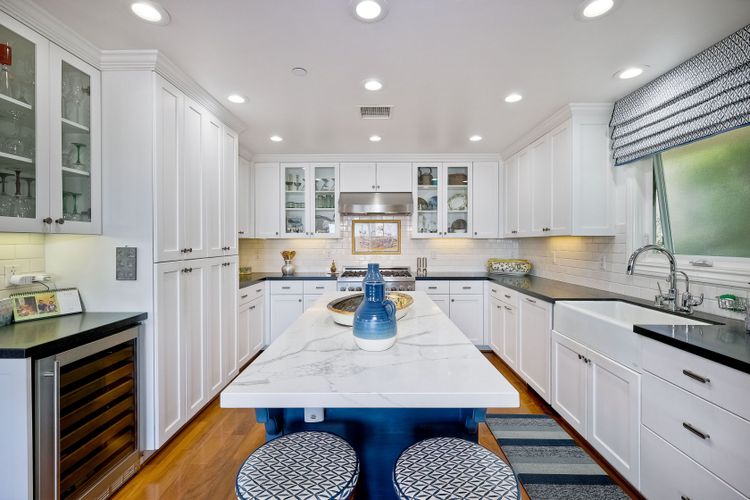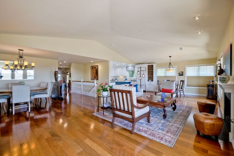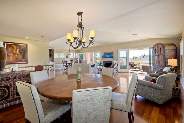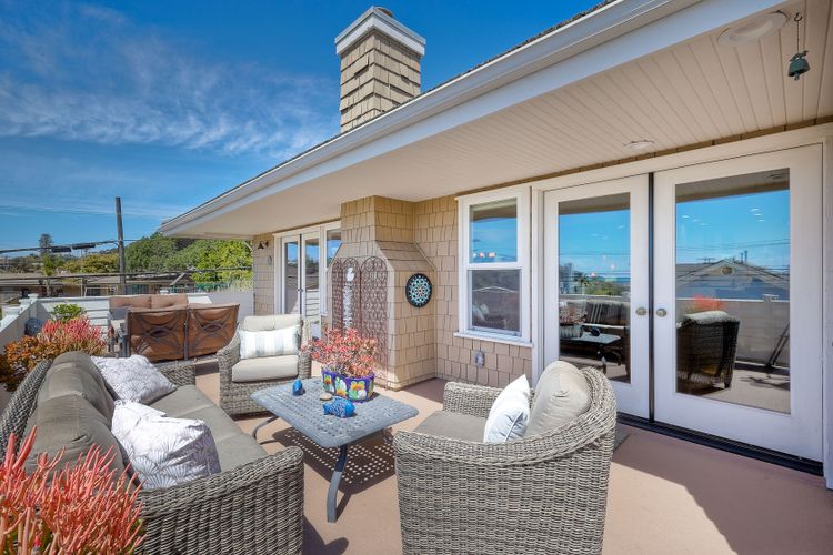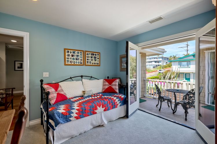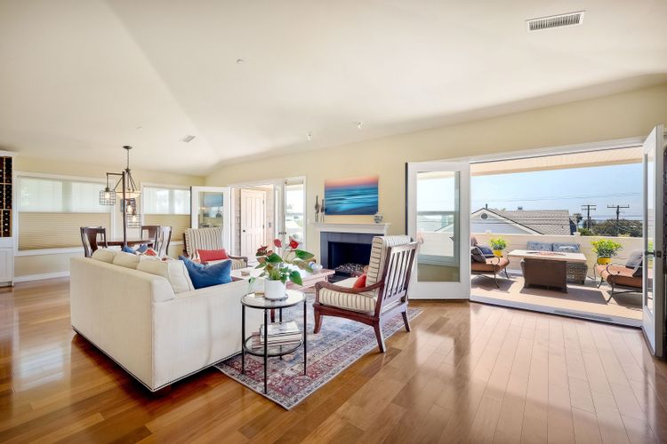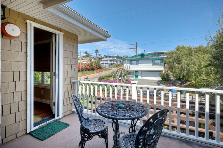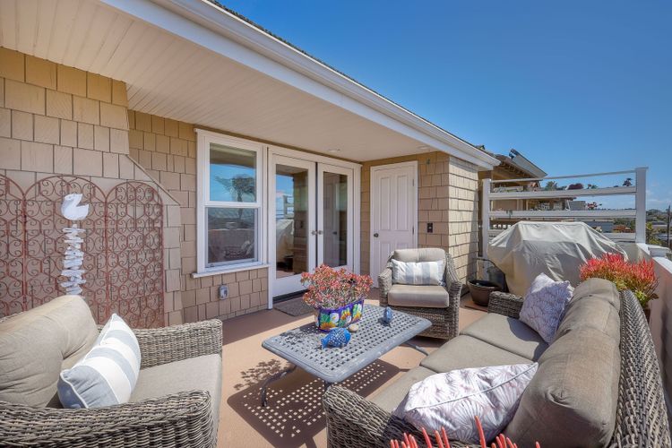 Discover unparalleled luxury living in this modern coastal retreat, perfectly situated just steps from the beach, Cardiff Seaside Market, fine dining, and the coastal rail trail. Boasting a unique blend of contemporary design and coastal charm, this home offers 3 bedrooms plus an office and 4 baths. Step inside to experience a seamless fusion of modern design and coastal inspired decor. The light-filled living spaces feature high ceilings, hardwood floors, large windows and french doors to capture the views of the ocean and spacious deck. Enjoy the spectacular sunsets, ocean views and coastal breezes while sipping a beverage by your custom firepit.  The chef's kitchen is a culinary masterpiece, with lovely granite countertops, large island with extra storage, sub-zero refrigerator, and beautiful cabinetry. The wine frig and bosch dishwasher also make hosting a breeze. Entertain family and friends in the expansive bonus room. With ample space for seating, a storage closet, and beautiful guest bath with marble floor and shower, this room is perfect for hosting gatherings or enjoying laid back evenings with loved ones. If needed, it could be easily converted into a guest suite or extra bedrooms. Retreat to your primary suite, complete with a spa-like ensuite and walk in closet. Just outside the french doors of the bedroom is a custom fountain, sitting area, and meticulously landscaped sea garden, to enjoy your morning coffee or evening glass of wine. Enjoy the ultimate convenience of a private elevator providing easy access to the second level of the home. Whether you're carrying groceries from the garage, or simply want to avoid the stairs, the elevator adds an extra layer of comfort and design. This home offers ample parking with a 3-car garage, and 4 additional spaces in the driveway, providing plenty of room for guests or multiple vehicles. With parking at a premium in Cardiff, this is definitely a huge asset. The garage also has a tesla outlet, and is perfect for storing surfboards, bikes and all your beach needs. Paid off solar panels save you dollars. Don't miss this rare opportunity to own a piece of coastal paradise with all the modern amenities you desire.