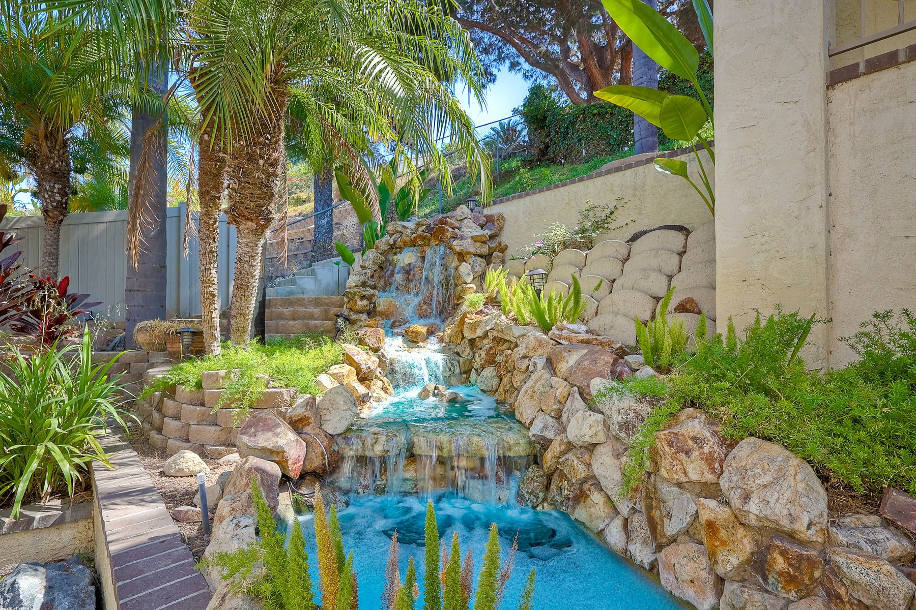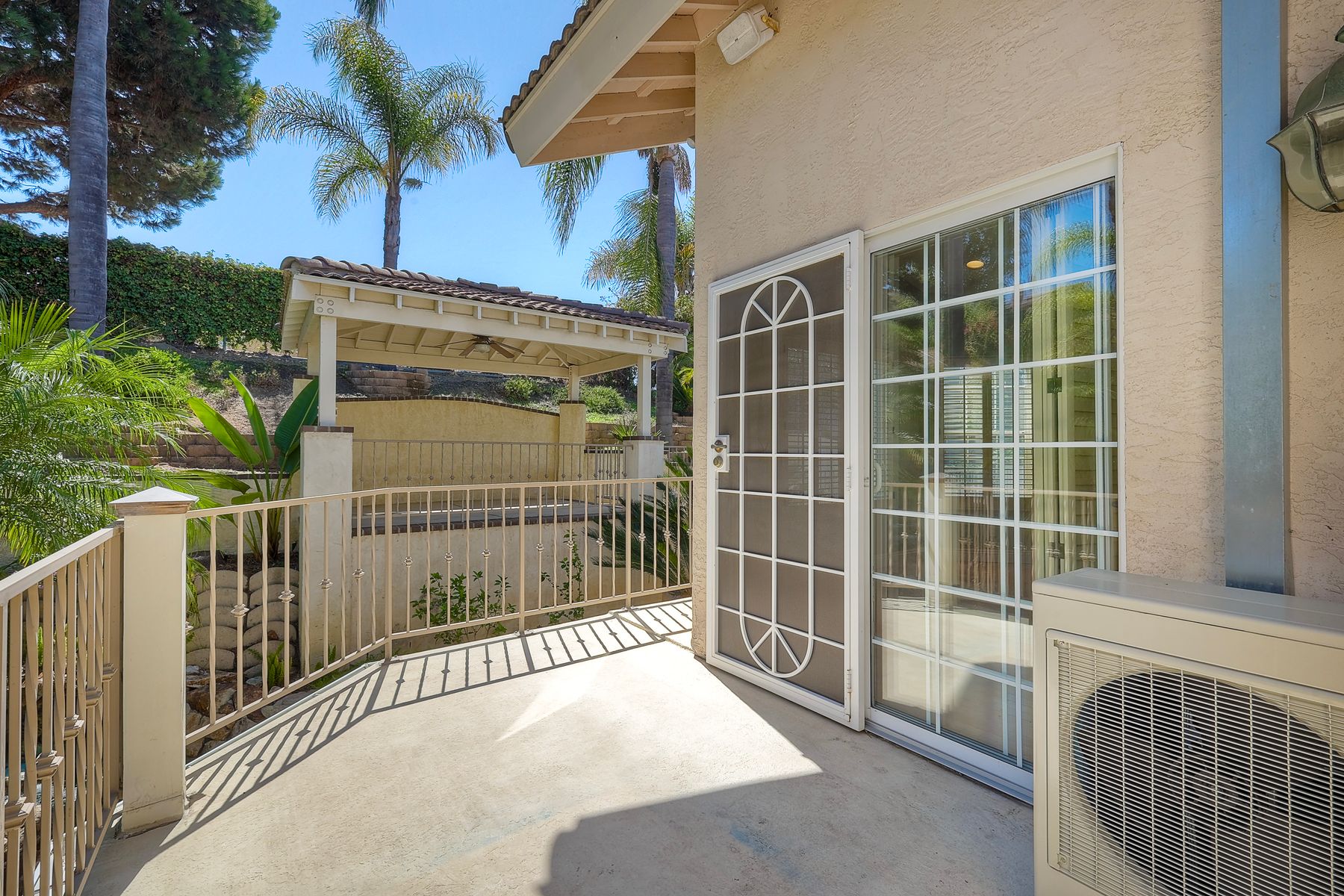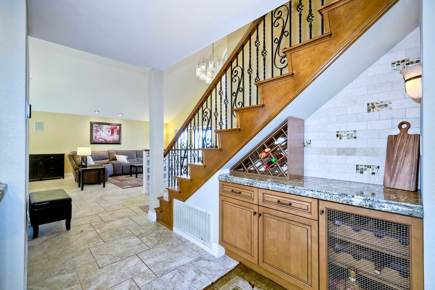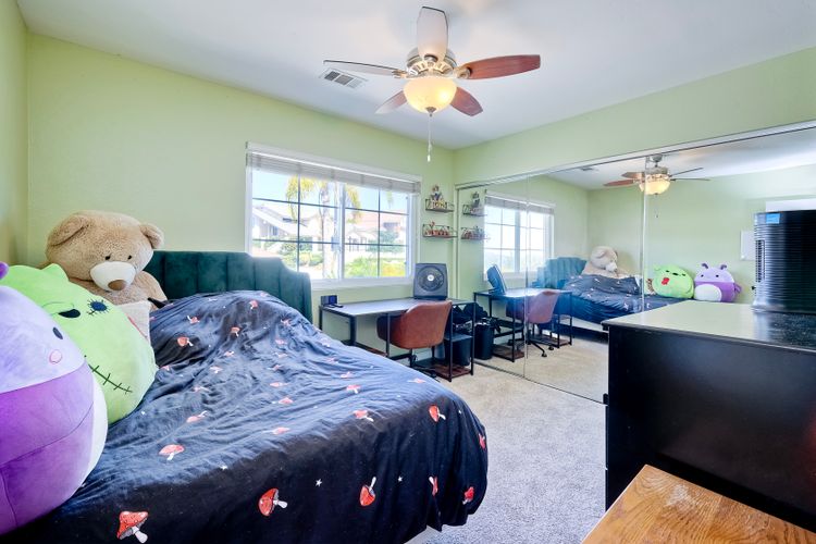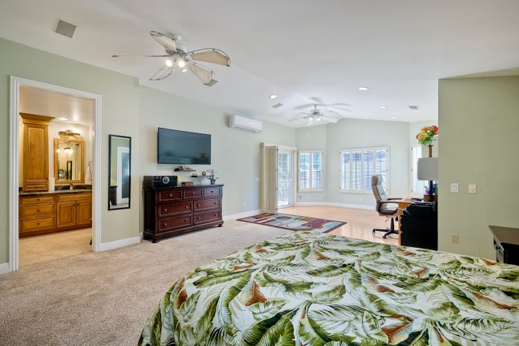 Discover this gorgeous home in the Cottonwood development, boasting 2,743 square feet of highly upgraded elegance on a 9,000+ SF lot, with paid-for Solar. Enter through a grand foyer that leads to a formal living and dining room, perfect for entertaining. The highly upgraded kitchen is a culinary delight, featuring stunning Brazilian granite counters, Italian tile floors, stainless steel appliances, custom cabinetry, and a garden view window. It seamlessly flows into a large family room with a cozy fireplace, custom bar, & an adjacent bonus room with tons of extra space. Retreat to the luxurious master suite, complete with a separate seating area, high ceilings, dedicated mini split, two walk-in closets with awesome built-ins, and a private balcony overlooking the beautifully landscaped backyard. The master bath is a spa-like oasis, equipped with a Jacuzzi tub, large walk-in shower, heated tile floors, and Brazilian granite countertops, all enhanced by upgraded custom cabinetry. Step outside to enjoy a patio complete with a fire pit and an impressive outdoor waterfall, all in a manicured, low-maintenance setting with thoughtful lighting. The upper terrace is perfect for entertaining in any season, providing a covered and illuminated space for gatherings. Additional highlights include paid-for solar, a security system, efficient heating and AC, and a 3-car garage featuring ceiling storage racks and finished drywall. Shutters, multiple space saving pocket doors, two whole house fans, and ceiling fans throughout ensure comfort year-round. Built-in speakers at living room, bonus room, and backyard. Located close to schools, shopping, golf, and Cottonwood County Park, this home combines luxury, comfort, and convenience. Don’t miss the opportunity to make it yours!