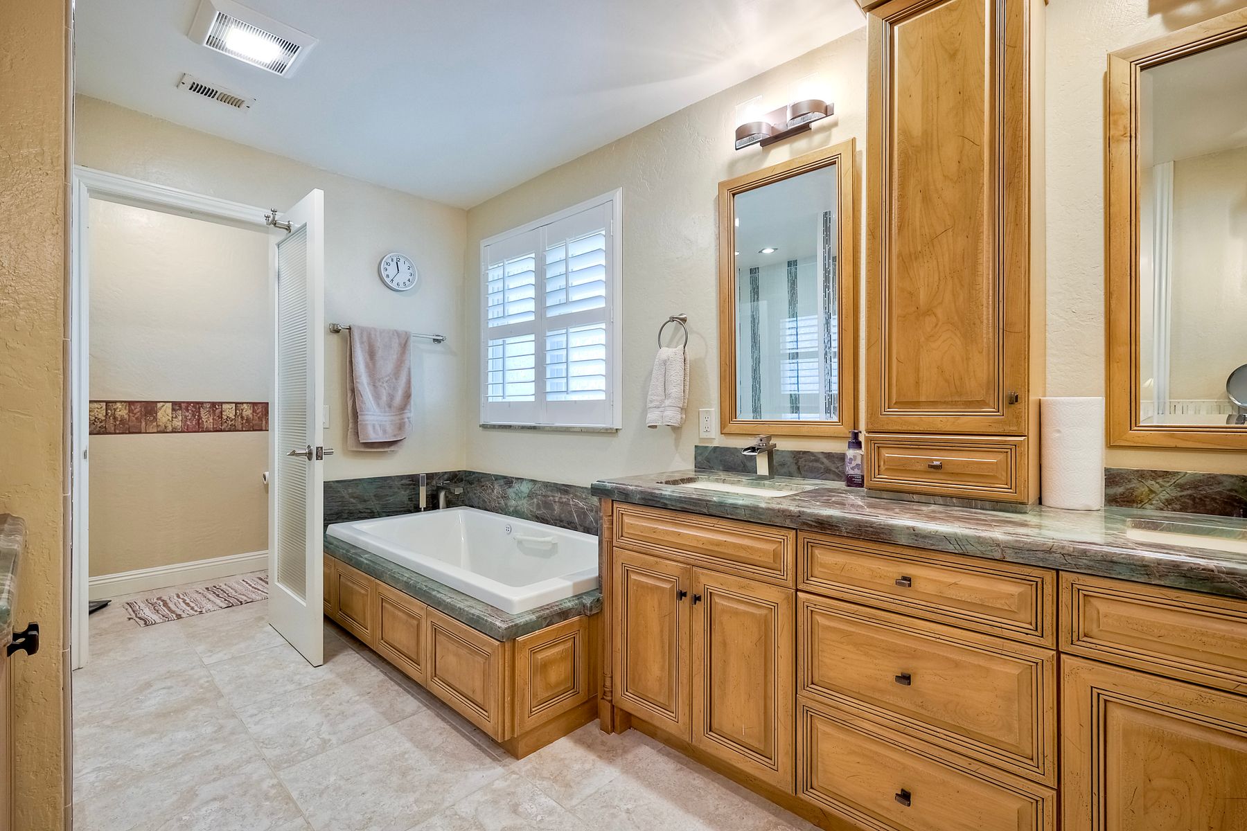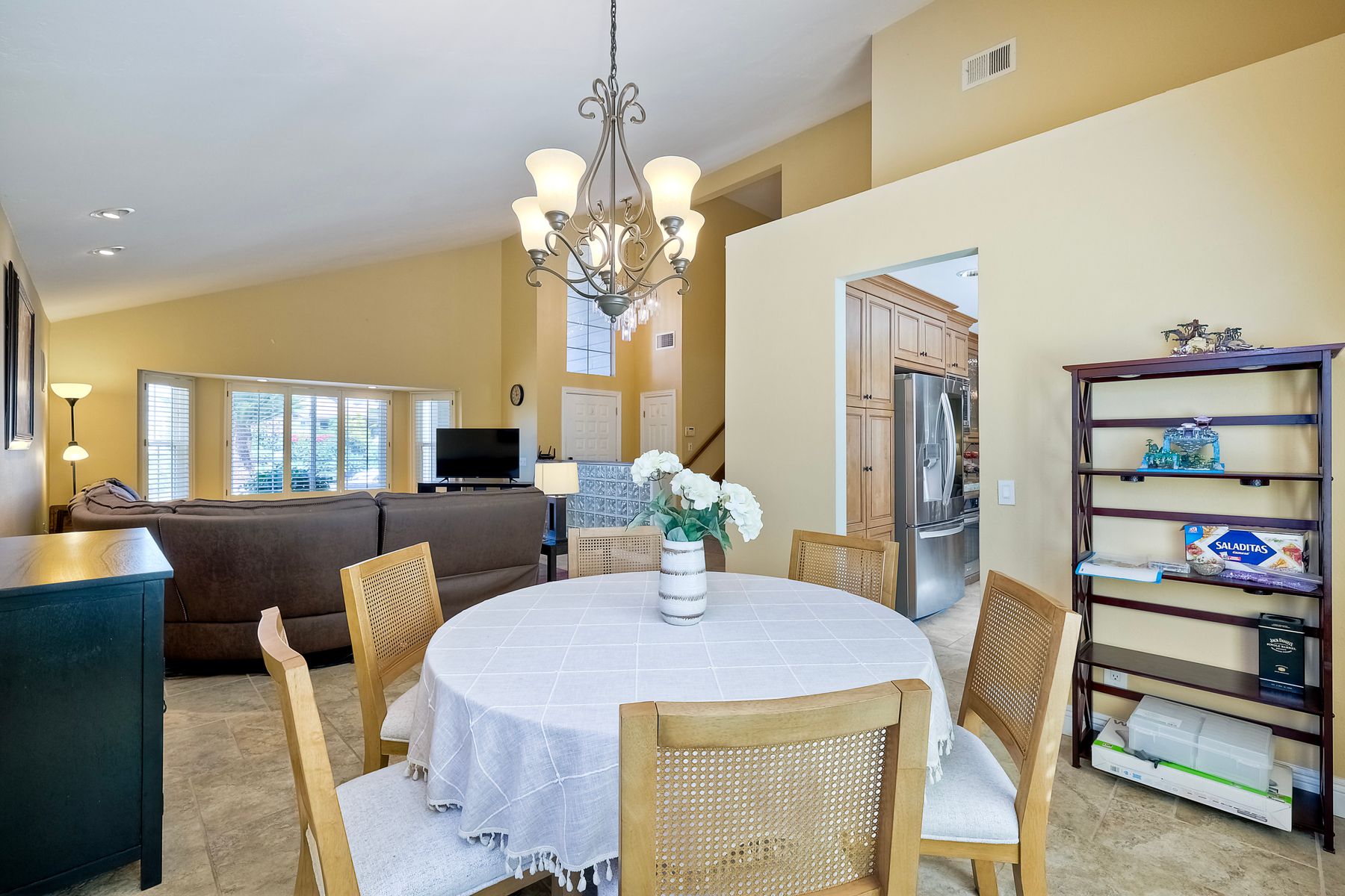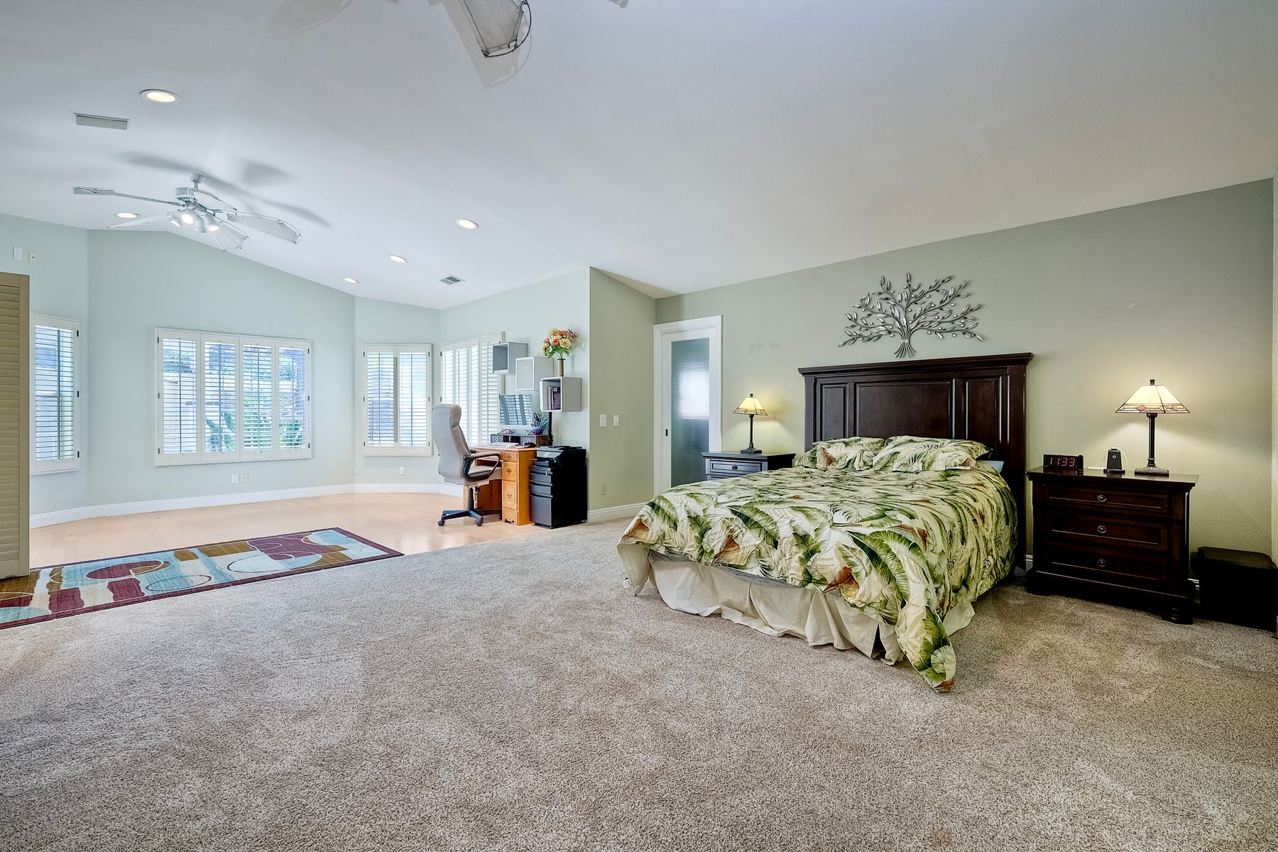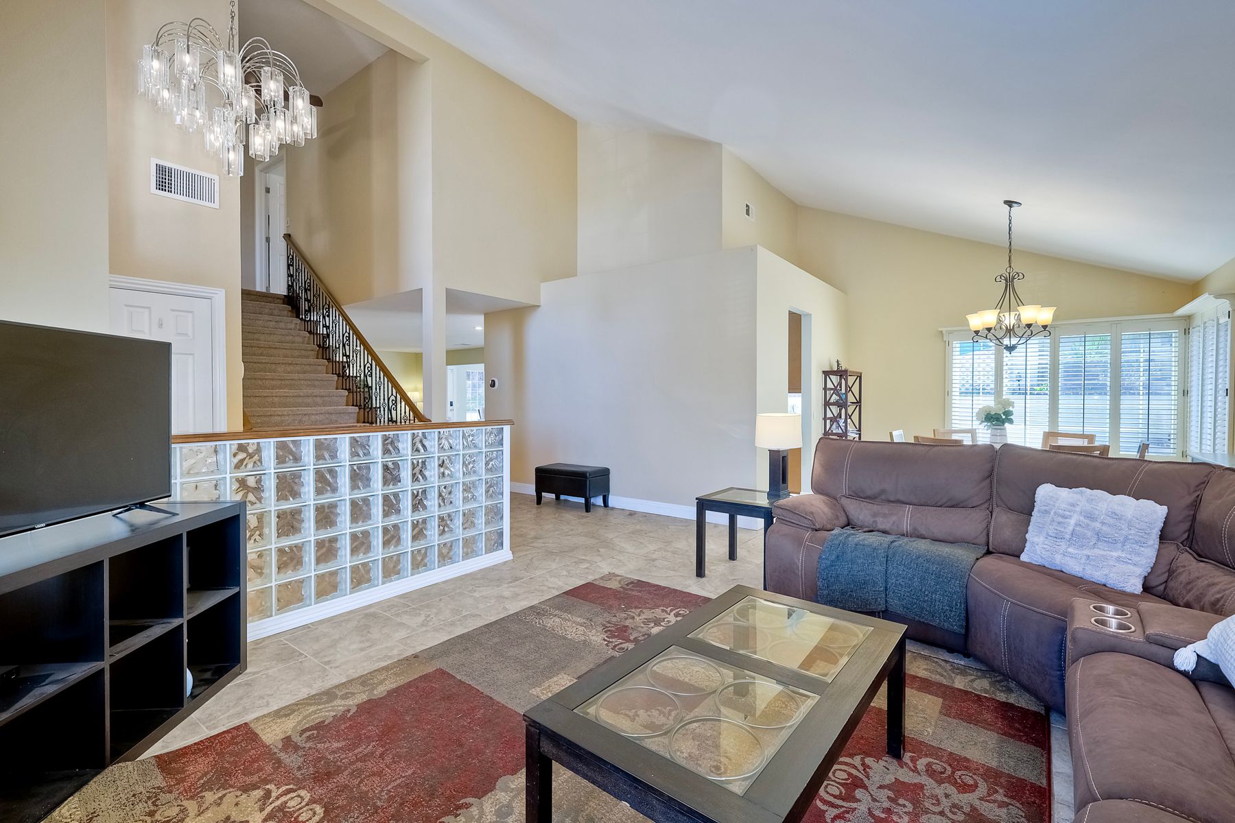 Discover this gorgeous home in the Cottonwood development, boasting 2,743 square feet of highly upgraded elegance on a 9,000+ SF lot, with paid-for Solar. Enter through a grand foyer that leads to a formal living and dining room, perfect for entertaining. The highly upgraded kitchen is a culinary delight, featuring stunning Brazilian granite counters, Italian tile floors, stainless steel appliances, custom cabinetry, and a garden view window. It seamlessly flows into a large family room with a cozy fireplace, custom bar, & an adjacent bonus room with tons of extra space. Retreat to the luxurious master suite, complete with a separate seating area, high ceilings, dedicated mini split, two walk-in closets with awesome built-ins, and a private balcony overlooking the beautifully landscaped backyard. The master bath is a spa-like oasis, equipped with a Jacuzzi tub, large walk-in shower, heated tile floors, and Brazilian granite countertops, all enhanced by upgraded custom cabinetry. Step outside to enjoy a patio complete with a fire pit and an impressive outdoor waterfall, all in a manicured, low-maintenance setting with thoughtful lighting. The upper terrace is perfect for entertaining in any season, providing a covered and illuminated space for gatherings. Additional highlights include paid-for solar, a security system, efficient heating and AC, and a 3-car garage featuring ceiling storage racks and finished drywall. Shutters, multiple space saving pocket doors, two whole house fans, and ceiling fans throughout ensure comfort year-round. Built-in speakers at living room, bonus room, and backyard. Located close to schools, shopping, golf, and Cottonwood County Park, this home combines luxury, comfort, and convenience. Don’t miss the opportunity to make it yours!