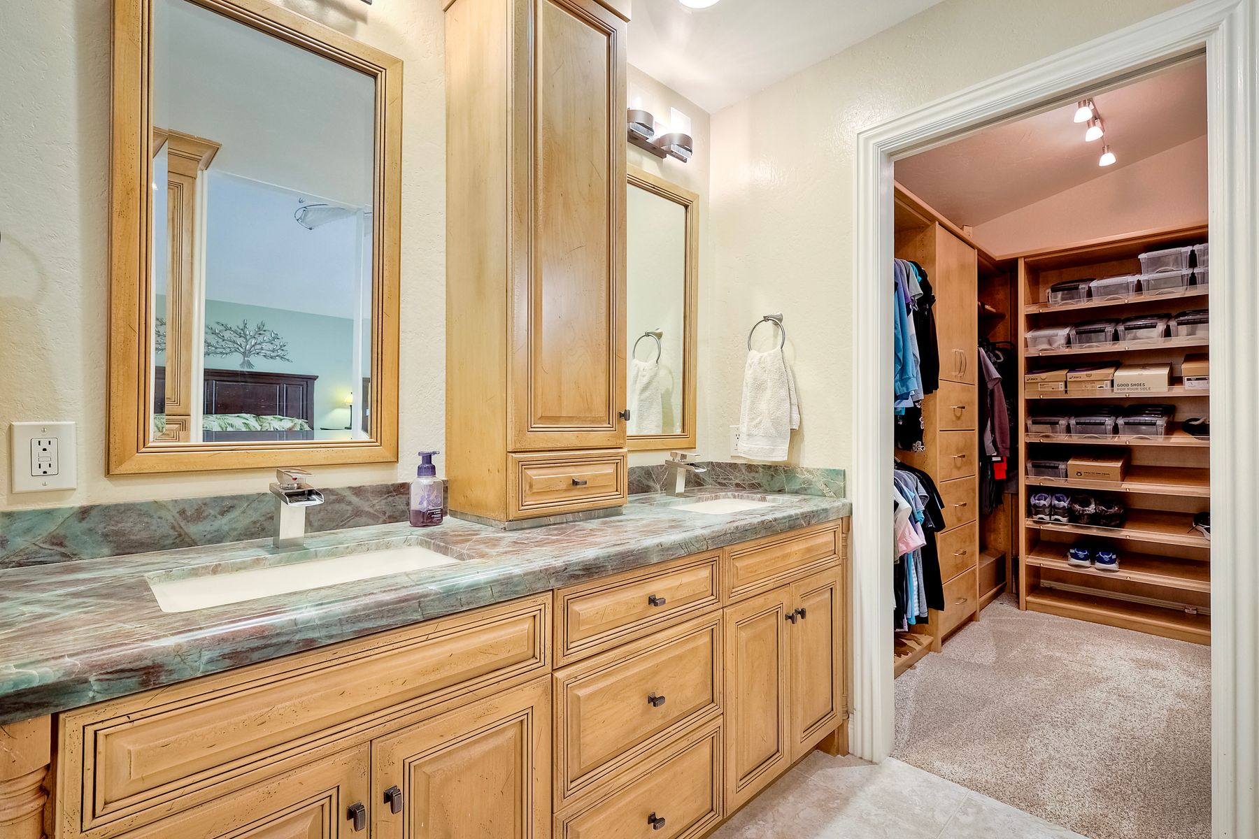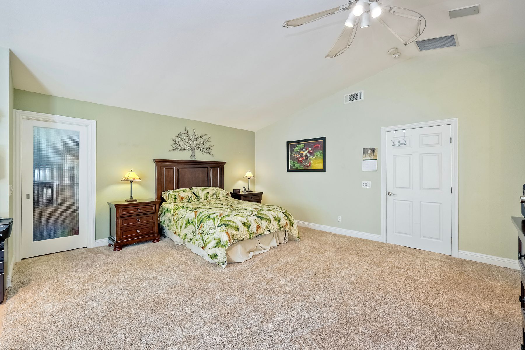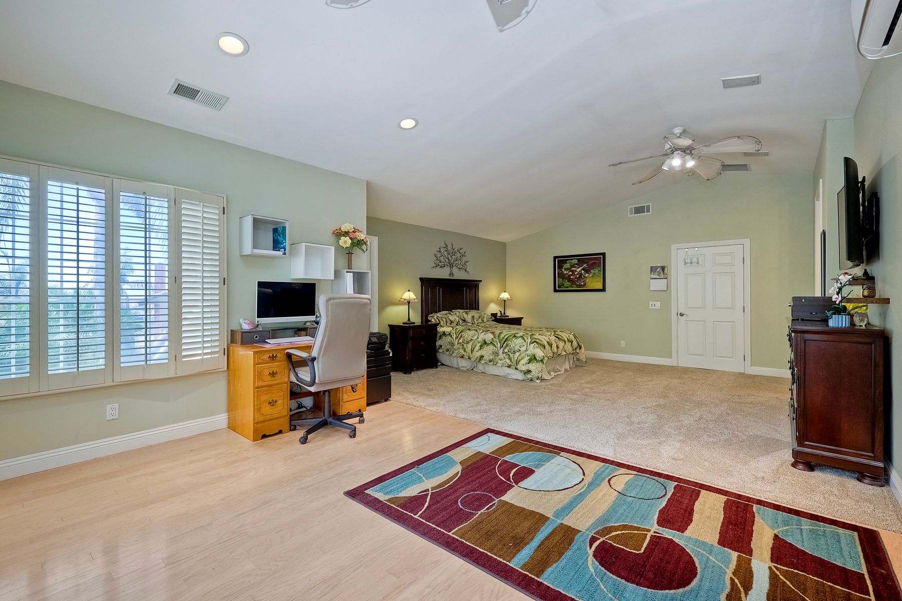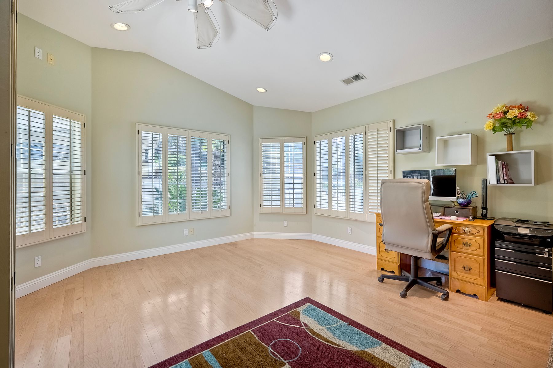 Discover this gorgeous home in the Cottonwood development, boasting 2,743 square feet of highly upgraded elegance on a 9,000+ SF lot, with paid-for Solar. Enter through a grand foyer that leads to a formal living and dining room, perfect for entertaining. The highly upgraded kitchen is a culinary delight, featuring stunning Brazilian granite counters, Italian tile floors, stainless steel appliances, custom cabinetry, and a garden view window. It seamlessly flows into a large family room with a cozy fireplace, custom bar, & an adjacent bonus room with tons of extra space. Retreat to the luxurious master suite, complete with a separate seating area, high ceilings, dedicated mini split, two walk-in closets with awesome built-ins, and a private balcony overlooking the beautifully landscaped backyard. The master bath is a spa-like oasis, equipped with a Jacuzzi tub, large walk-in shower, heated tile floors, and Brazilian granite countertops, all enhanced by upgraded custom cabinetry. Step outside to enjoy a patio complete with a fire pit and an impressive outdoor waterfall, all in a manicured, low-maintenance setting with thoughtful lighting. The upper terrace is perfect for entertaining in any season, providing a covered and illuminated space for gatherings. Additional highlights include paid-for solar, a security system, efficient heating and AC, and a 3-car garage featuring ceiling storage racks and finished drywall. Shutters, multiple space saving pocket doors, two whole house fans, and ceiling fans throughout ensure comfort year-round. Built-in speakers at living room, bonus room, and backyard. Located close to schools, shopping, golf, and Cottonwood County Park, this home combines luxury, comfort, and convenience. Don’t miss the opportunity to make it yours!