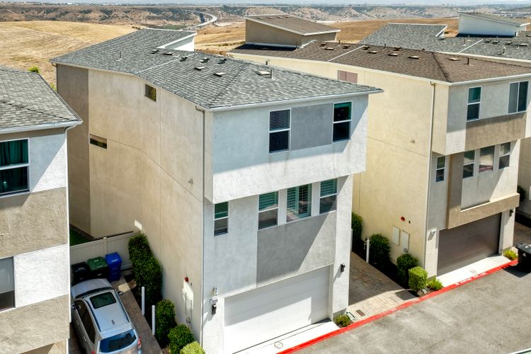 Just appraised for $955,000 on 11/6/25. Opportunity awaits for one lucky buyer. This modern, detached 3-story home offers the rare luxury of your own private elevator, an exceptional floor plan & breathtaking views. The 1st floor is a spacious open flex space currently used as a family/music room with a full bath. Originally offered by the builder as an optional 4th bedroom, this area can easily be enclosed with a wall & door - an ideal for multi-generaltional living or a guest room. A sliding door gives access to a front and side patio, extending your living space outdoors. The 2nd floor impresses w/ its bright, open-concept layout & abundance of windows dressed in classic wood shutters. The chef's kitchen is a showstopper, featuring a massive island, walk-in pantry, stainless steel appliances, stylish pendant lighting & extensive cabinet space. A cozy loft offers the perfect spot for a home office & the private balcony is ideal for enjoying the views. For convenience, there's also a guest powder room on this level. On the 3rd floor, you'll find a luxurious primary suite w/ vaulted ceilings, a spacious walk-in closet, soaking tub, glass-enclosed shower, dual vanities and an oversized private water closet. Two additional bedrooms, a full hallway bath, a laundry room and a versatile niche round out the top floor. There's also an attached 2-car garage w/ custom built-in cabinetry, plus a private carport for a 3rd vehicle. Located near Otay Ranch Mall, shops, dining and more. This home is rare and one of the best that Millenia has to offer - Make it yours!