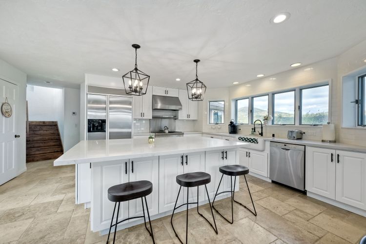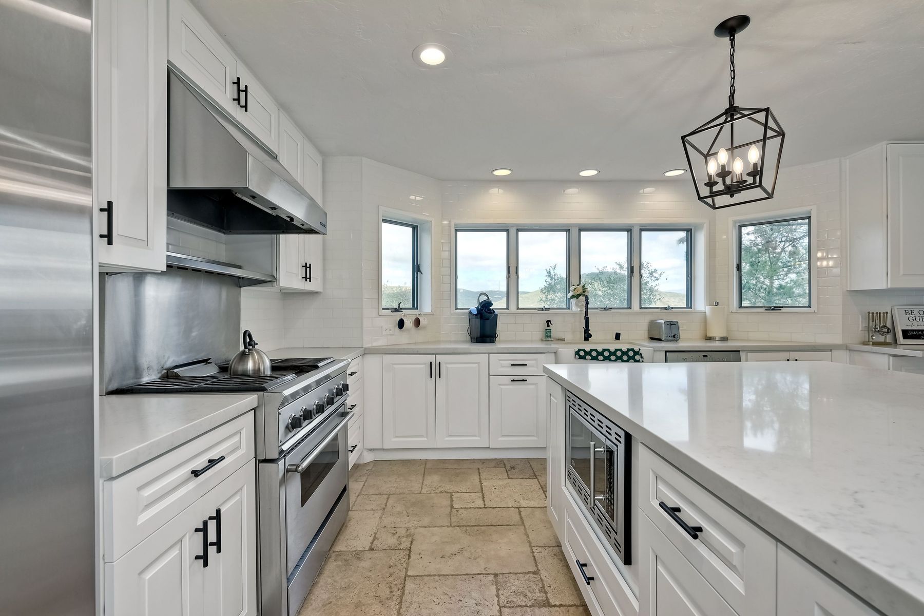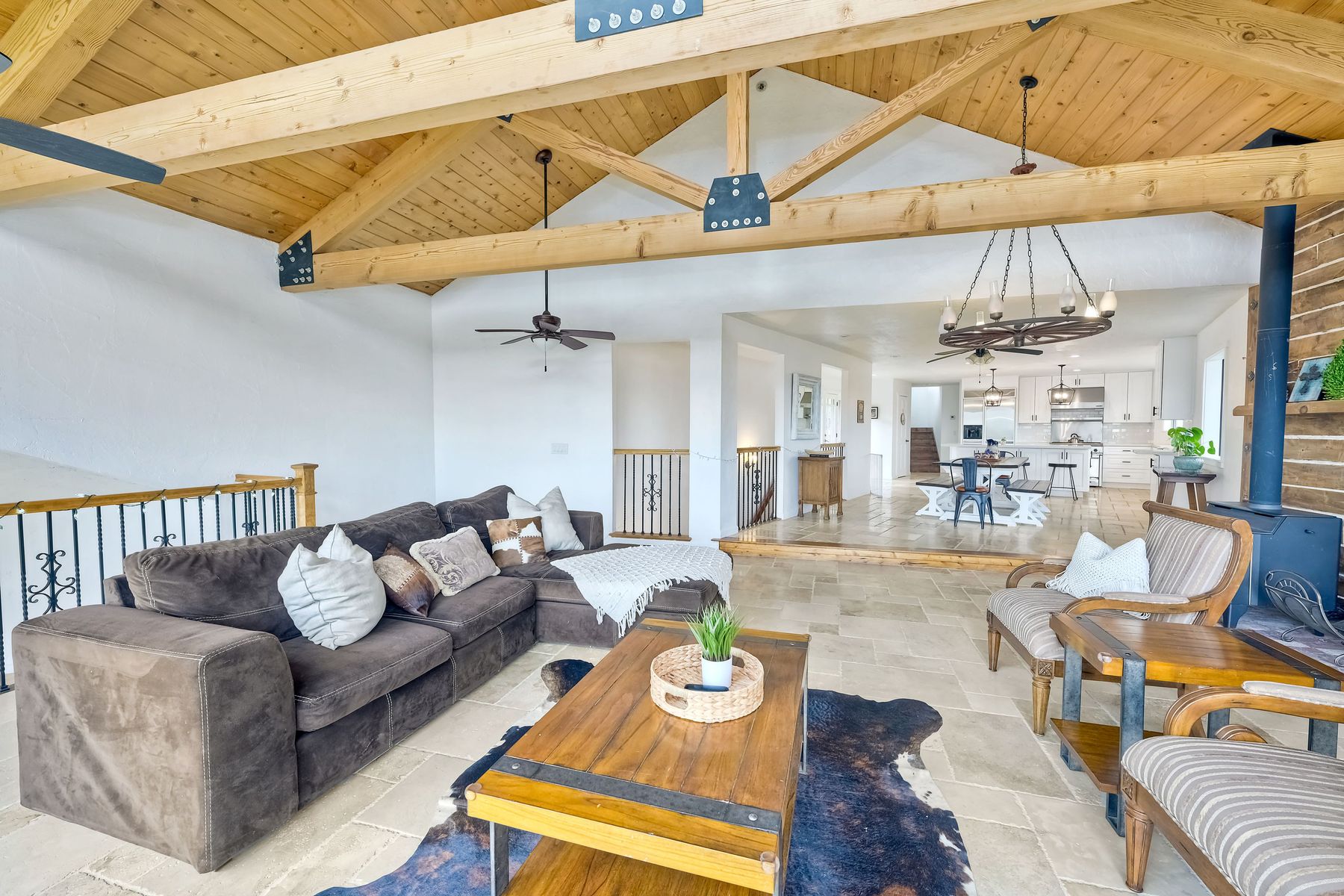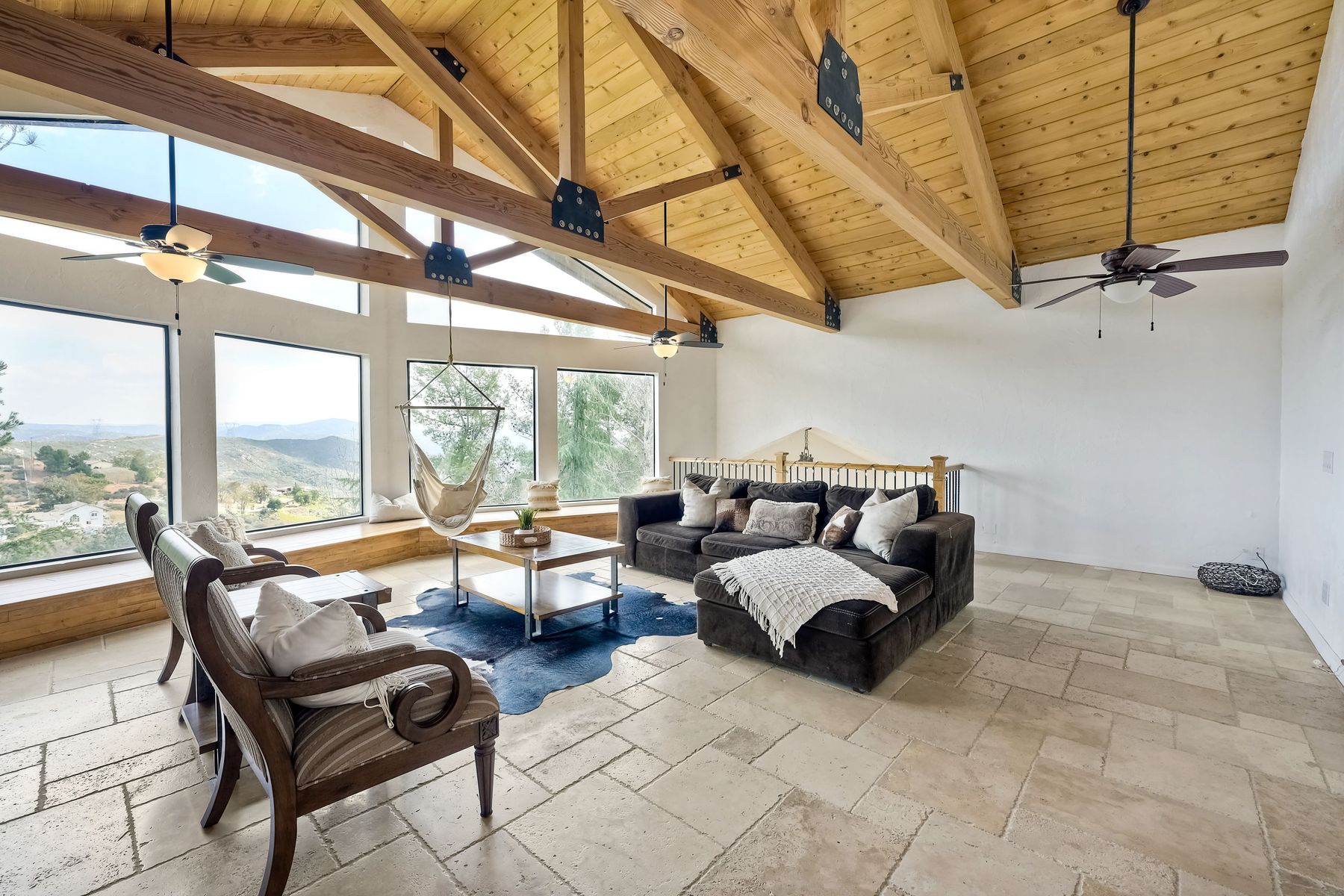 Must see this completely renovated gorgeous retreat! Set on three acres of land, this 4 bedroom 3 bath home offers panoramic mountain views with gorgeous sunrises and sunsets. Vaulted ceilings and picture windows throughout capture the breathtaking views this home offers. Completely renovated, offering custom travertine tile throughout, 3 new bathrooms, custom paint throughout, new exterior decks, fencing and landscaping. The kitchen is a dream kitchen with new custom cabinets, stainless restaurant grade appliances, walk-in pantry and much more. No expense spared to capture the features of this custom home. Enjoy outdoor living in a private mountain setting on several different terraces or in the custom pool and spa with gorgeous waterfall features. There is a bedroom and full bathroom downstairs in the family room, ideal for an in-law or guests to enjoy privacy. The main bedroom is the perfect spacious retreat which includes a balcony to watch the sunset, walk-in closet and a beautiful new ensuite which includes a private soaker tub. This beautiful estate is a must see! This home has also operated successfully as an Airbnb. Furnishings may be considered.