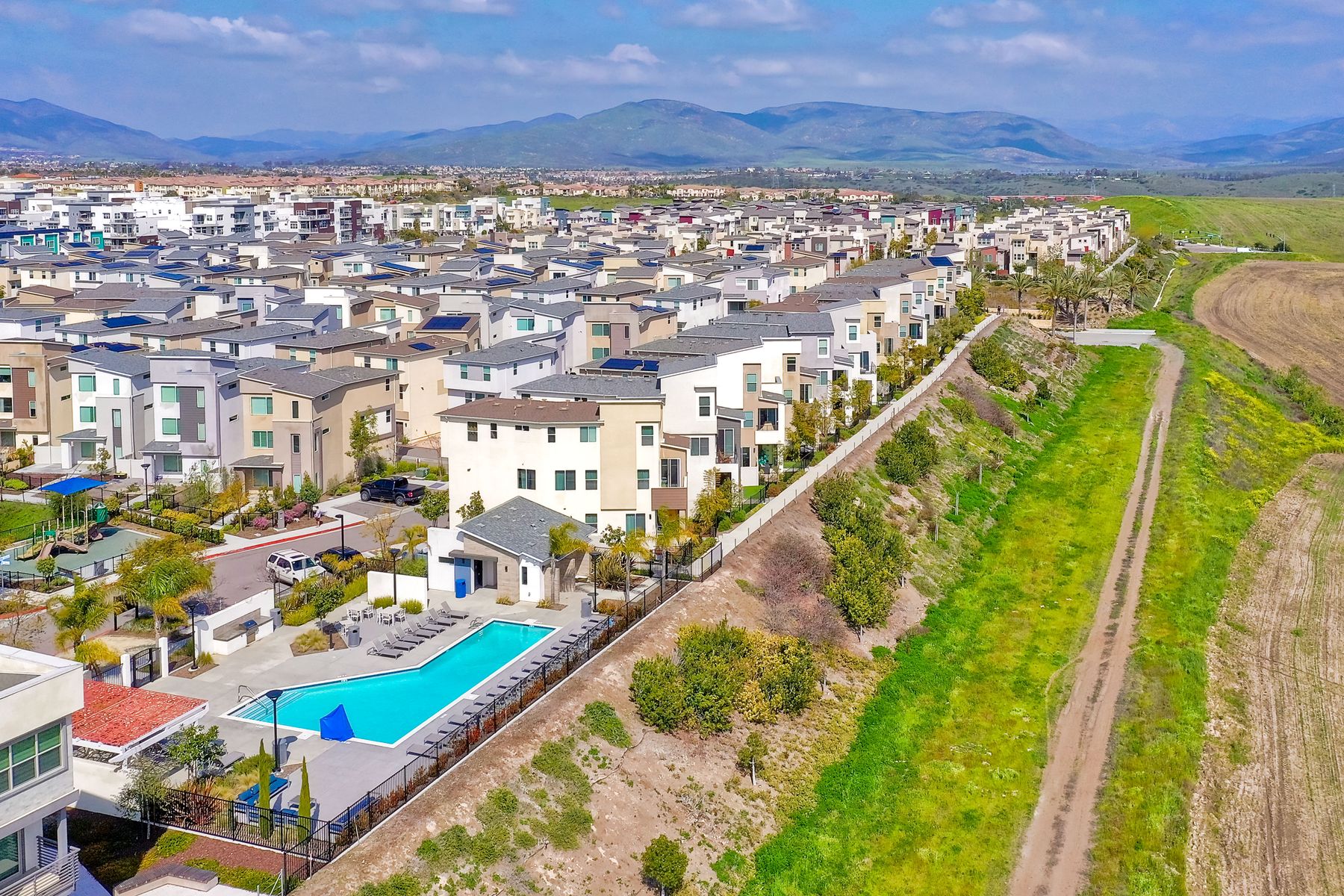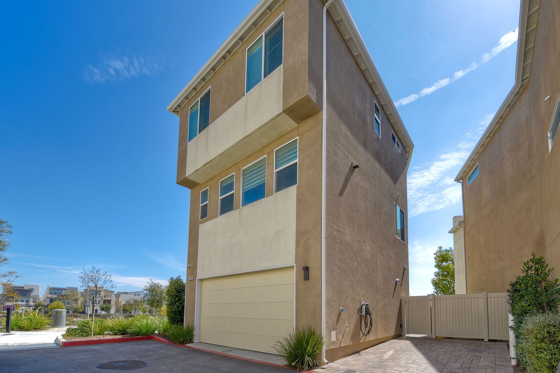 Here's the Real Deal! Gorgeous 3 Story Home w/ 4 Bed, 3.5 Baths, your own Personal Elevator, Private Corner Lot w/ the most Incredible Views! This contemporary home has an open floor plan, tall ceilings, modern staircases w/ stainless steel railings, luxury vinyl floors on all levels & an abundance of natural light throughout. There's a full bed/bath on 1st floor w/ a slider to the garden/patio. The 2nd floor is a wonderful space to design as you please & a balcony to enjoy the views. The kitchen is beautiful w/ a Huge Island, Quartz Countertops, White Cabinetry, SS Appliances, Big Pantry. The 3rd floor has 3 bed, 2 baths, laundry rm. The Master Suite is magnificent w/ Vaulted Ceilings, Walk-In Closet & a Luxurious Bath Area. There's a two car attached garage w/ direct access and an additional parking space directly next to this home that has brick pavers. There are two electric car charging stations - one in the garage and one attached to the additional parking space. The front yard/ patio area is luscious w/ a wide variety of fruits and vegetables - Cilantro, Leeks, Chili Peppers, Onions, Asparagus, Mint, Strawberries, Wisteria, Jasmine & Fig Trees. There's even a dedicated space for the dog. The Skylar complex has a huge gated pool area to lounge in the sun. There's even a tot lot for the little ones. The Skylar complex is special because it's one of the few complexes that has detached homes within the Millenia Development. In turn, what makes Millenia so awesome is that it exudes modern living by bringing in all that we need to make life simple and close by - all the best shops, eateries, Otay Ranch Mall and lots of parks to enjoy playtime without the duties of maintenance.