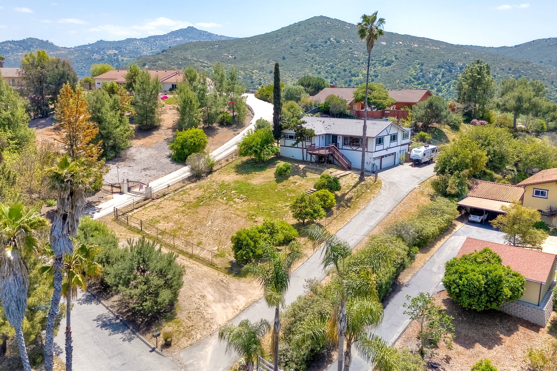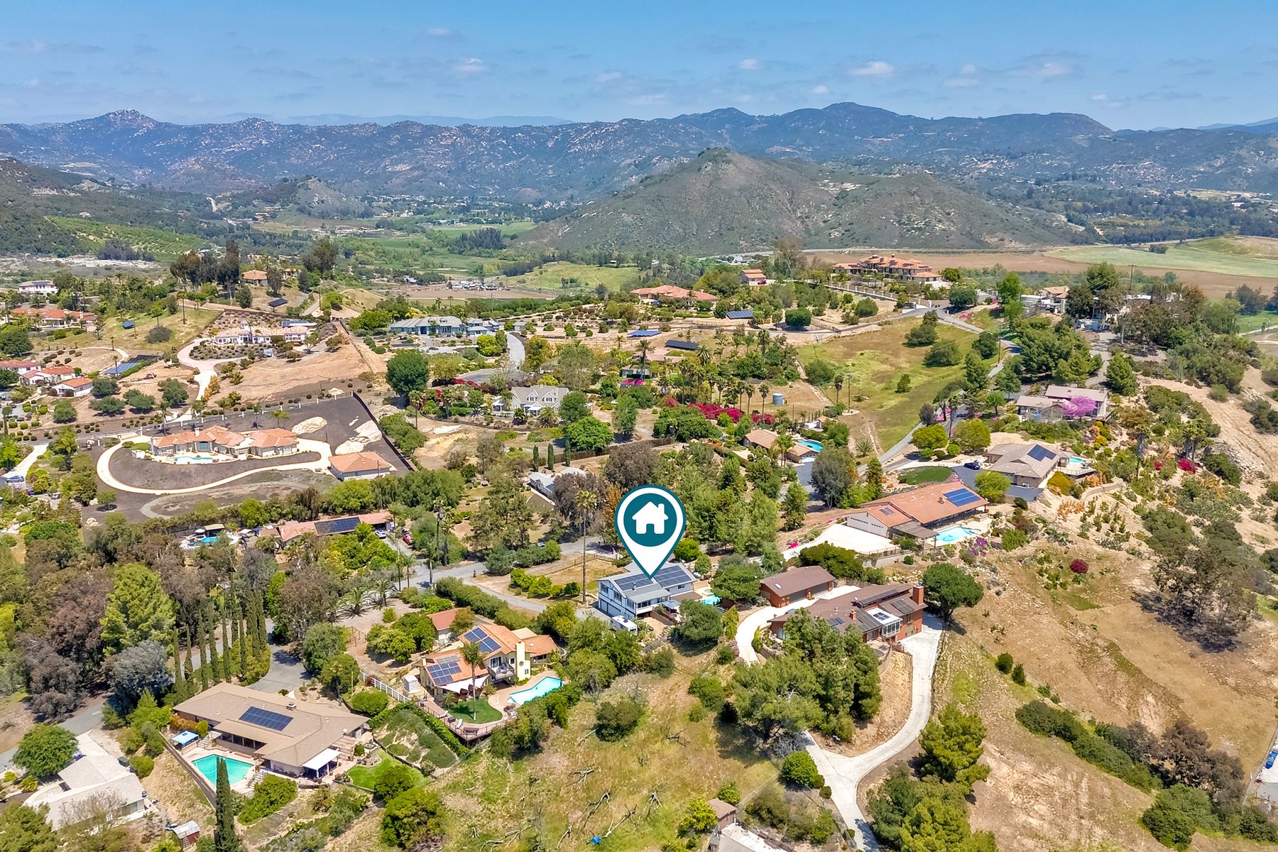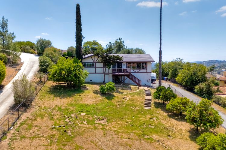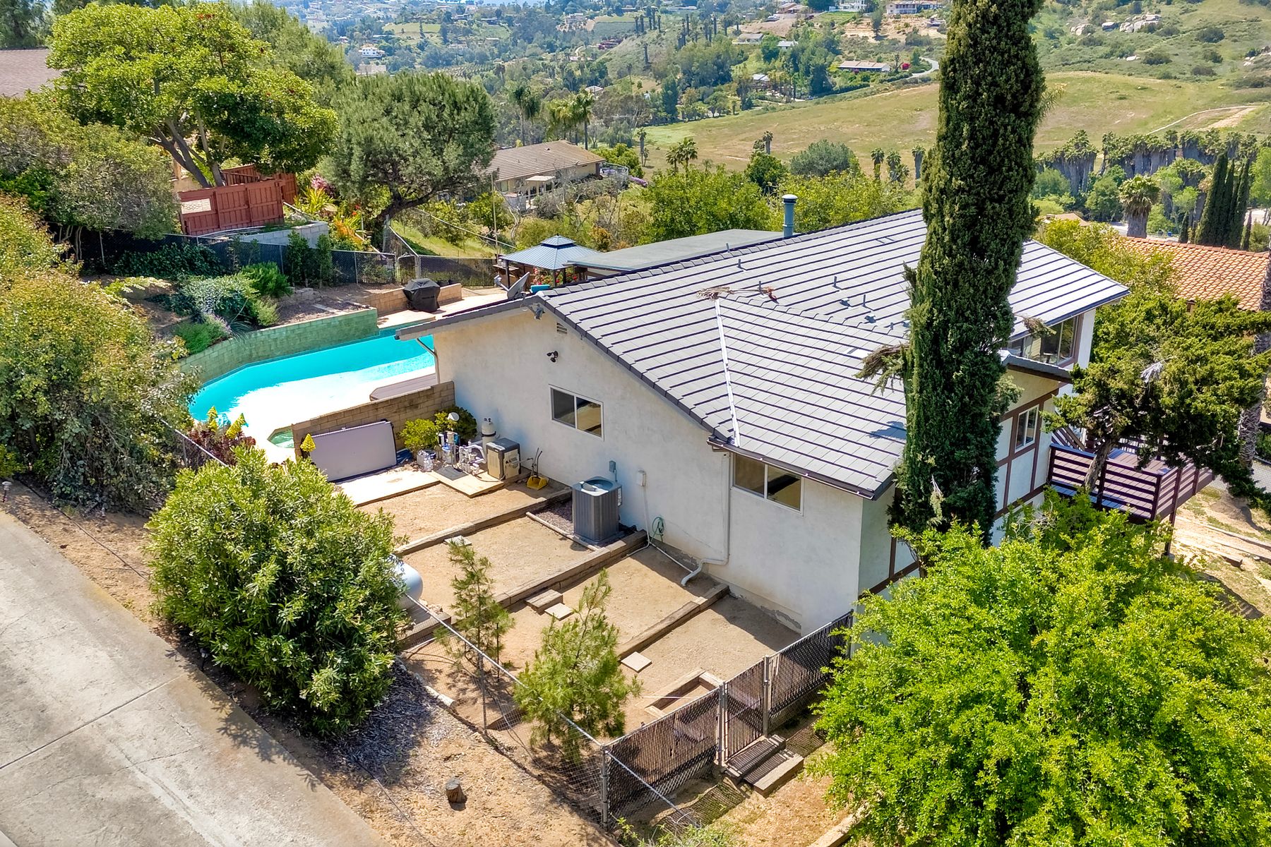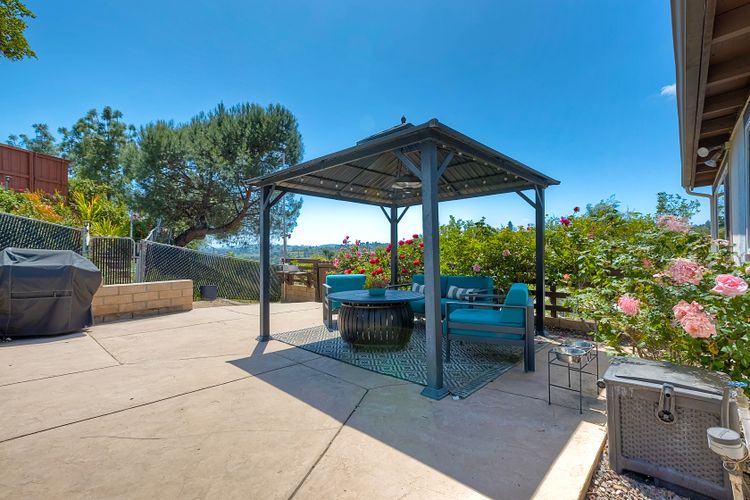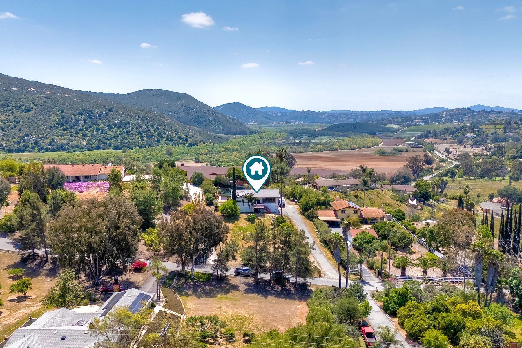 Breathtaking Views and Modern Comfort in San Pasqual Valley! Welcome to this stunning solar owned 5-bedroom, 3-bathroom home perched above the picturesque San Pasqual Valley in Escondido. Nestled on a spacious half-acre lot, this elevated property offers single story living, privacy, serenity and panoramic views that will take your breath away. As you ascend the steps to the inviting second-story entry, you’re greeted by a generous front deck—perfect for morning coffee or sunset gatherings—overlooking a lush, fully fenced yard with mature fruit trees. Inside, the light-filled great room boasts expansive windows, luxury vinyl plank flooring, and a cozy freestanding fireplace, all designed to highlight the incredible scenery and create a relaxing atmosphere. The heart of the home is the newly remodeled kitchen, featuring sleek stainless-steel appliances, crisp white cabinetry, abundant counter space and a large island with seating and extra storage. Whether you are entertaining or enjoying a quiet evening, this open-concept space is both functional and stylish. A versatile bonus room off the main living area makes an ideal home office, with sliding glass doors that open to a back deck, plus an adjacent bedroom for added flexibility. Retreat to the spacious primary suite, where soft, calming tones, dual barn door closets, and large windows create a peaceful haven. The private en-suite bath is beautifully designed for relaxation and convenience. Two additional bedrooms share a chic, updated bath with a double vanity and deep soaking tub/shower combo as well as a conveniently located laundry room. A private guest room, beautifully renovated full bath, and a mudroom with direct access to the 3-car garage and added storage complete the interior. Step outside and enjoy your own backyard paradise—complete with a sparkling pool and jacuzzi, expansive entertaining deck, cozy gazebo, and stunning landscaping framed by a charming brick retaining wall. And of course, the view... Simply incredible! Owned Solar! Additional features include RV parking with full water and power hookups, ample driveway space, and a long list of thoughtful upgrades—available upon request. Don’t miss this rare opportunity to own a slice of San Pasqual Valley paradise!