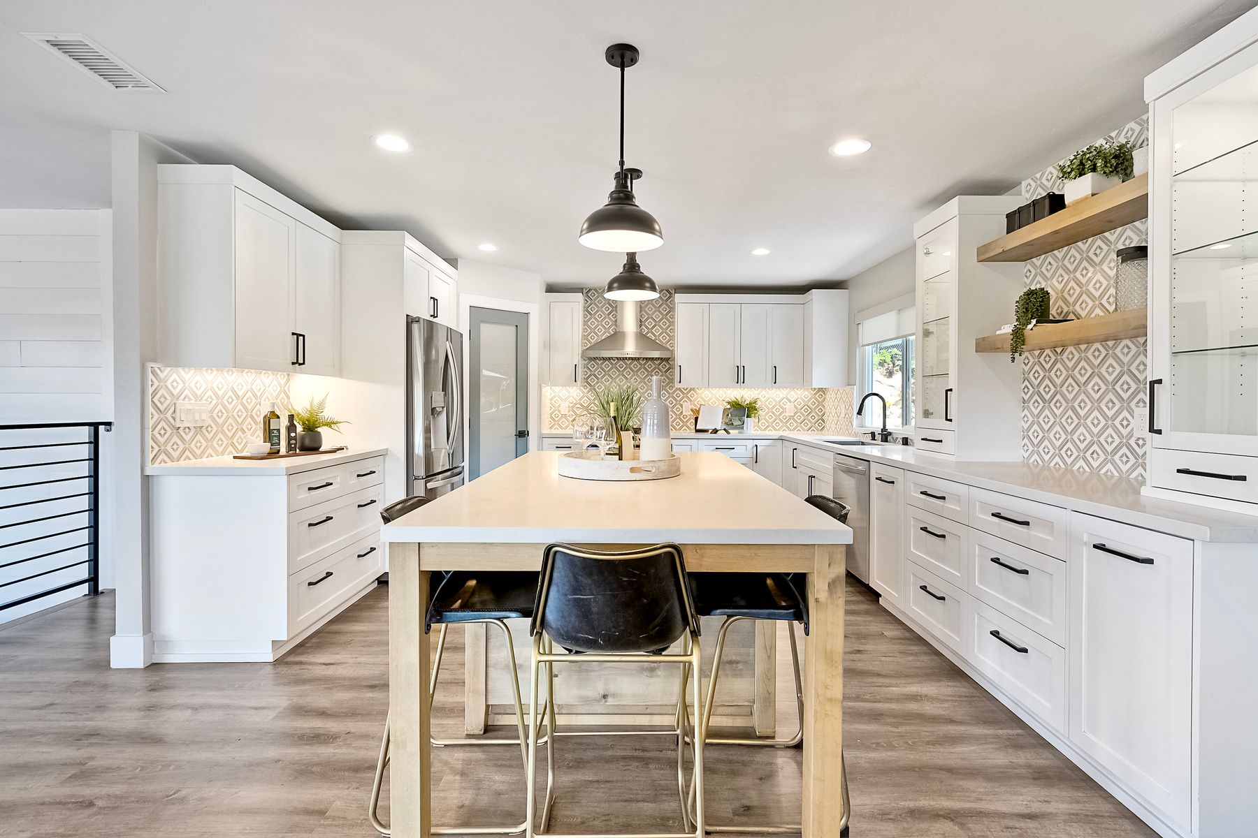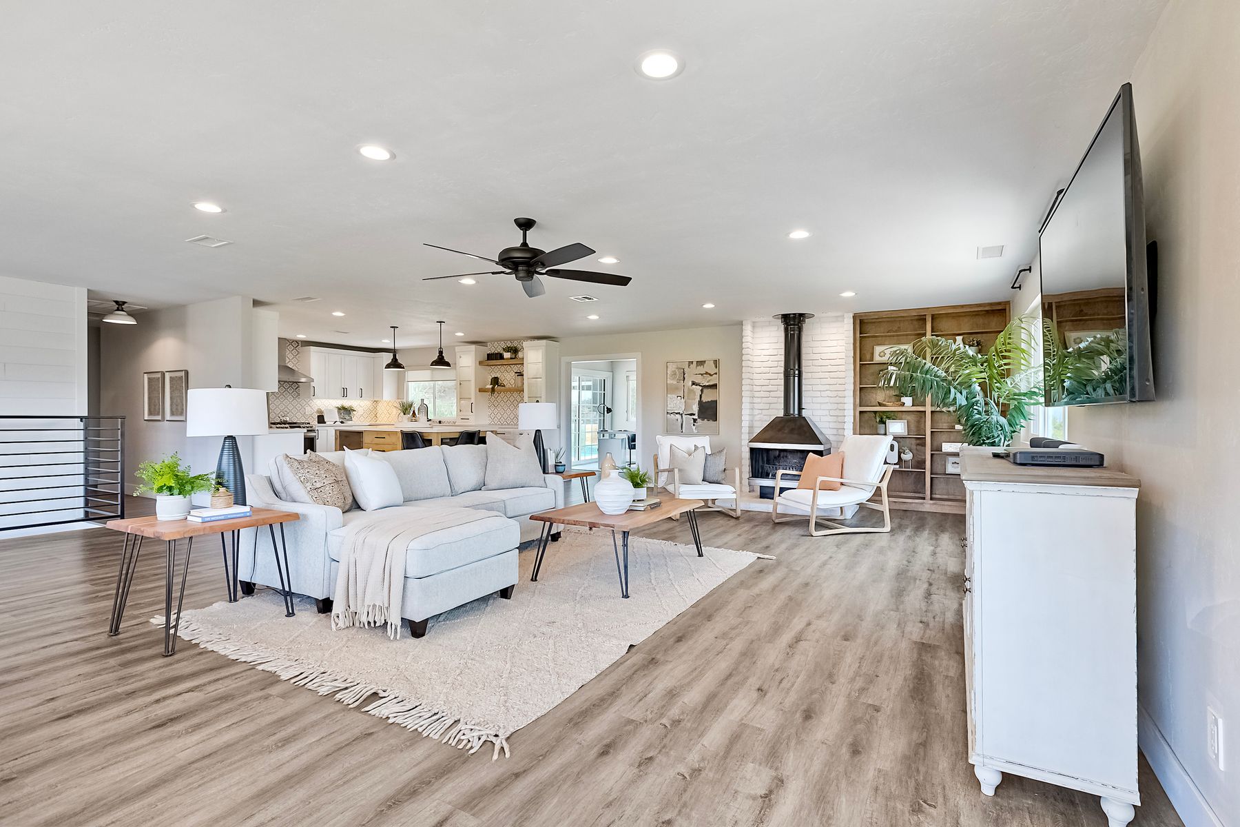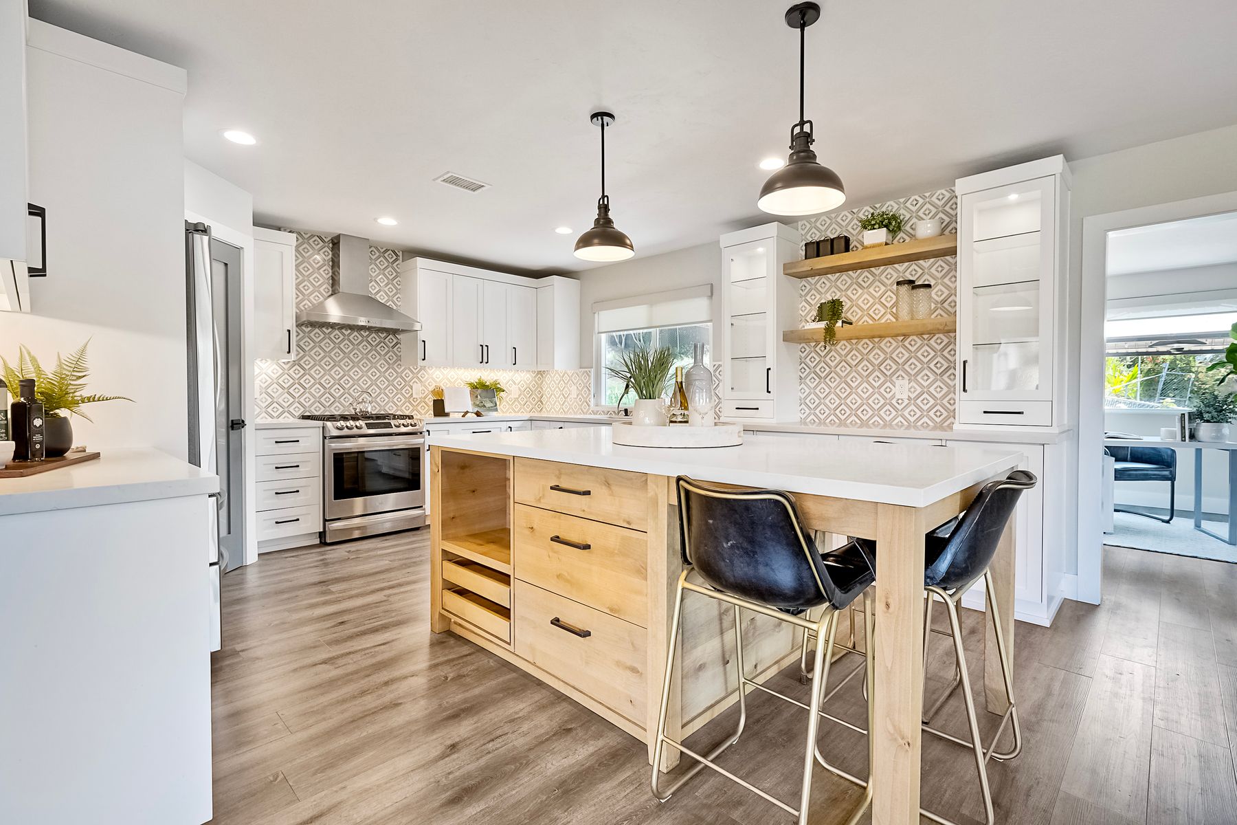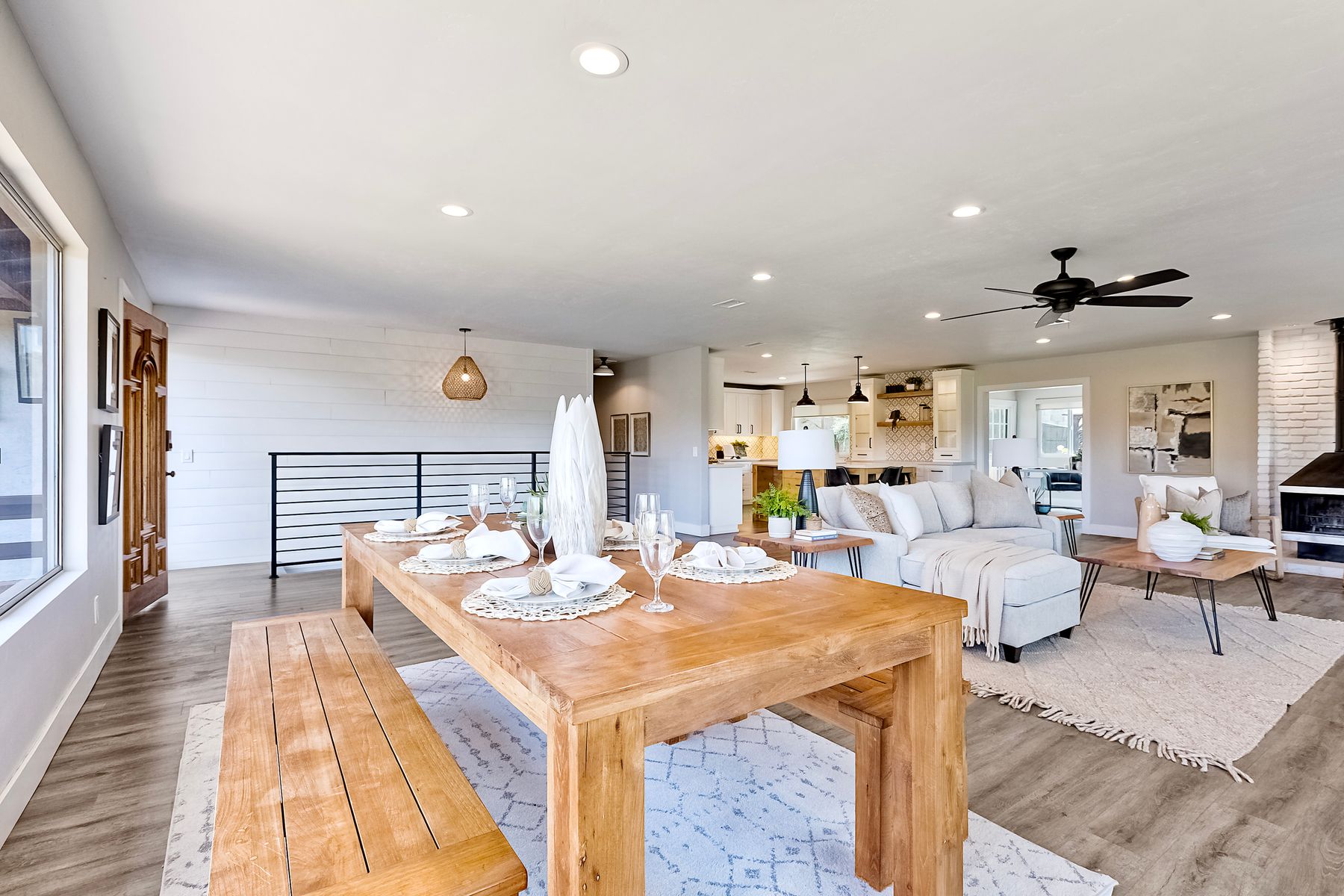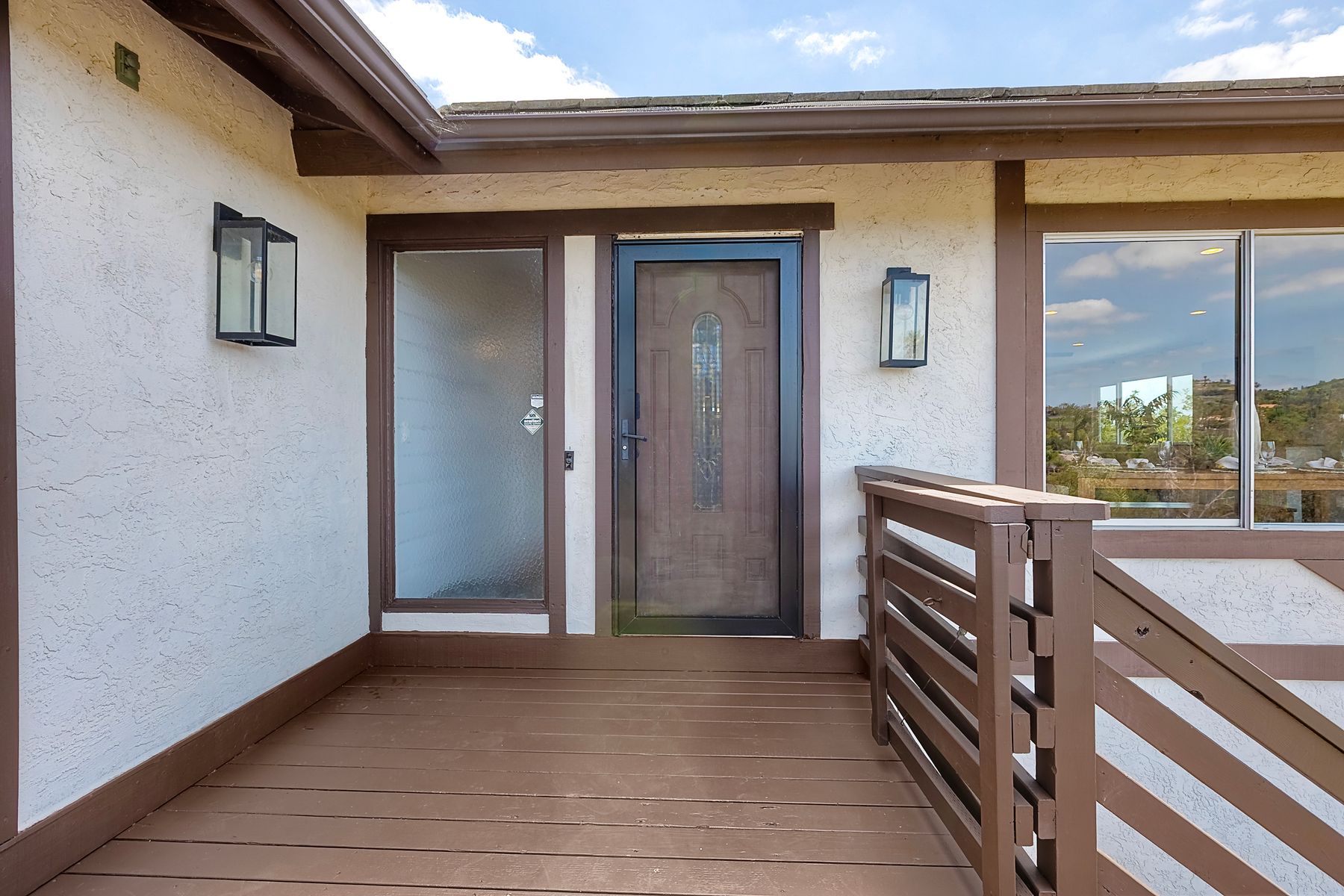 Breathtaking Views and Modern Comfort in San Pasqual Valley! Welcome to this stunning solar owned 5-bedroom, 3-bathroom home perched above the picturesque San Pasqual Valley in Escondido. Nestled on a spacious half-acre lot, this elevated property offers single story living, privacy, serenity and panoramic views that will take your breath away. As you ascend the steps to the inviting second-story entry, you’re greeted by a generous front deck—perfect for morning coffee or sunset gatherings—overlooking a lush, fully fenced yard with mature fruit trees. Inside, the light-filled great room boasts expansive windows, luxury vinyl plank flooring, and a cozy freestanding fireplace, all designed to highlight the incredible scenery and create a relaxing atmosphere. The heart of the home is the newly remodeled kitchen, featuring sleek stainless-steel appliances, crisp white cabinetry, abundant counter space and a large island with seating and extra storage. Whether you are entertaining or enjoying a quiet evening, this open-concept space is both functional and stylish. A versatile bonus room off the main living area makes an ideal home office, with sliding glass doors that open to a back deck, plus an adjacent bedroom for added flexibility. Retreat to the spacious primary suite, where soft, calming tones, dual barn door closets, and large windows create a peaceful haven. The private en-suite bath is beautifully designed for relaxation and convenience. Two additional bedrooms share a chic, updated bath with a double vanity and deep soaking tub/shower combo as well as a conveniently located laundry room. A private guest room, beautifully renovated full bath, and a mudroom with direct access to the 3-car garage and added storage complete the interior. Step outside and enjoy your own backyard paradise—complete with a sparkling pool and jacuzzi, expansive entertaining deck, cozy gazebo, and stunning landscaping framed by a charming brick retaining wall. And of course, the view... Simply incredible! Owned Solar! Additional features include RV parking with full water and power hookups, ample driveway space, and a long list of thoughtful upgrades—available upon request. Don’t miss this rare opportunity to own a slice of San Pasqual Valley paradise!