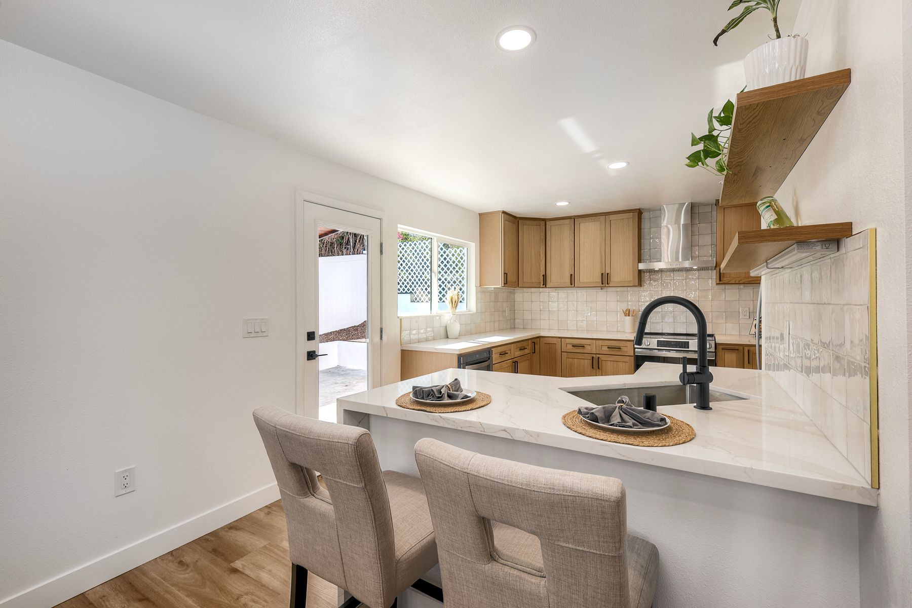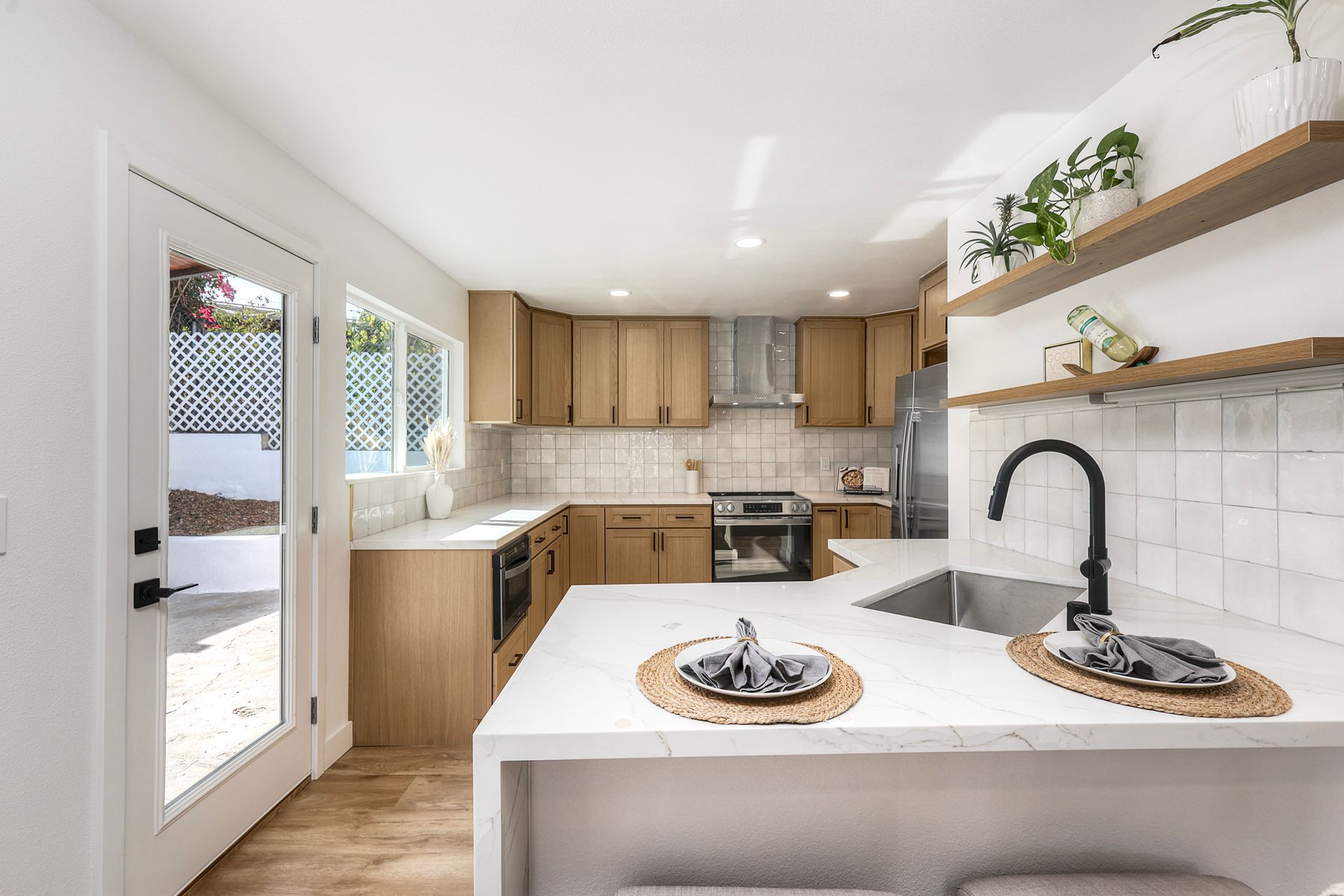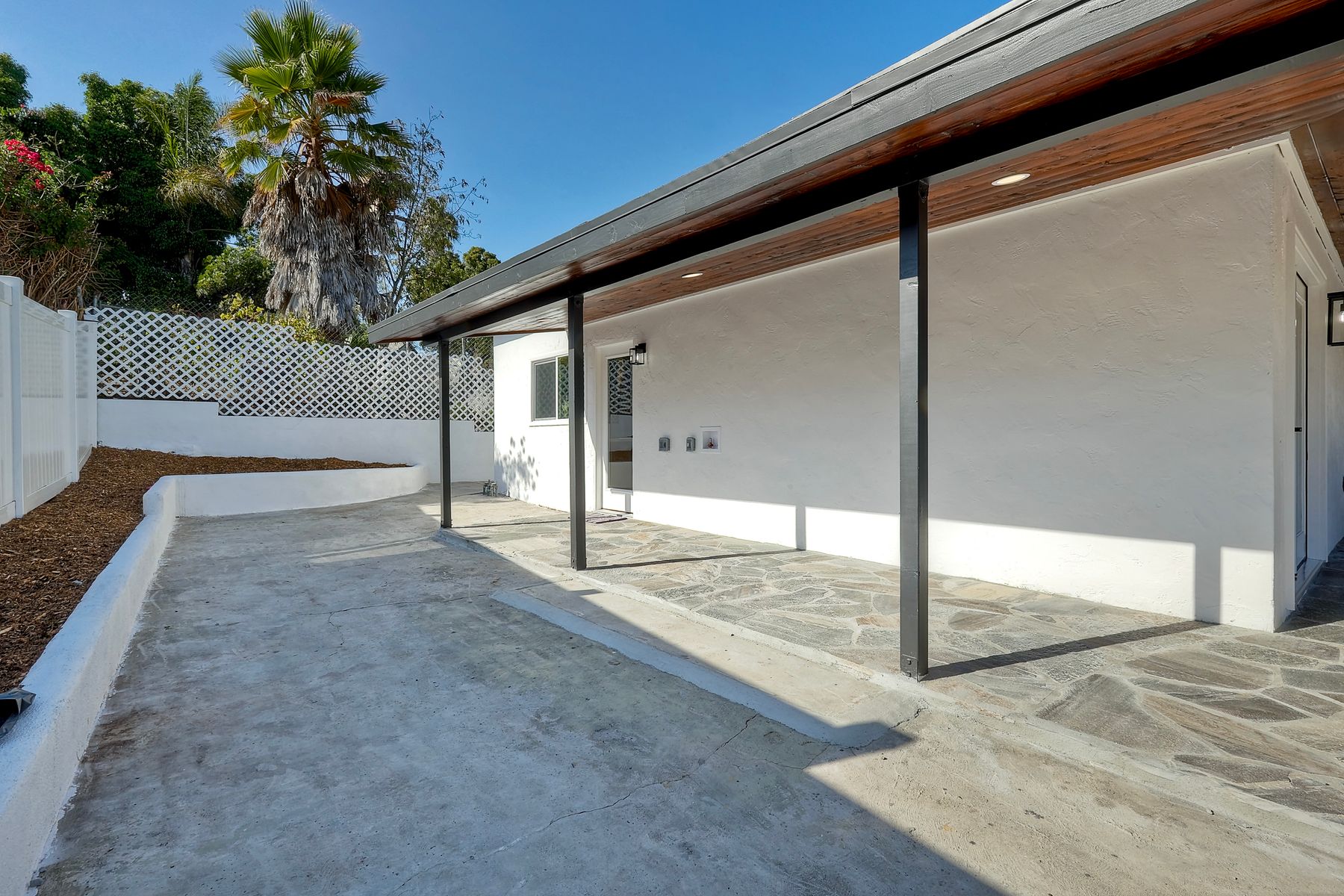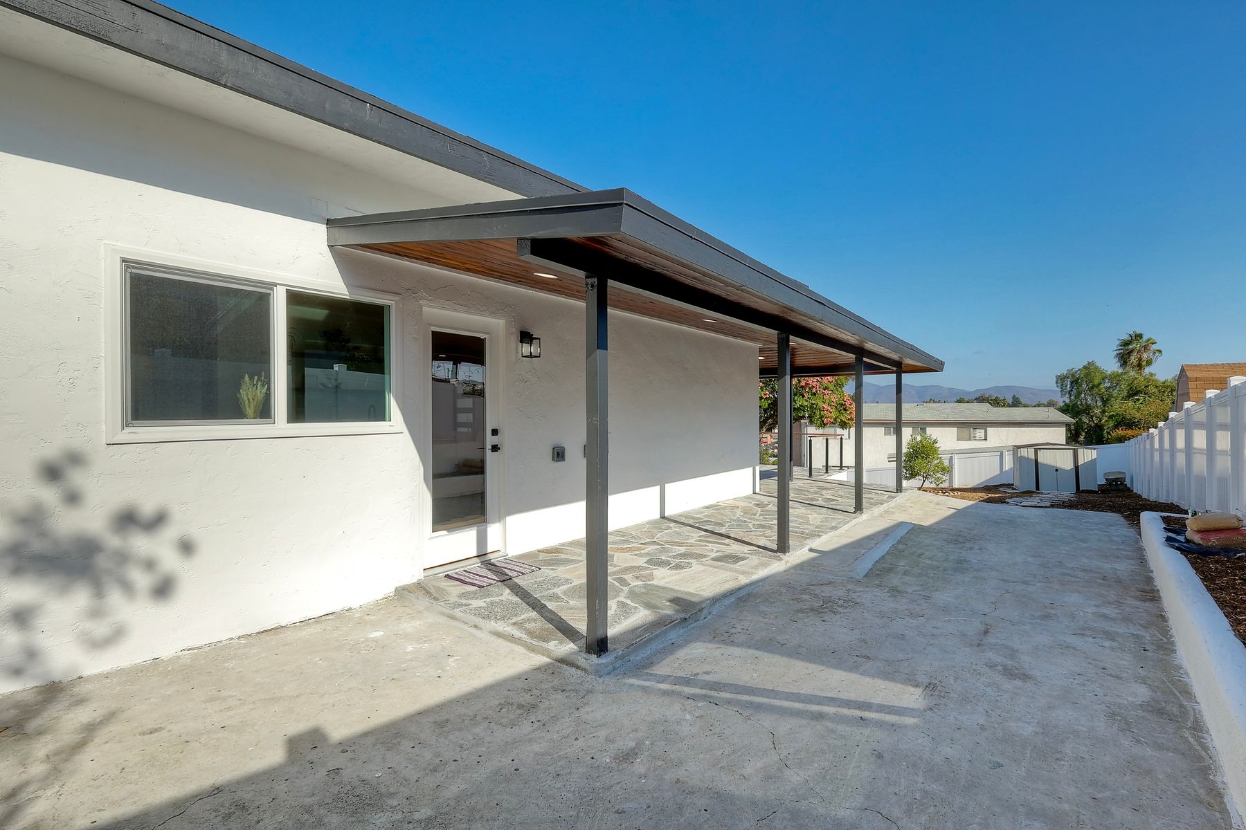 Discover this beautifully renovated, turnkey home where pride of ownership shines inside and out. Every detail has been updated—from new paint, trim, and doors to modern vinyl flooring and energy-efficient dual-pane windows. The open layout fills with natural light and flows into a stunning kitchen featuring quartz countertops, shaker cabinets, tile backsplash, and a full suite of new stainless steel appliances, including a slide-in range, built-in microwave, dishwasher, and refrigerator with water and ice. Both bathrooms offer floor-to-ceiling tile, new vanities, mirrors, and bathtub with sliding glass enclosure. Each bedroom enjoys its own mini-split system for personalized comfort, plus wood-framed mirrored closet doors. Step outside to a massive flagstone patio perfect for entertaining or relaxing with panoramic city and mountain views. Located on a quiet street in the heart of Lemon Grove—just minutes to freeways, shopping, schools, and downtown San Diego—this property combines suburban tranquility with unbeatable convenience. The driveway and street are scheduled to be paved within the week. Pictures of the driveway have been digitally enhanced to show what the driveway will look like once completed.