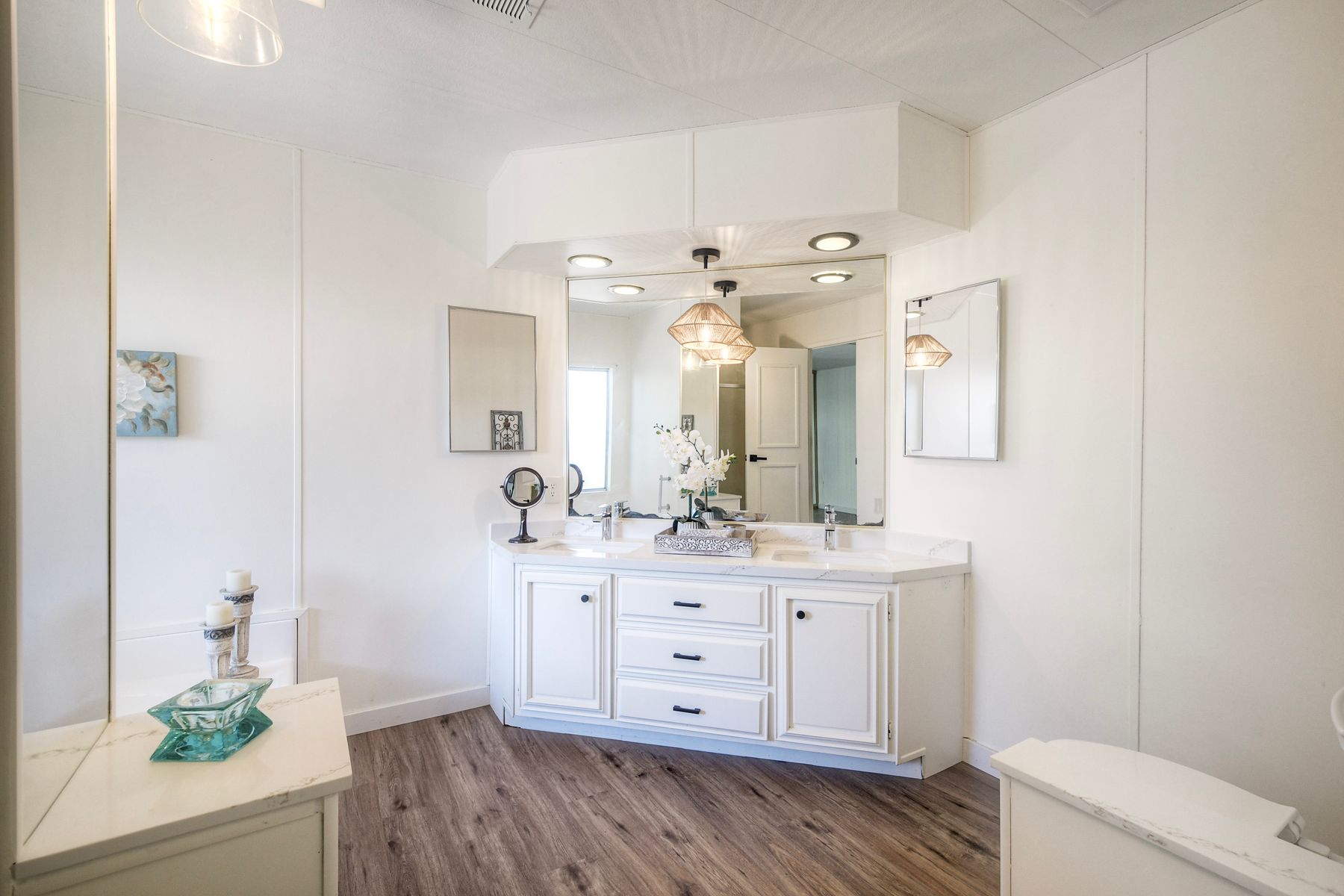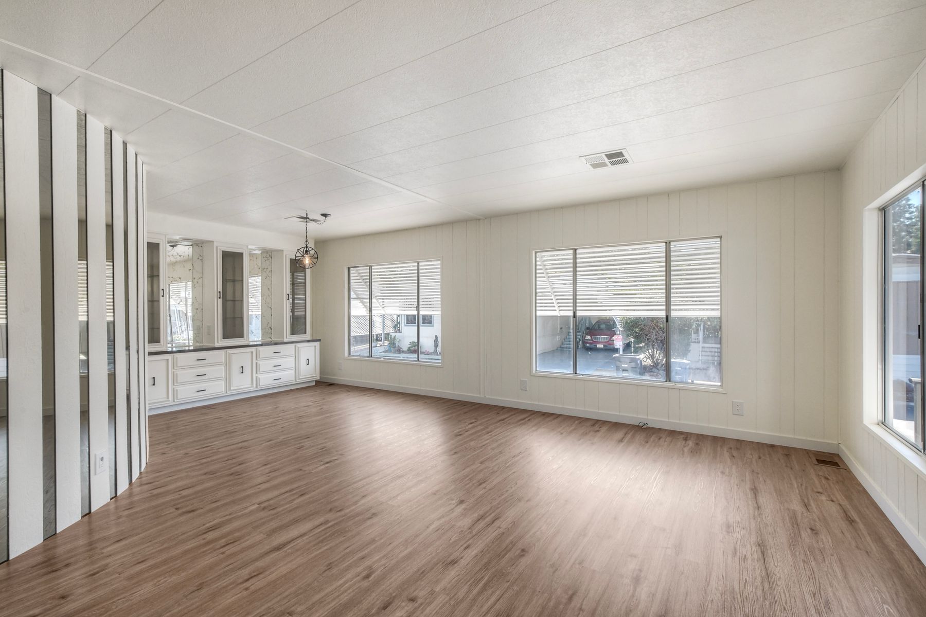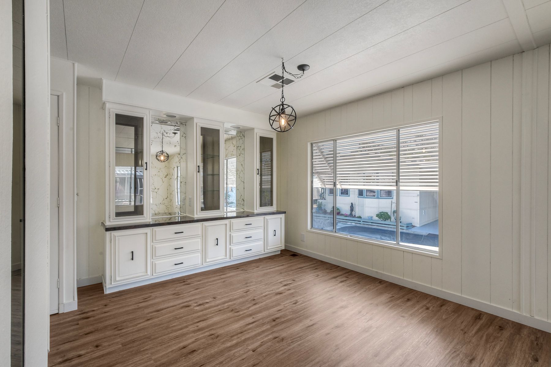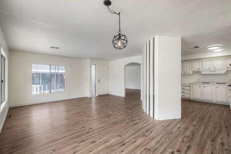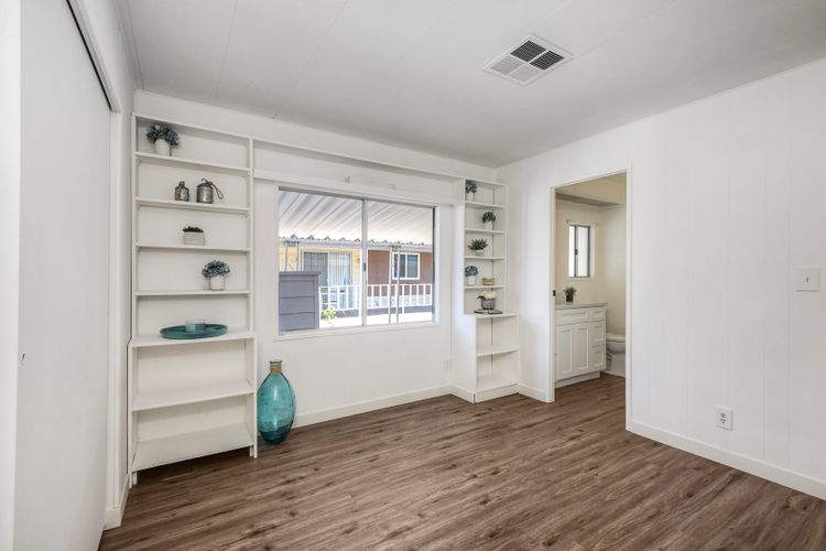 Very rare and sought after triple wide mobile home in Green Valley Mobile Home Park: a premium 55+ community. Location is ideal as it is situated on the outskirts of the complex and backed by a lovely scenic creek. This unit has been refreshed with new paint inside and out, new luxury vinyl plank flooring, brand new stainless steel gas oven, light fixtures, countertops, sinks, facets, water heater, primary bedroom sliding door and more. Step into two very large and separate living areas that open to the spacious kitchen. This unit is flooded with natural light and open flowing concept. Walk thru your new primary bedroom slider to your vast back yard patio overlooking your very own protected Creek Preserve. Your covered front patio is also a lovely area to relax in comfort as your enjoy the coastal breezes. Carport comes with a small storage shed and is large enough to easily accommodate 2 or more cars. The Green Valley community provides ample amenities such as a pool, hot tub, outside showers, a clubhouse with a plethora of activities to engage in as well as covering your water, sewer and trash in the monthly space rent. This home offers the perfect blend of space, comfort, community and is conveniently located close to the 78 freeway, shopping, restaurants, health care and only minutes from the coast. Property is on registration ONLY saving you thousands because you pay no property tax. Enjoy Coastal Southern California living at a price you can afford.