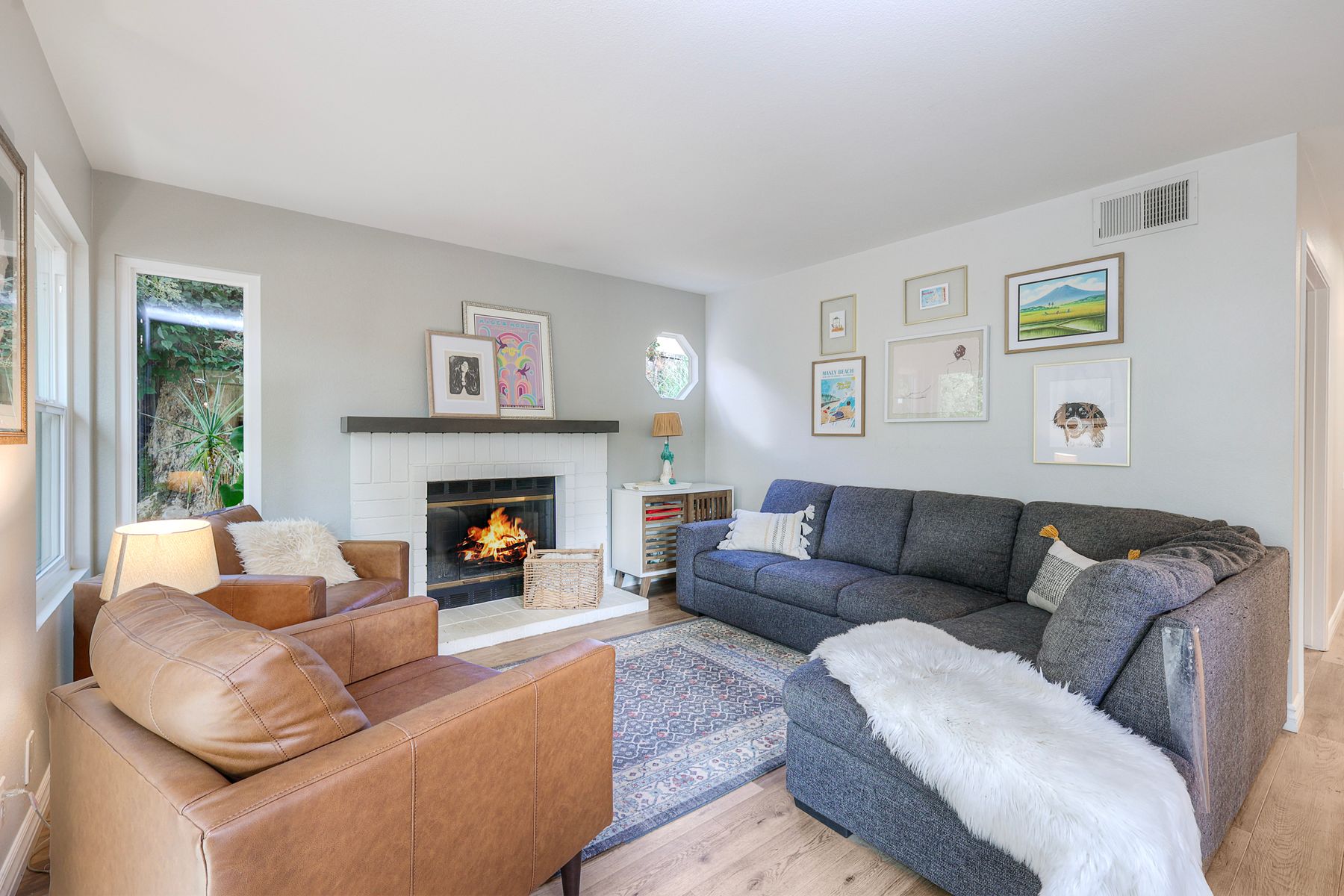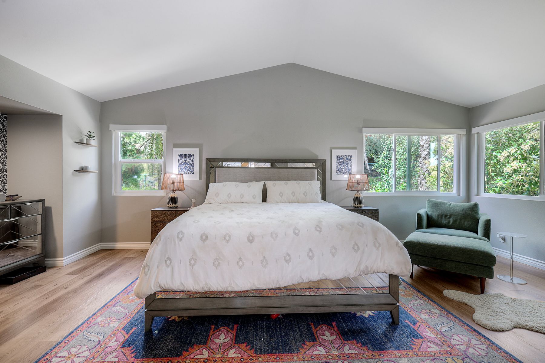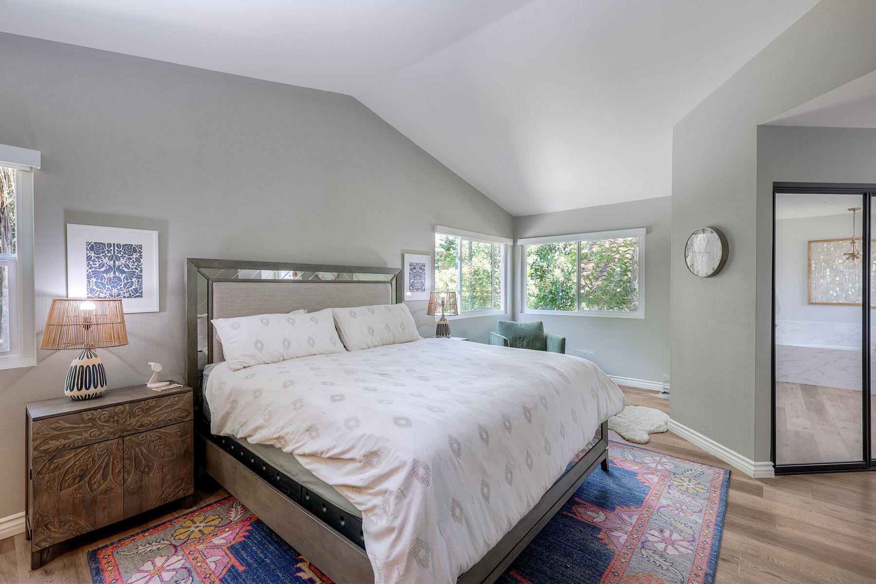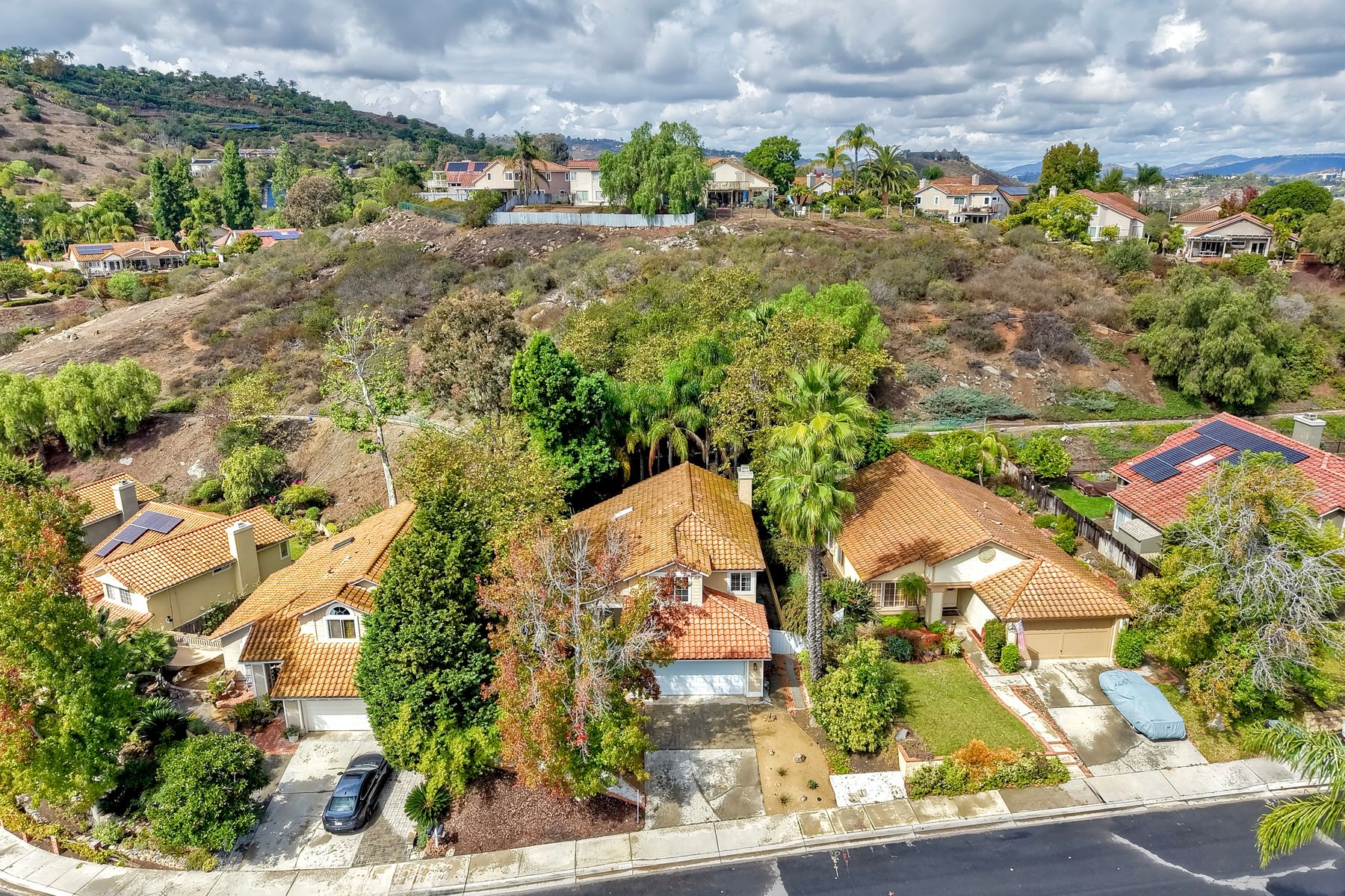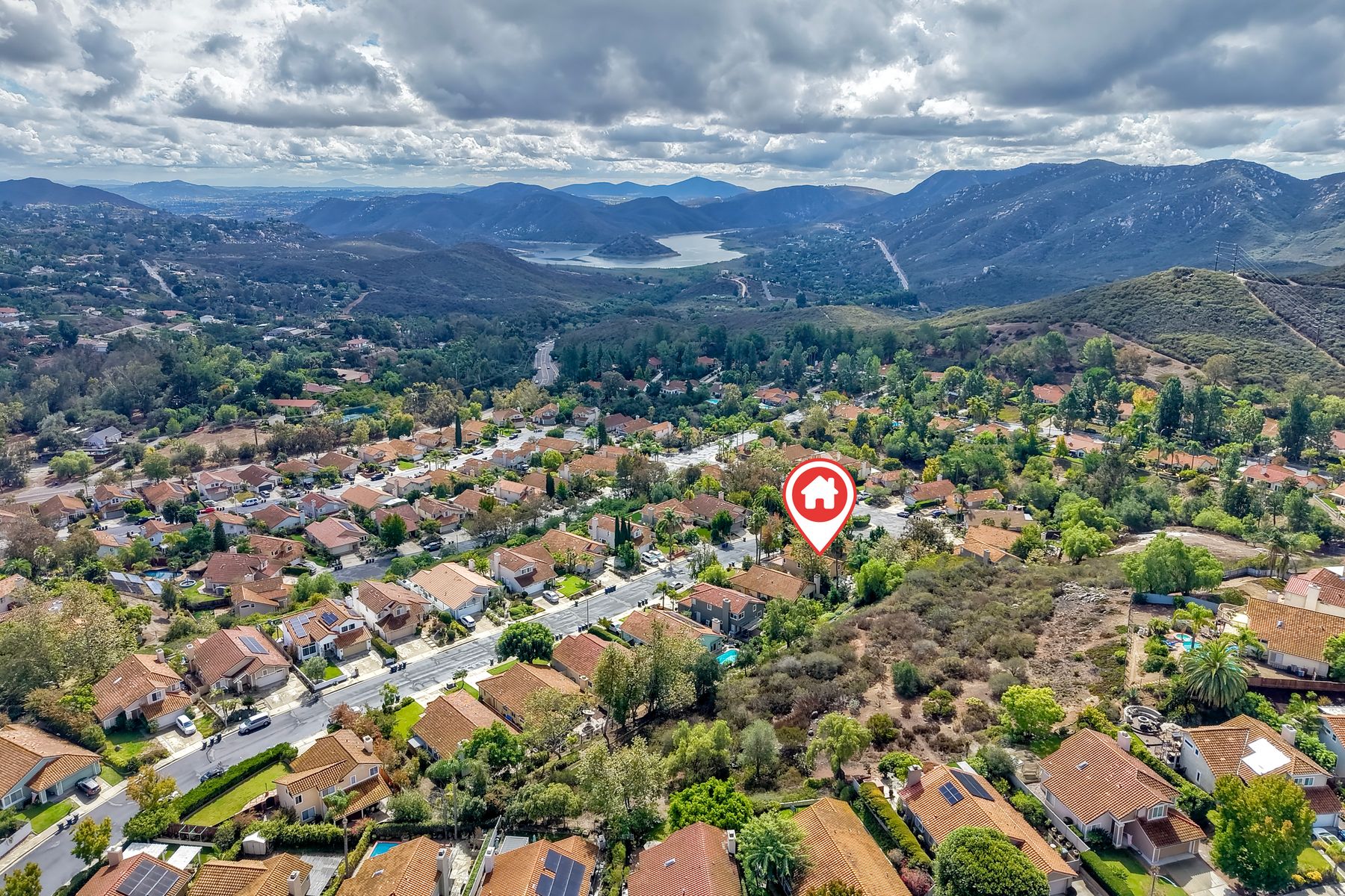 Near Lake Hodges this 4 bed/3 bath Summercreek home offers 2,324 square feet of well designed living space. As you enter, you’ll be impressed by the open, airy living/dining room with vaulted ceilings, plantation shutters, and dramatic staircase with a skylight above that provides an abundance of natural light. The kitchen boasts high ceilings with windows above the cabinets that brighten the space. A deep single basin sink overlooks the peaceful backyard, while the adjacent breakfast nook, framed by bay windows, offers a lovely spot to enjoy your morning coffee. The spacious family room, complete with a cozy fireplace, is perfect for gatherings. A sliding door to the backyard ensures this space is filled with light, making it an ideal spot for family gatherings or quiet evenings at home. Conveniently located on the main floor is 1 bedroom and a full bath, providing versatile options for a guest room, office, or multi-generational living space. Upstairs, the primary suite features vaulted ceilings and multiple windows. The ensuite bathroom includes a double sink vanity, soaking tub, and separate shower. Two additional bedrooms with ceiling fans and a full bathroom with a tub/shower combo complete the upper level. Additional highlights of this home include a 2-car garage, newer AC and furnace, a newer roof, updated windows, and an upgraded electrical panel. With its flexible floor plan, ample natural light, and prime location near Lake Hodges trails and shopping, this home is a true gem. Don’t miss your chance to make it yours!