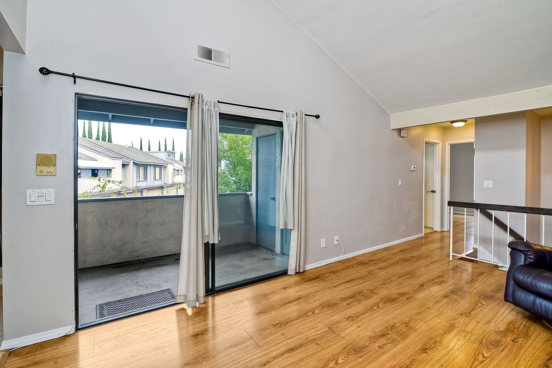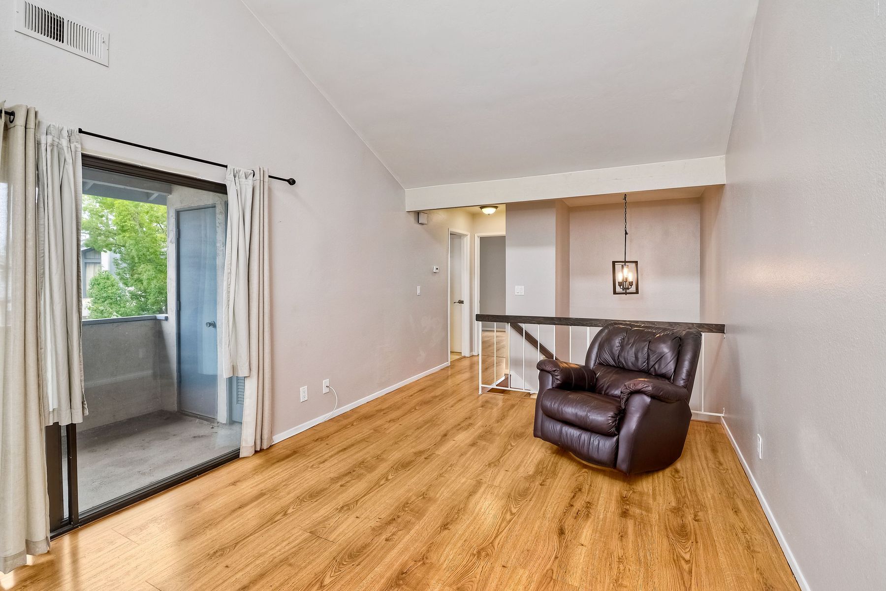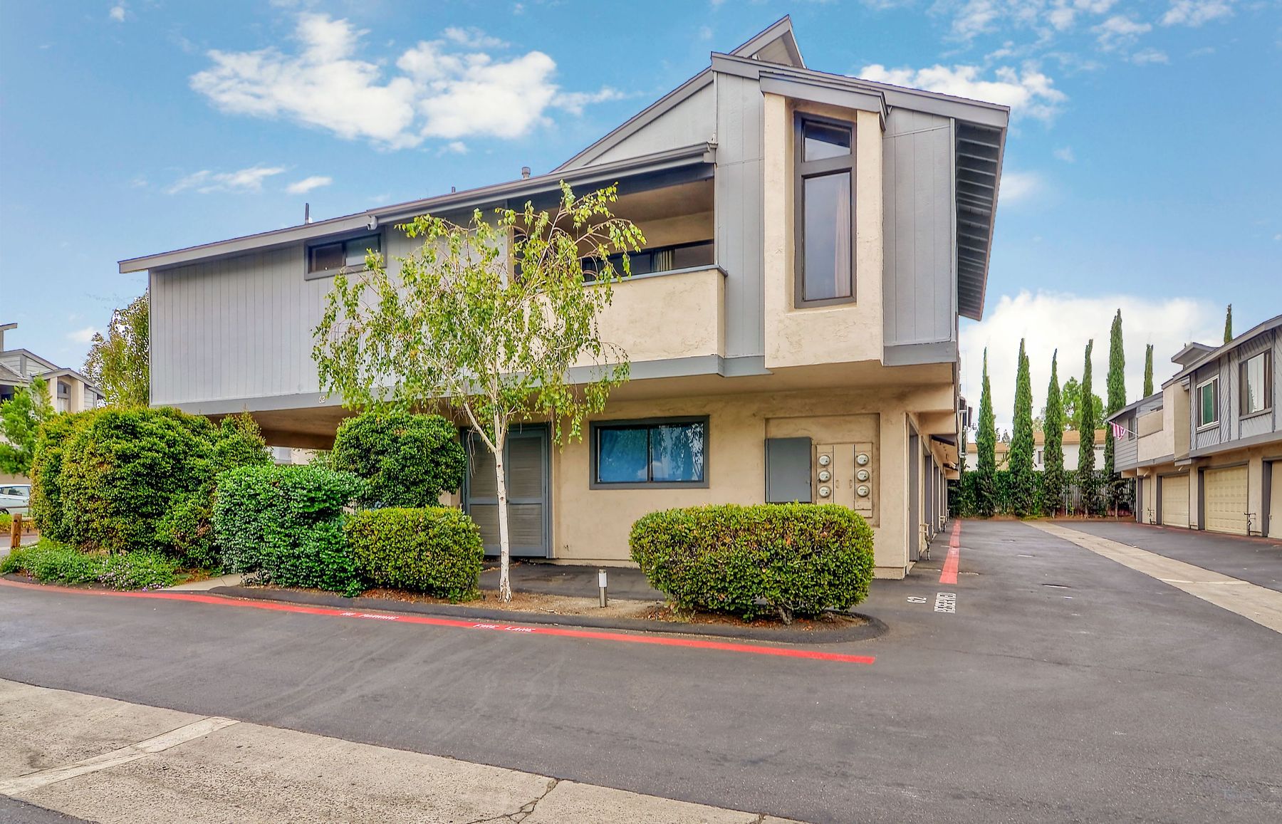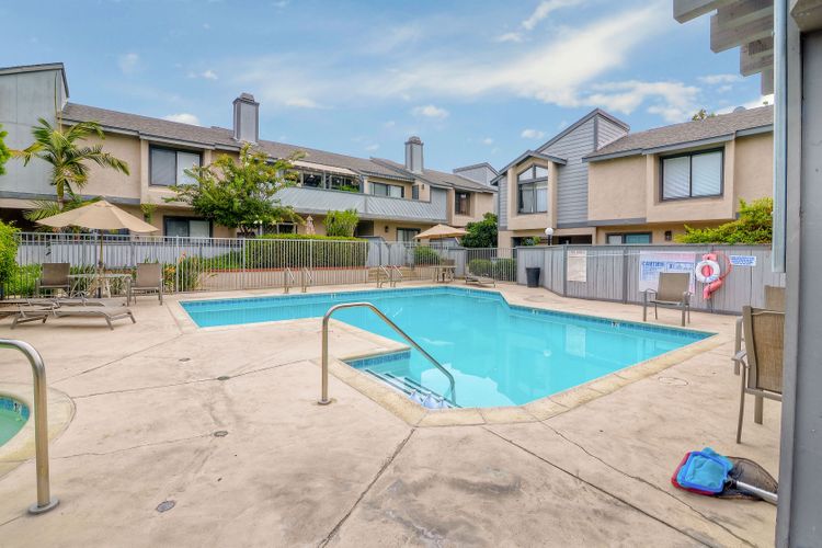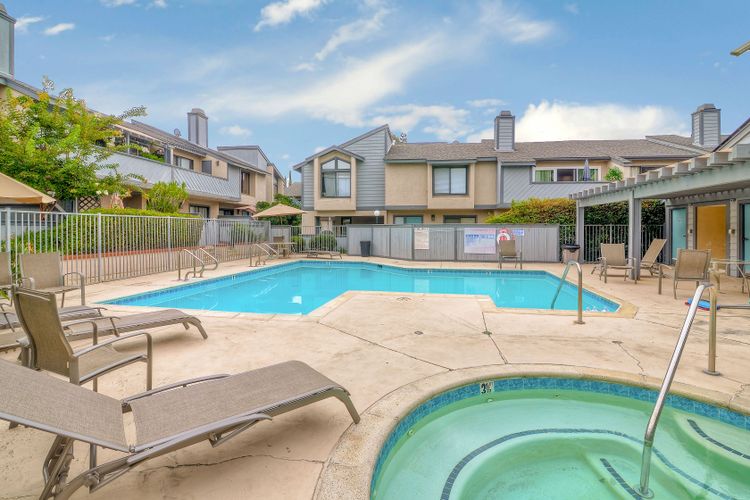Corner unit Townhouse in a well-maintained complex, no one above or below, with many upgrades. Vaulted ceilings in the living room and bedroom. Private upstairs balcony and a large ground floor patio. Attached 1-car garage, where the washer and dryer are and an additional covered parking space. Community pool/spa and tennis courts. Easy to get to restaurants, shopping, grocery stores etc.
