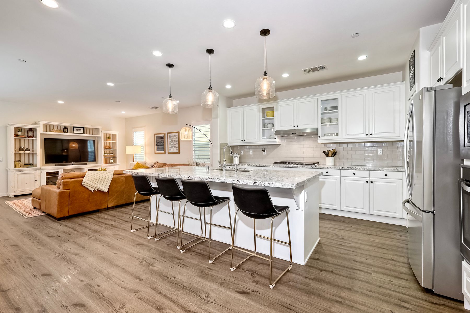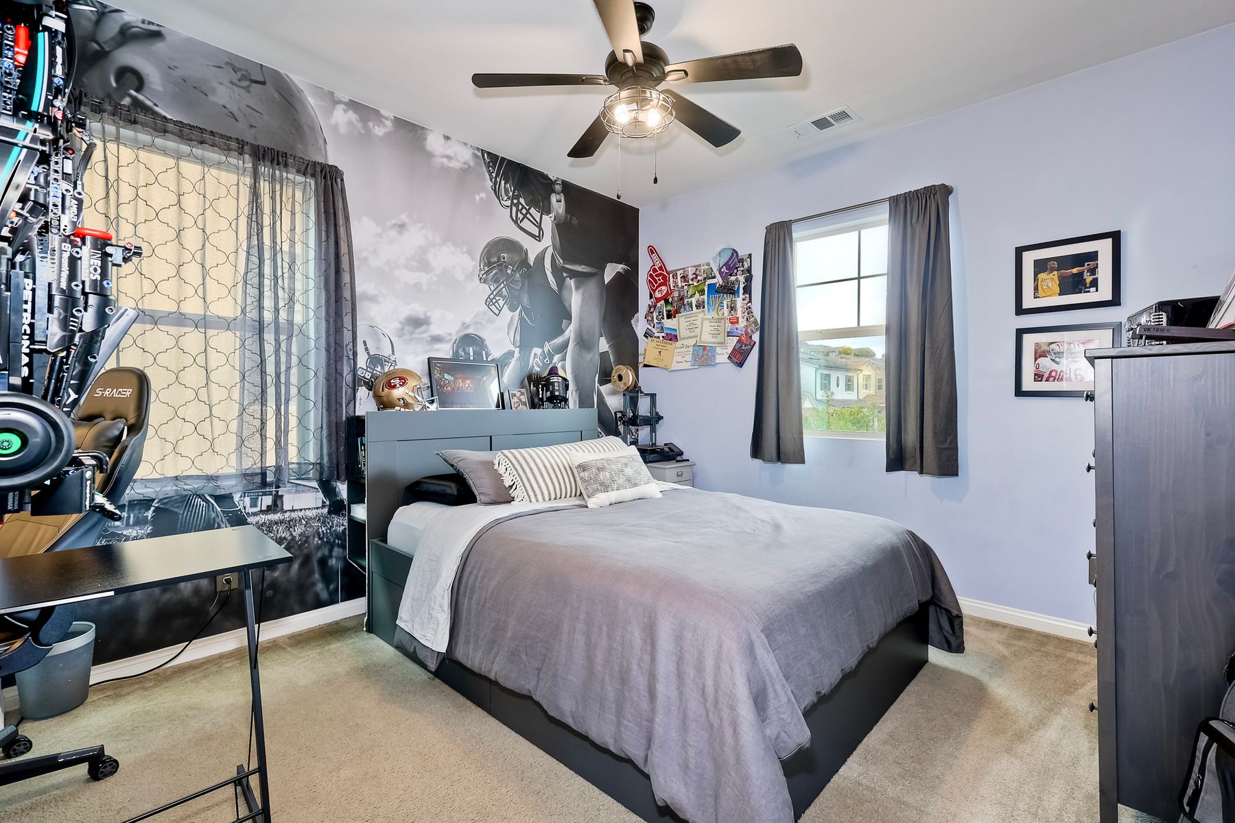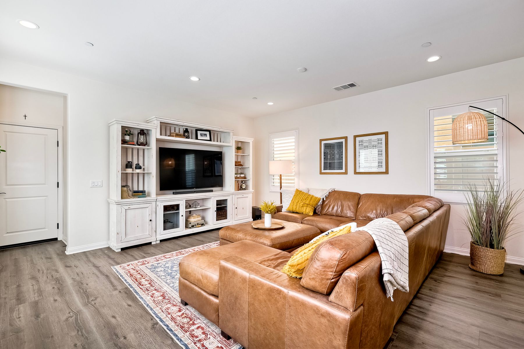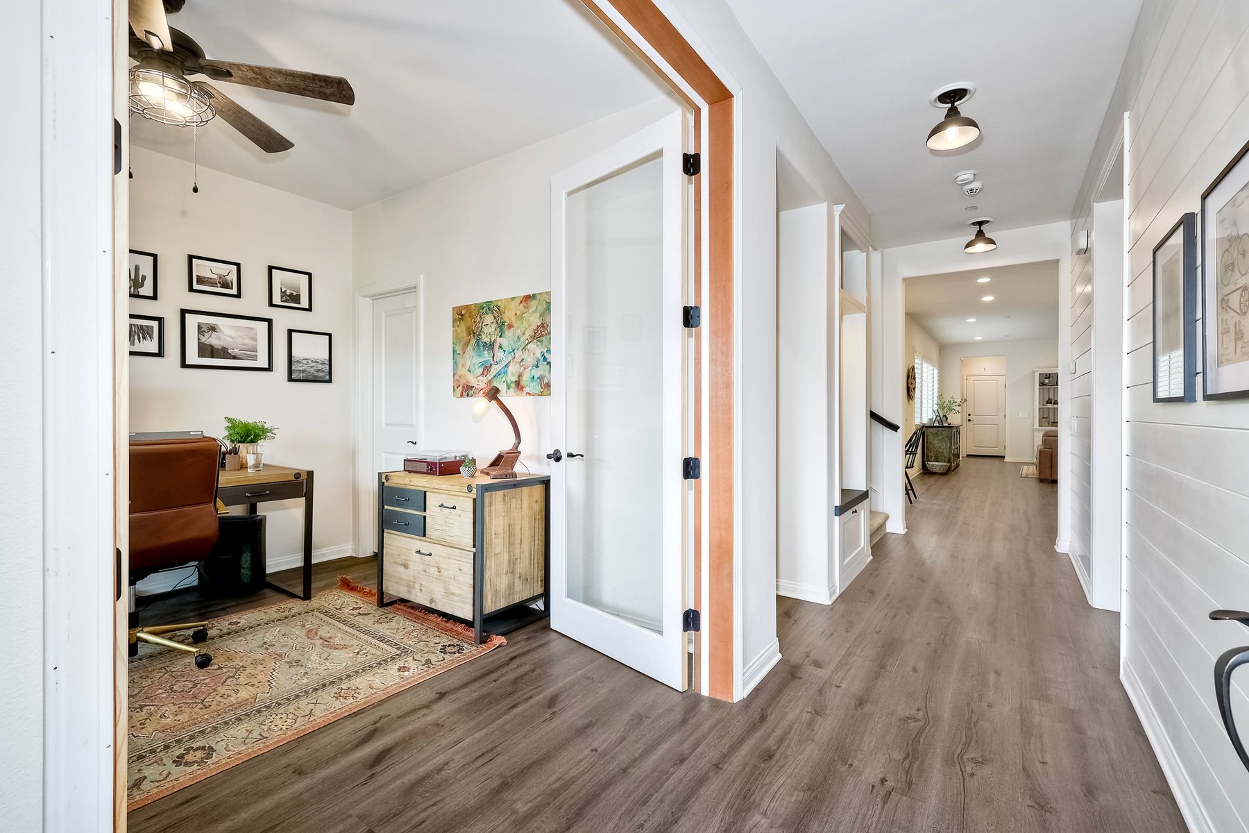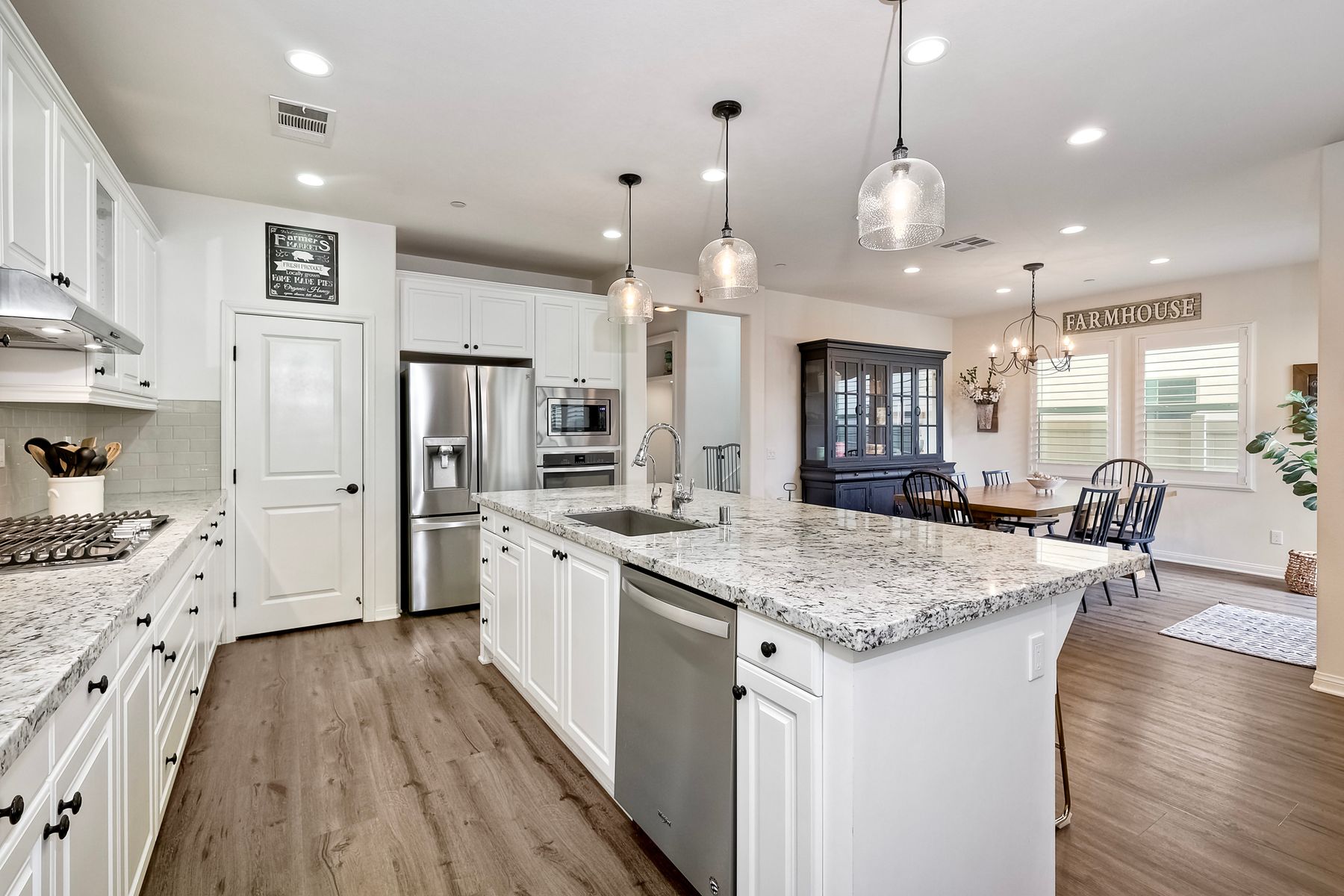 Welcome to this stunning home, a true showcase of pride of ownership that shines from the moment you arrive. The impeccable curb appeal and upgraded entry set the tone, while charming shiplap walls greet you as you step inside, offering a warm welcome and hinting at the high-end appointments you will find throughout. This home truly shows like a model. Featuring 4 bedrooms and 3.5 bathrooms, including a desirable ensuite bedroom and a dedicated office on the first floor, this efficient and well-designed layout is perfect for families and professionals alike. The primary suite is a luxurious retreat; every detail has been thoughtfully curated to enhance comfort and style. The entertainer's kitchen is a chef's delight, boasting a subway tile backsplash, walk-in pantry, and sleek finishes. Additional upgrades include wood shutters, a tankless water heater, solar panels, a water softener, and ample added storage in both the garage and laundry room. The beautifully upgraded backyard is an inviting space to relax and entertain. Located in the sought-after Harmony Grove Community, residents enjoy resort-style amenities, including an Olympic-sized swimming pool, the vibrant 4th of July Park, and scenic hiking trails. Don’t miss the opportunity to make this exceptional home yours—where quality, style, and community come together perfectly.