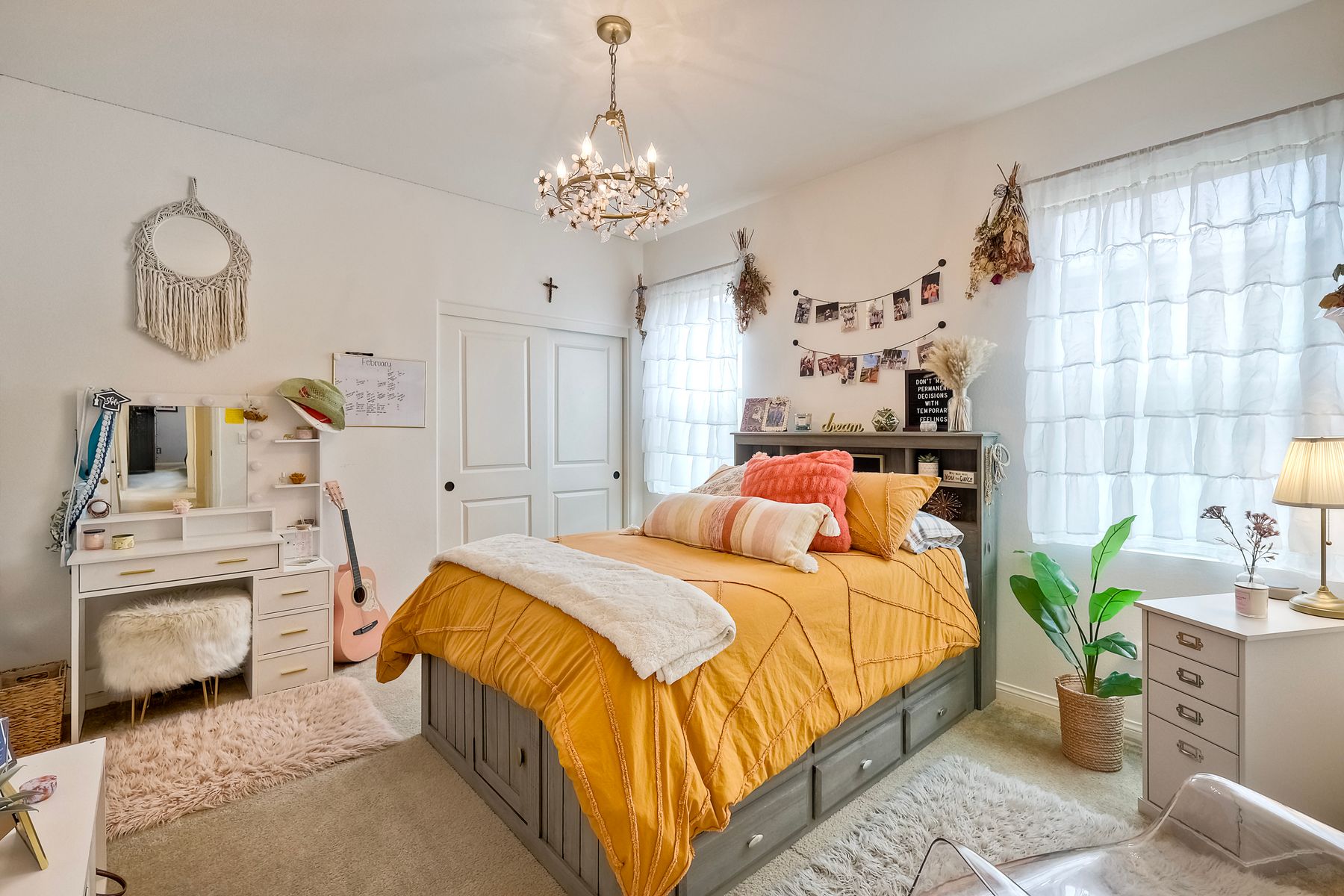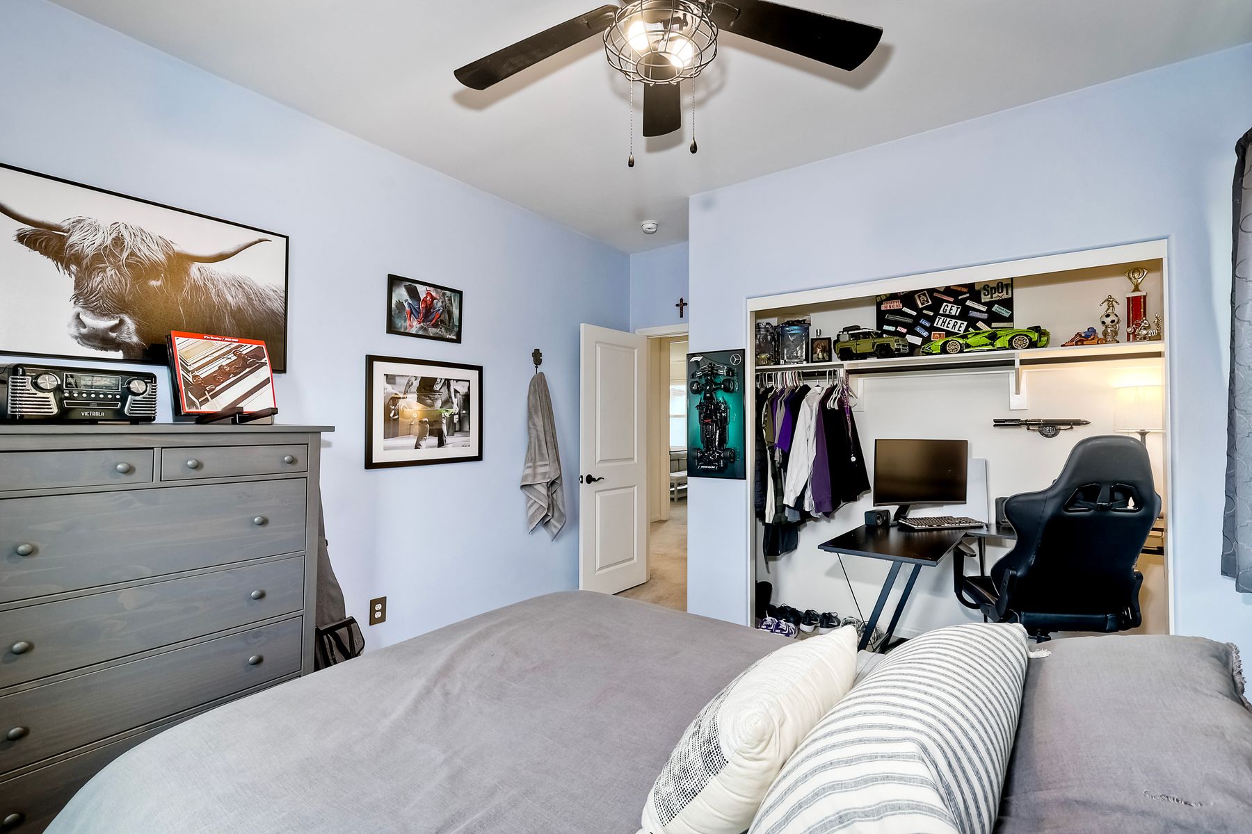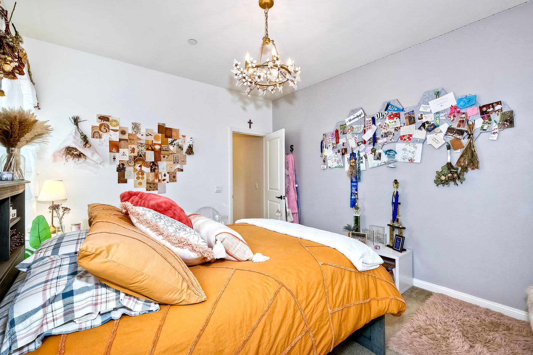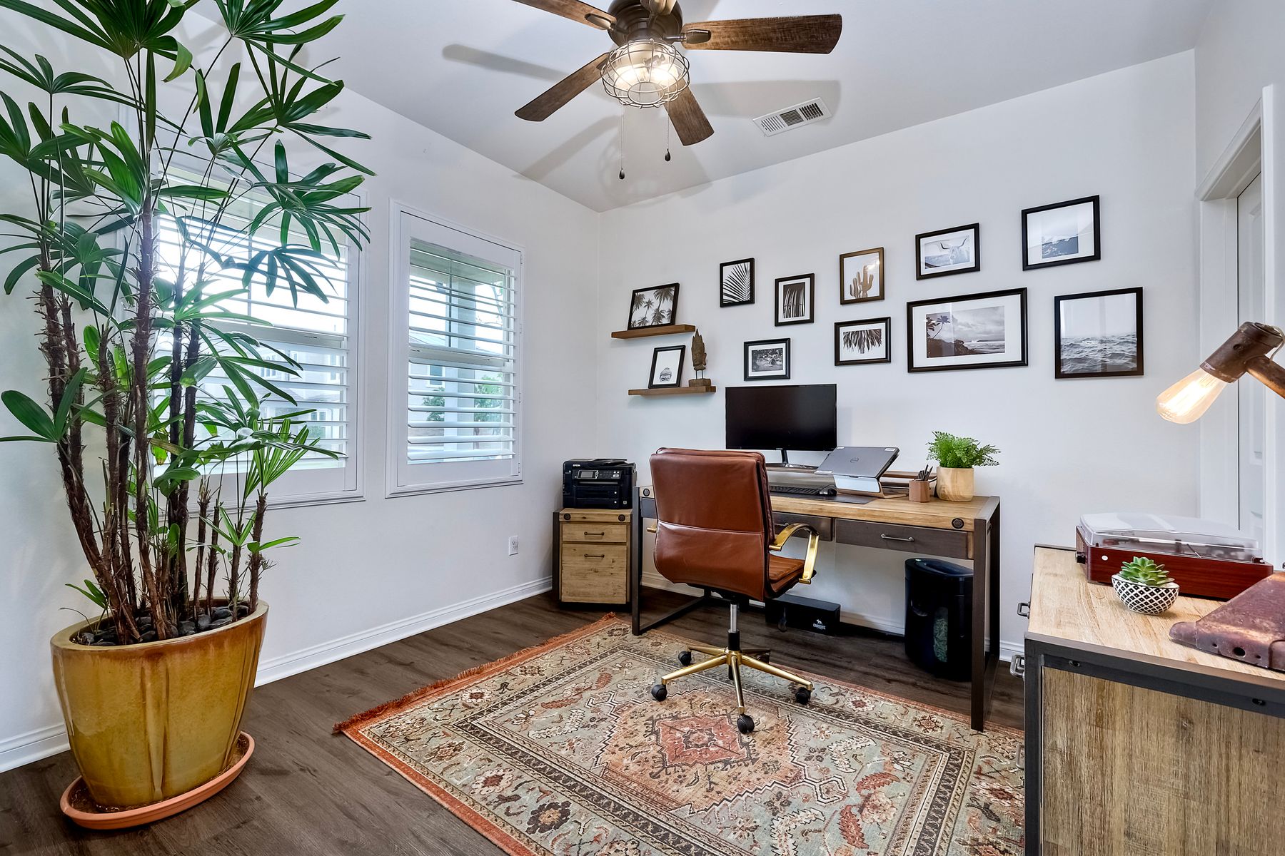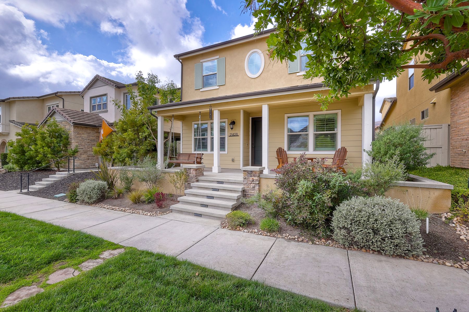 Welcome to this stunning home, a true showcase of pride of ownership that shines from the moment you arrive. The impeccable curb appeal and upgraded entry set the tone, while charming shiplap walls greet you as you step inside, offering a warm welcome and hinting at the high-end appointments you will find throughout. This home truly shows like a model. Featuring 4 bedrooms and 3.5 bathrooms, including a desirable ensuite bedroom and a dedicated office on the first floor, this efficient and well-designed layout is perfect for families and professionals alike. The primary suite is a luxurious retreat; every detail has been thoughtfully curated to enhance comfort and style. The entertainer's kitchen is a chef's delight, boasting a subway tile backsplash, walk-in pantry, and sleek finishes. Additional upgrades include wood shutters, a tankless water heater, solar panels, a water softener, and ample added storage in both the garage and laundry room. The beautifully upgraded backyard is an inviting space to relax and entertain. Located in the sought-after Harmony Grove Community, residents enjoy resort-style amenities, including an Olympic-sized swimming pool, the vibrant 4th of July Park, and scenic hiking trails. Don’t miss the opportunity to make this exceptional home yours—where quality, style, and community come together perfectly.