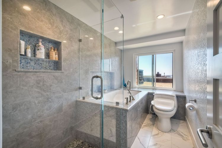 Live the Del Mar Dream! Sea Point is a Del Mar luxury seaside community across from Torrey Pines State Beach. This gorgeous 2 bedroom, 2 full bath town home has had a recent total renovation creating open-concept common areas consisting of a living room, dining and kitchen. The Chef's kitchen has all the bells and whistles, an abundance of cabinetry, a large island with bar seating, stainless steel appliances and dazzling counter tops and finishes. Truly an indoor outdoor entertaining home with a very generous patio for Alfresco dining. Or, to your covered balcony with views of the iconic Del Mar Bridge and the ocean. As you enter the front door you will find a bedroom and classy full bath then just 2 steps to the main living area. The entire top floor is a “Spa” like private master suite featuring ocean views, a sitting area with a fireplace, 2 walk in closets for your fluffy spa robes and beautiful redesigned master bathroom boasting an elegant tub and walk in shower. There is a very sizeable 2 car garage with ample storage and a bonus area for the washer / dryer, workshop or your beach toys. Enjoy sitting on your balcony looking at your incredible views of the iconic Del Mar Bridge and the sparkling blue ocean. Perhaps a dolphin or two or just finish your day with a glorious sunset! This could be yours. After you take your selfie with the unbelievable ocean views behind you and then post it, your phone won't stop ringing with requests to visit you. Enjoy you deserve it! Sea Point is a resort style seaside community across from Torrey Pines State Beach. Love walking or hiking then you will love the Torrey Pines trails, the reserve trails behind Sea Point or a walk on the beach! Entertain your friends and family as you watch the whales & dolphins swim by as the sun sets in the Pacific. The development has 2 pools/spas, 2 lighted tennis courts, tot lot, 4 acre private park and newly remodeled club house. Manager, landscape company and construction team on site M-F. Join us , barbeques, Cinco de Mayo taco truck event, holiday parties and jazz concerts. Or join the dog parents at 5 pm each day for dog play time in the park. Walk to restaurants (Japanese, Italian, Mexican California Cuisine and Coffeehouse) and a convenience store within 3 blocks. Close to the famous Village of Del Mar, the Del Mar Race Track and Torrey Pines Golf Course. Across the freeway are many hip restaurants, boutiques, grocery stores, drug stores and upscale Cinepolis Movie theater. Easy access to the 5 freeway, 2 hours to the Palm Springs, an hour to the mountains and snow! 5+ minutes to the beach. Great home, vacation home or investment property. This property is priceless!!!!!